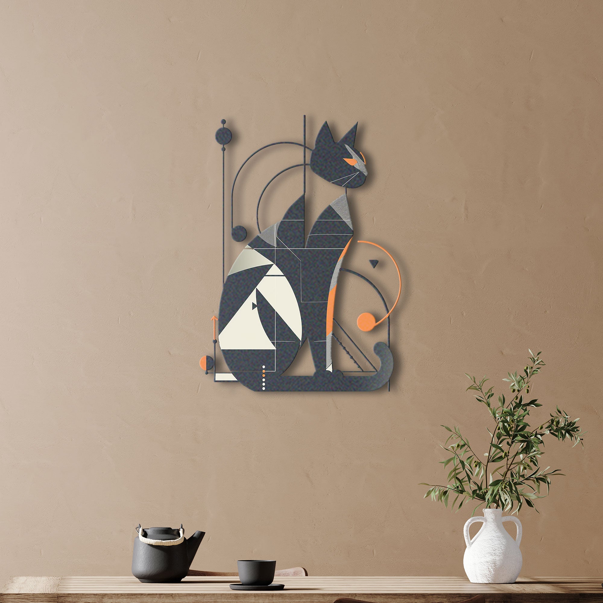 Abstract Cat Metal Wall Art, Gift for Cat Lovers, Unique Feline, Housewarming Gift