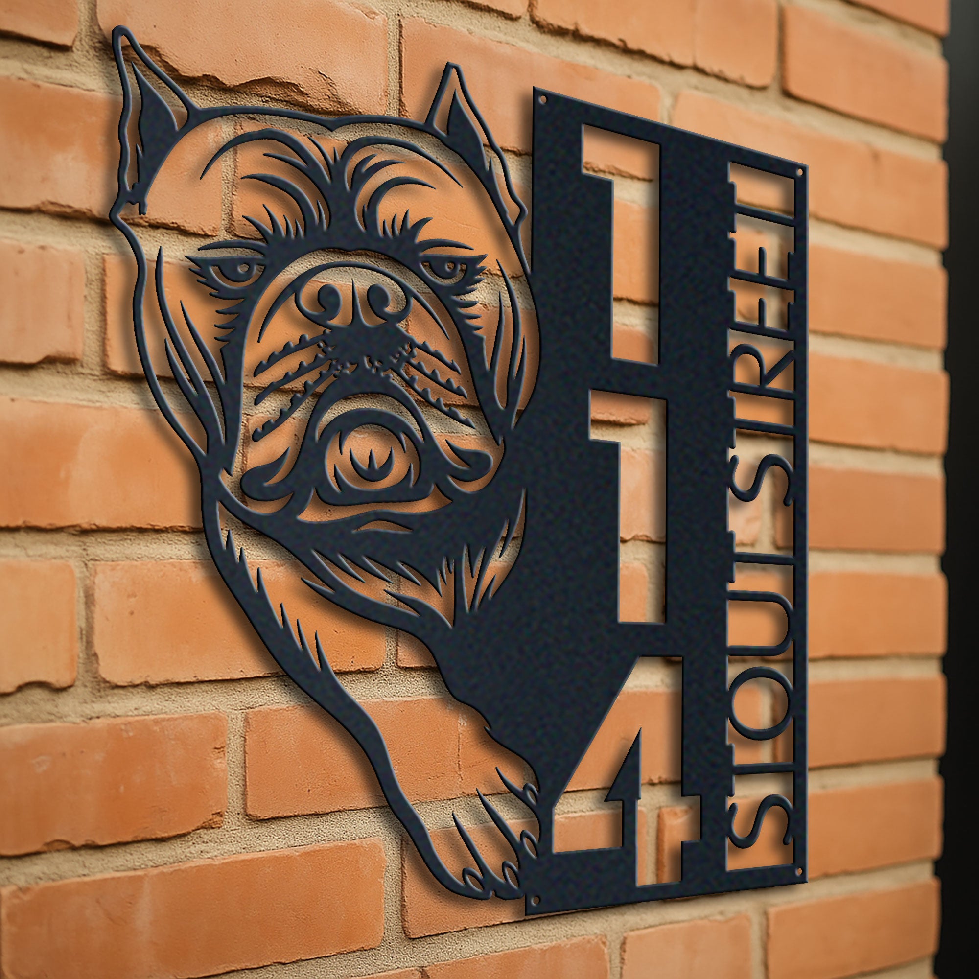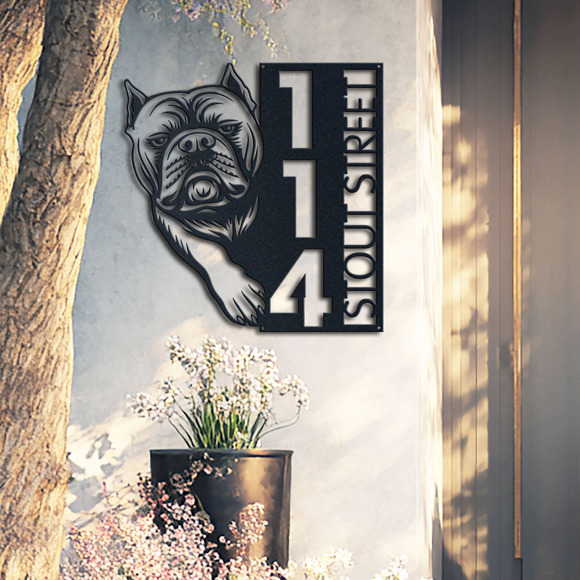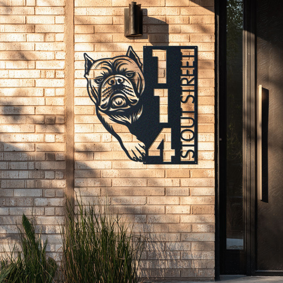 American Bully Address Sign | Custom Metal Vertical House Number Plaque | Pet Owner Gift