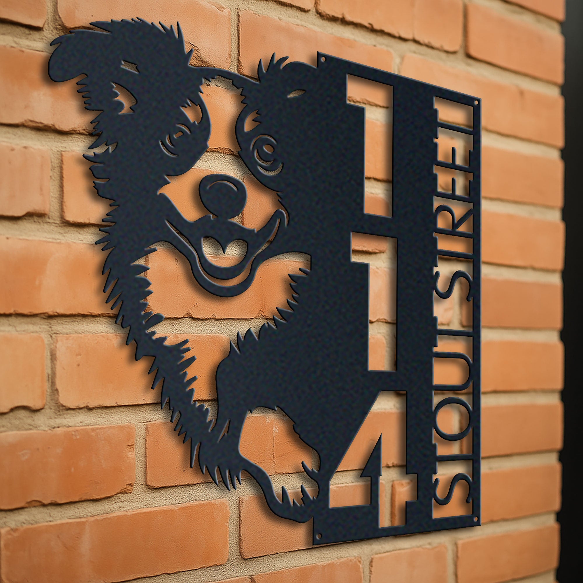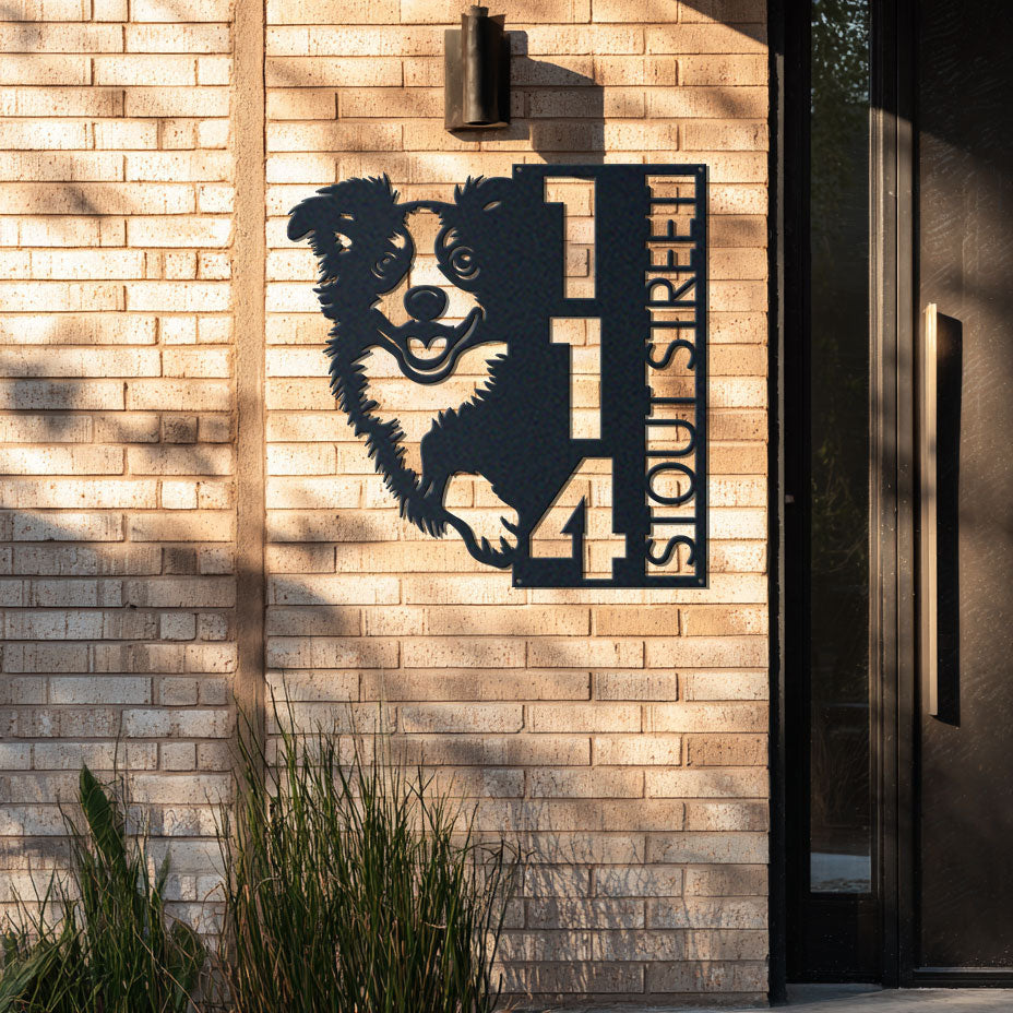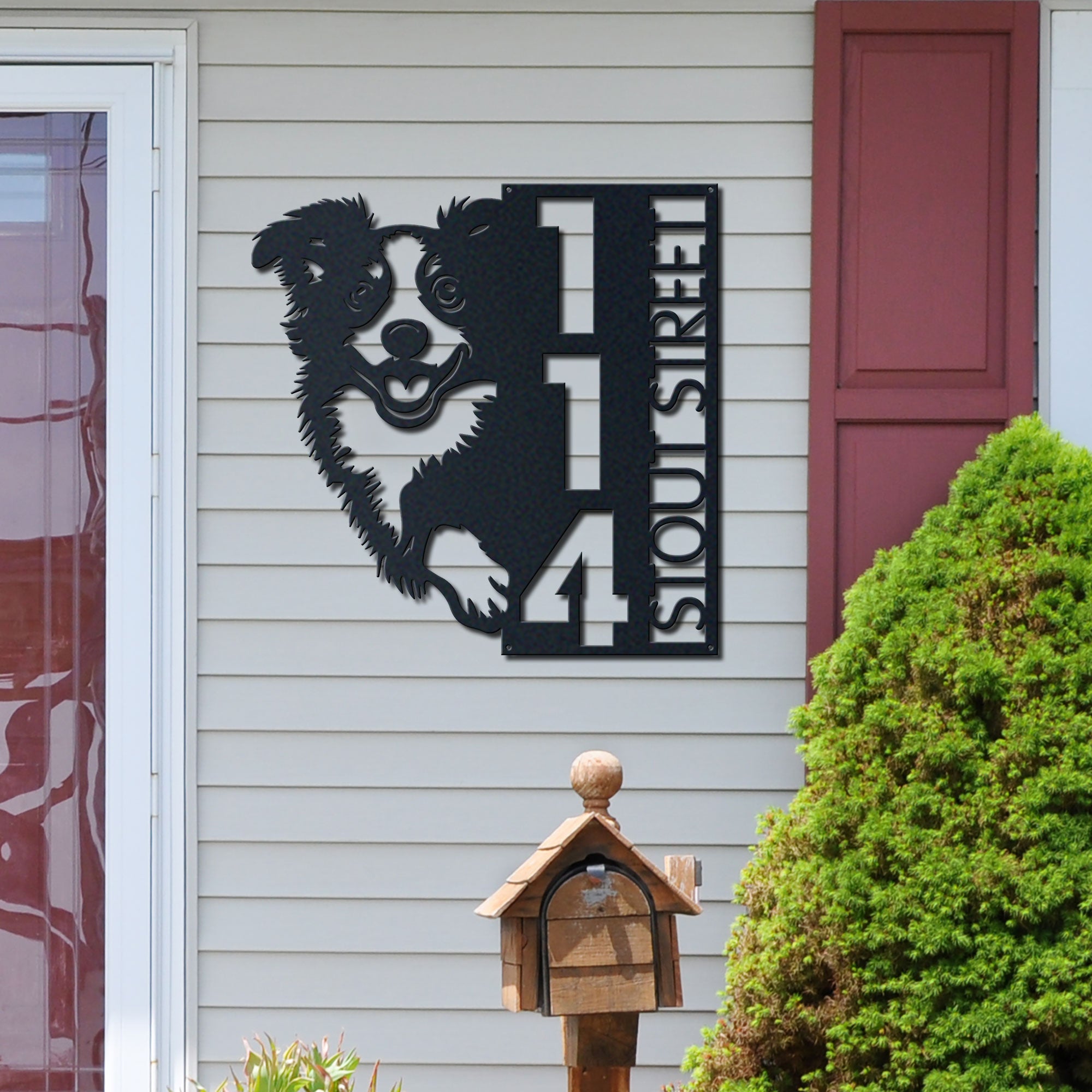 Australian Shepherd Address Sign | Custom Metal Vertical House Number Plaque | Pet Owner Gift