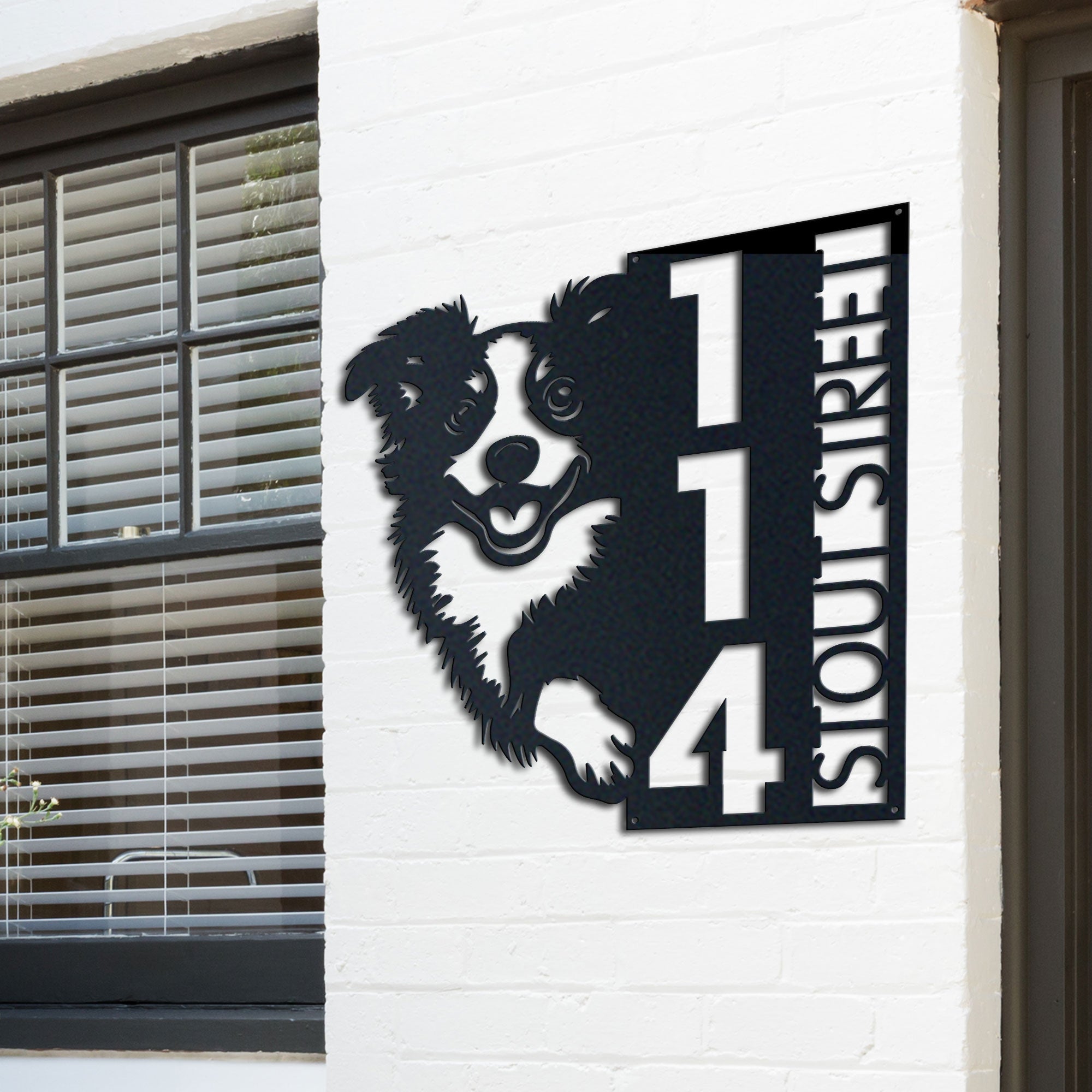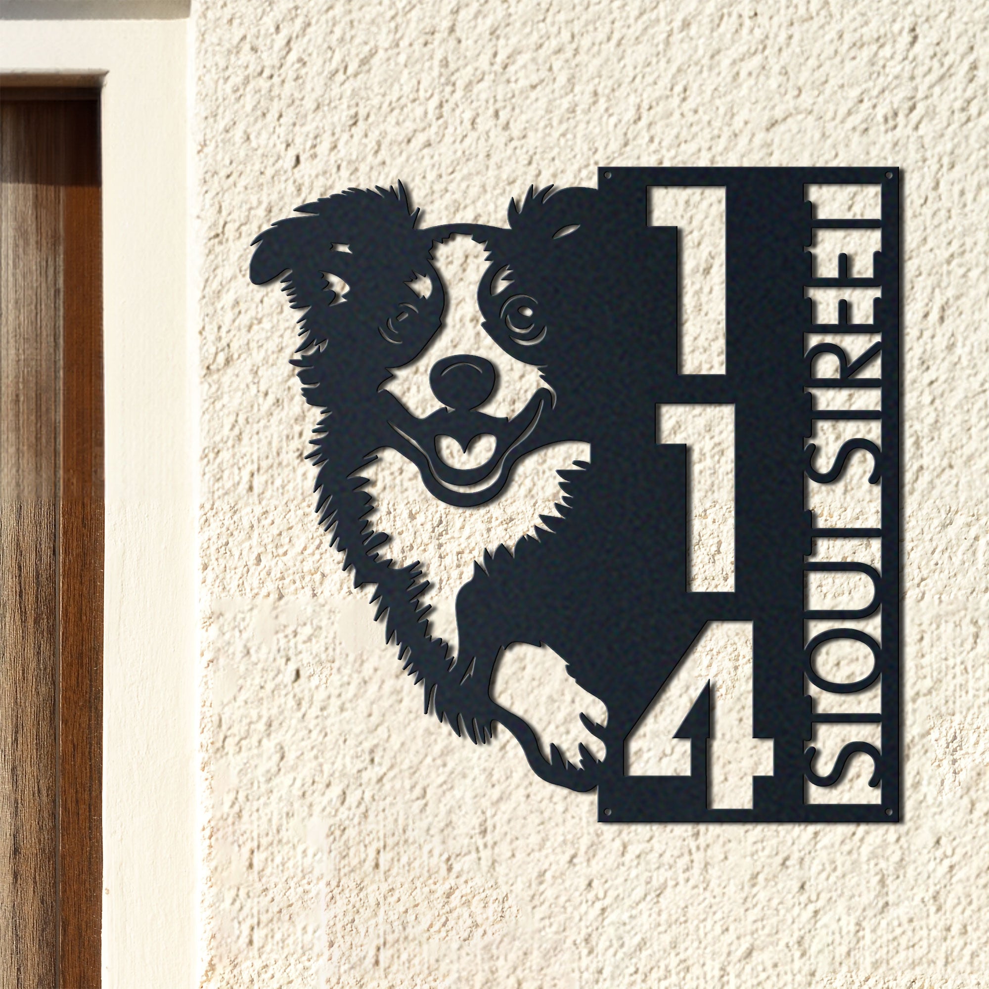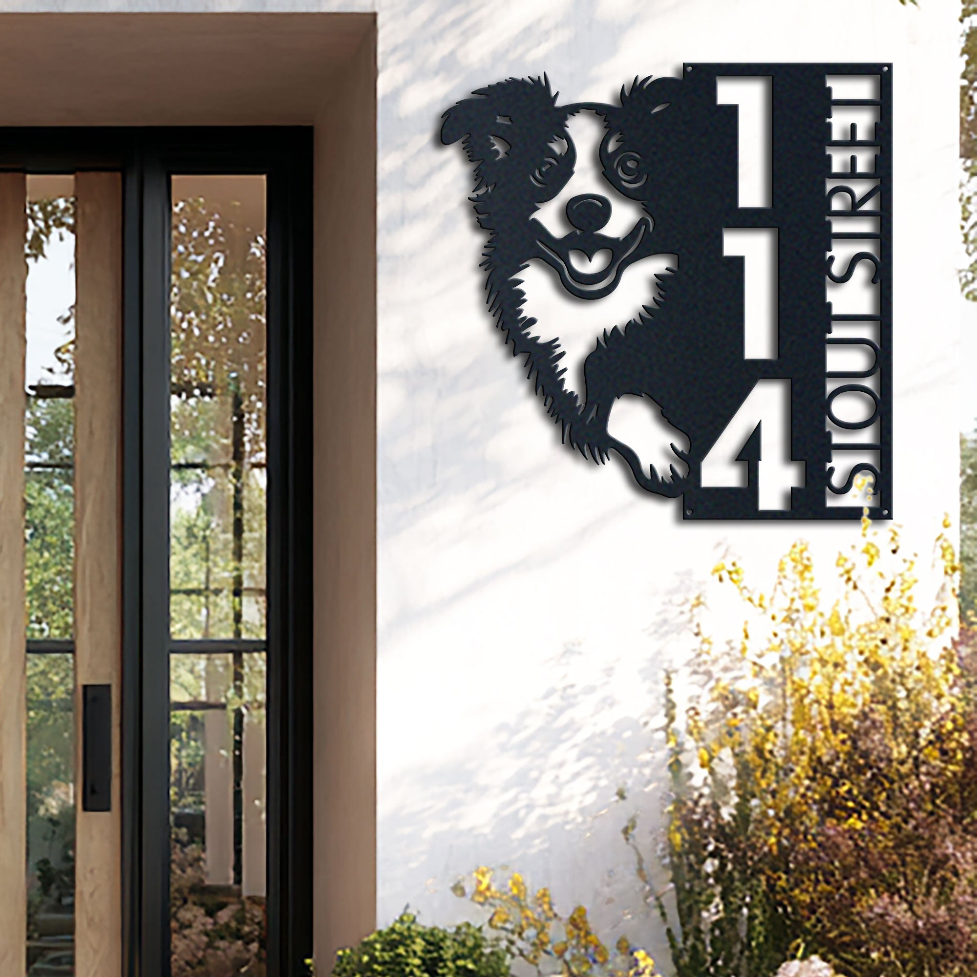 Australian Shepherd Address Sign | Custom Metal Vertical House Number Plaque | Pet Owner Gift