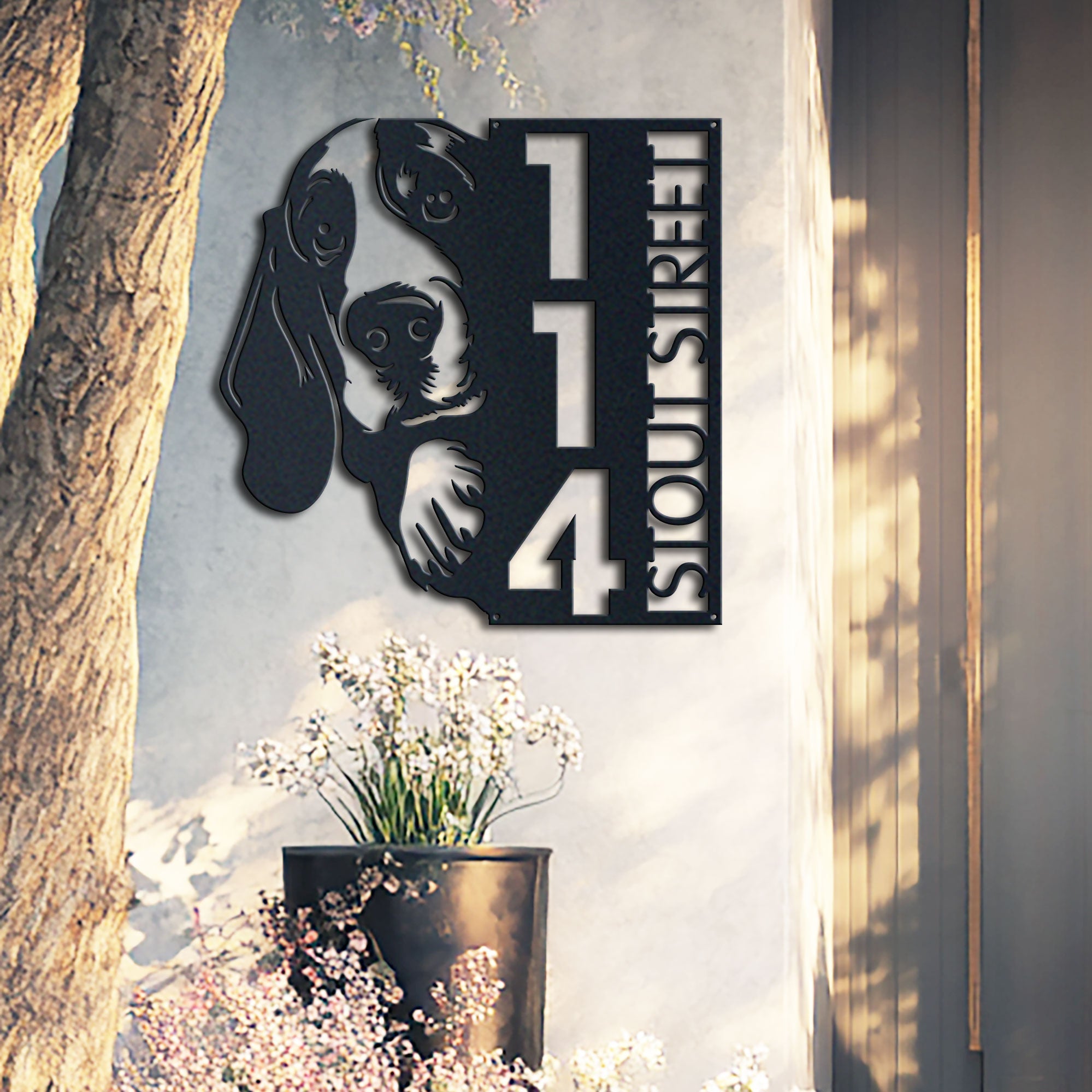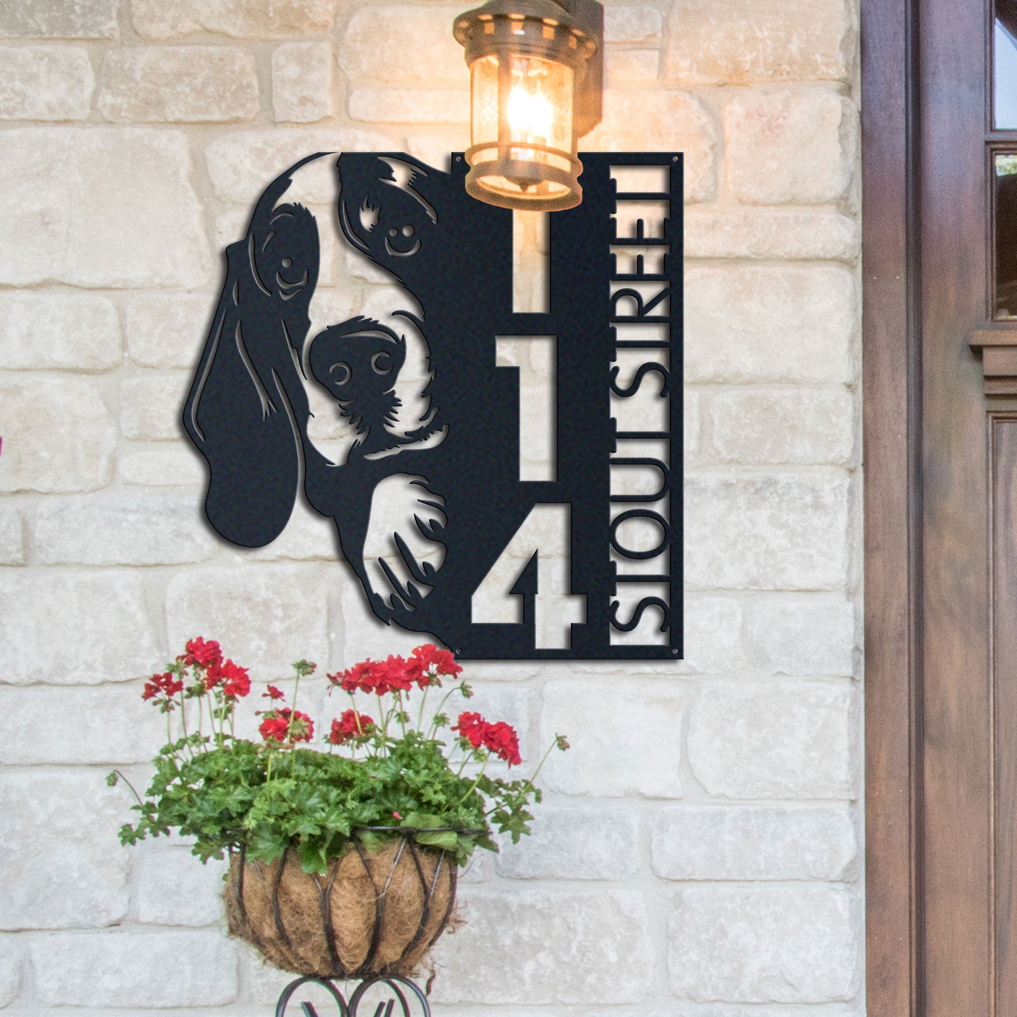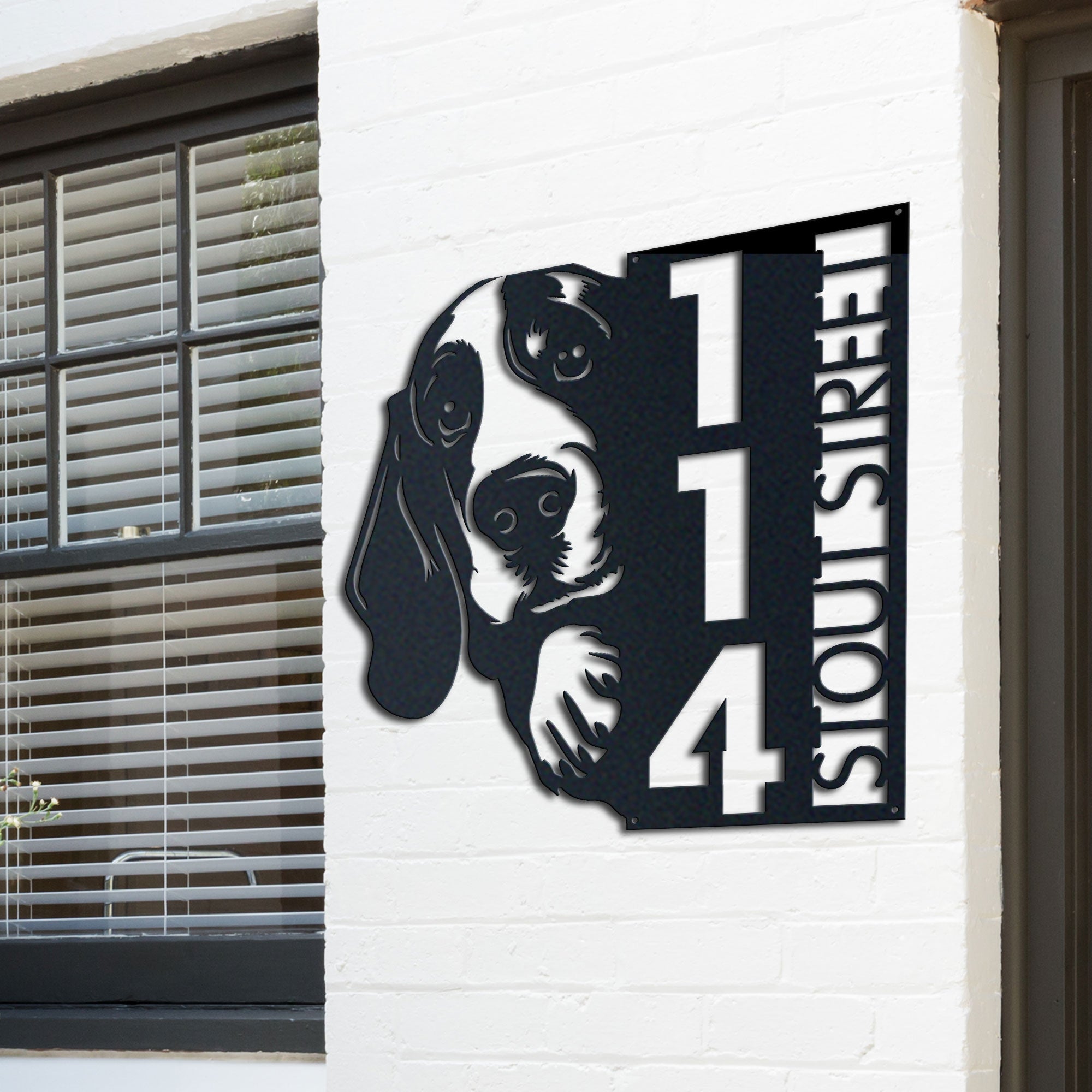 Basset Hound Address Sign | Custom Metal Vertical House Number Plaque | Pet Owner Gift 2