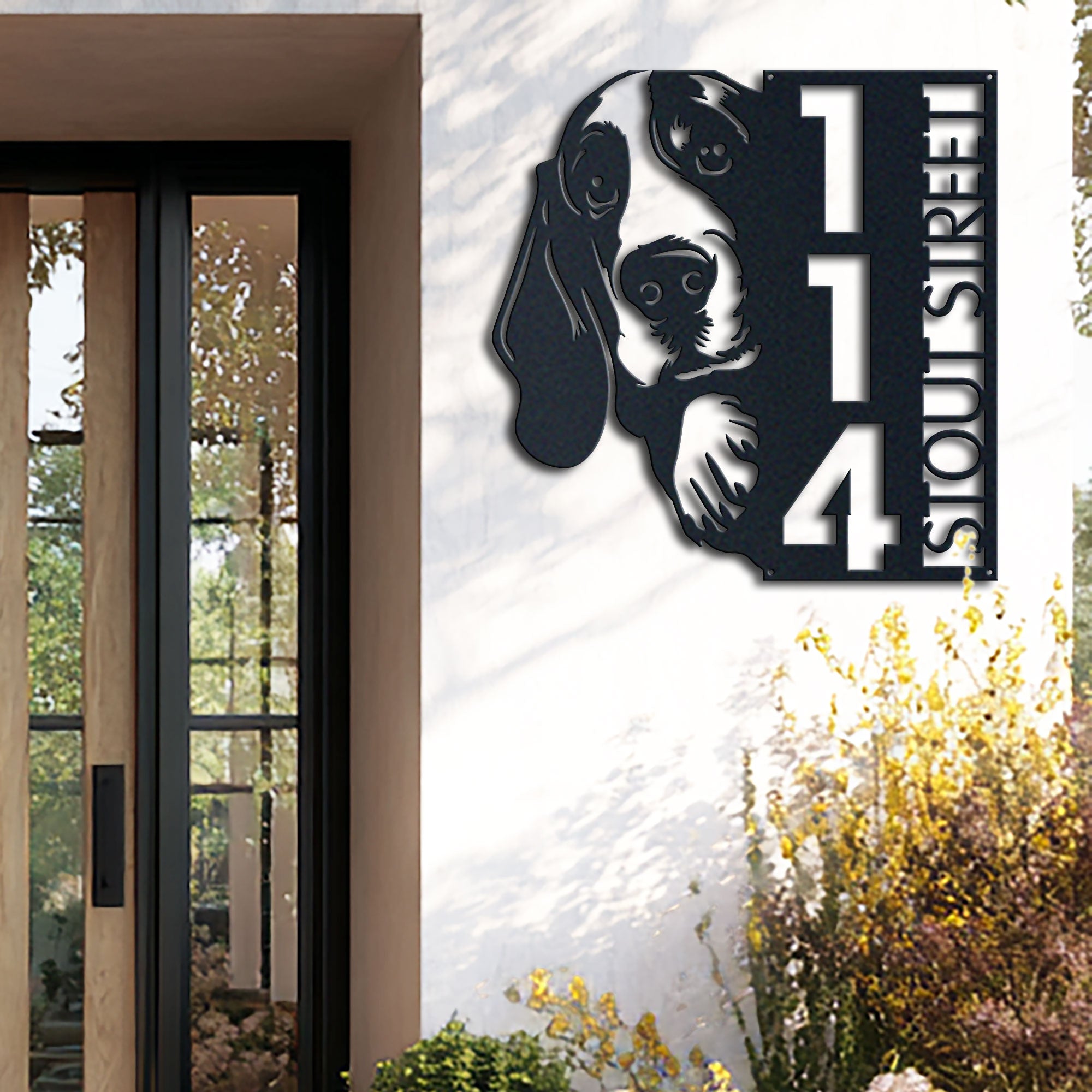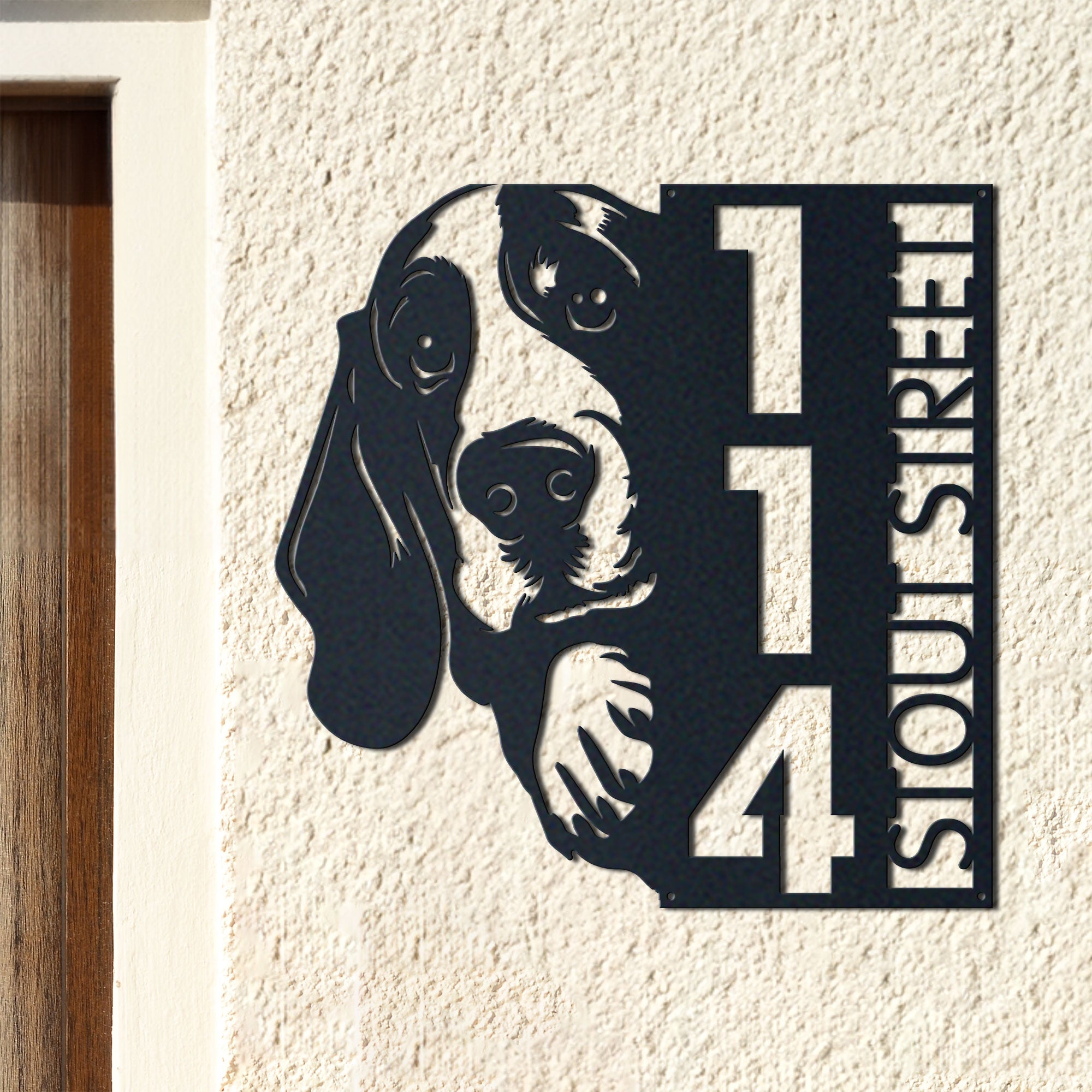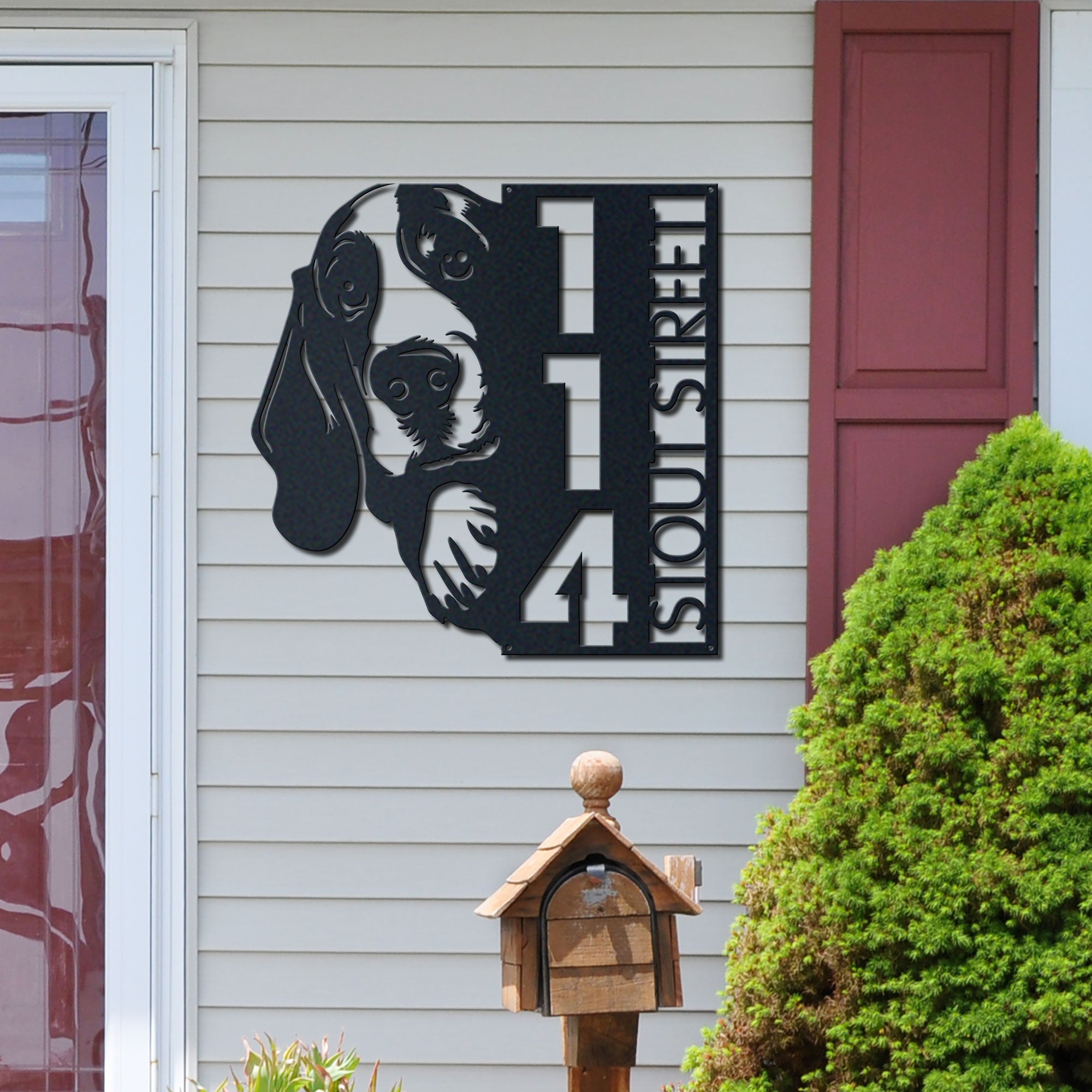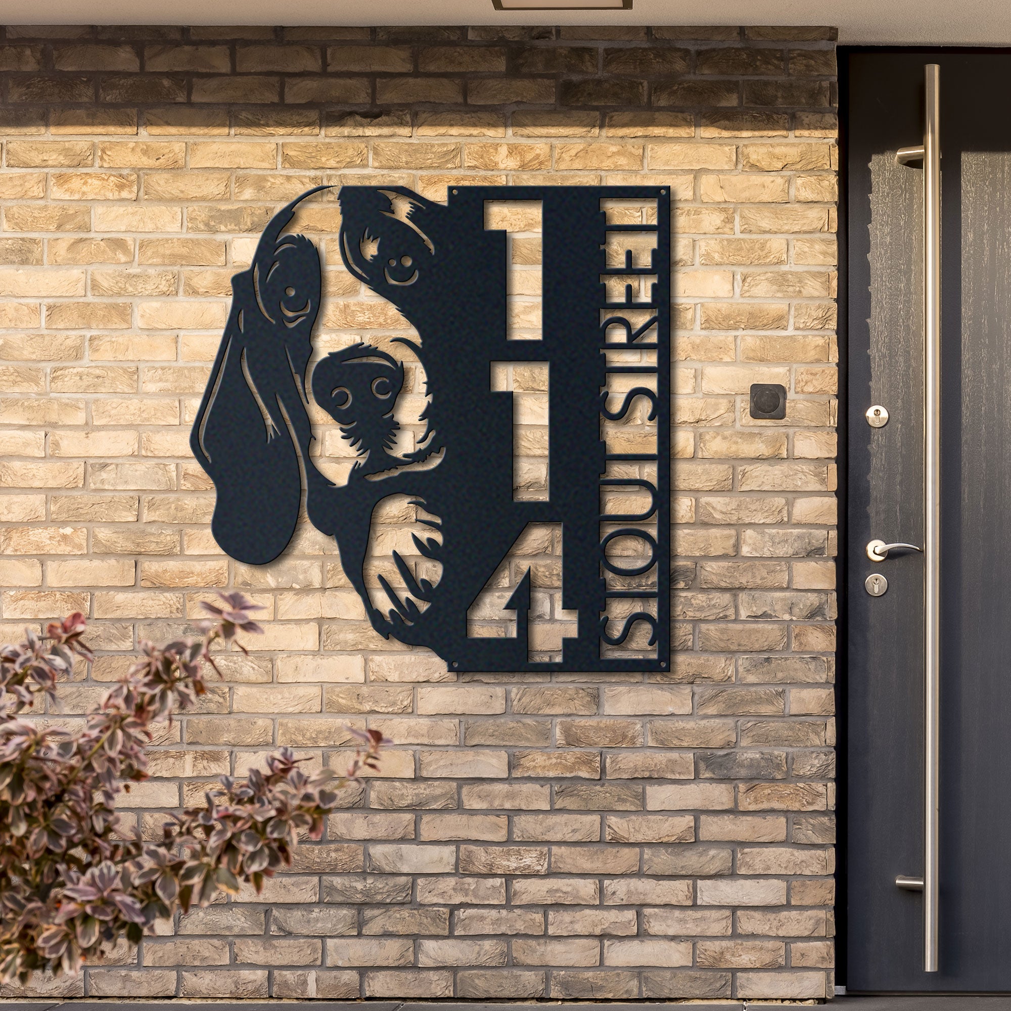 Basset Hound Address Sign | Custom Metal Vertical House Number Plaque | Pet Owner Gift 2