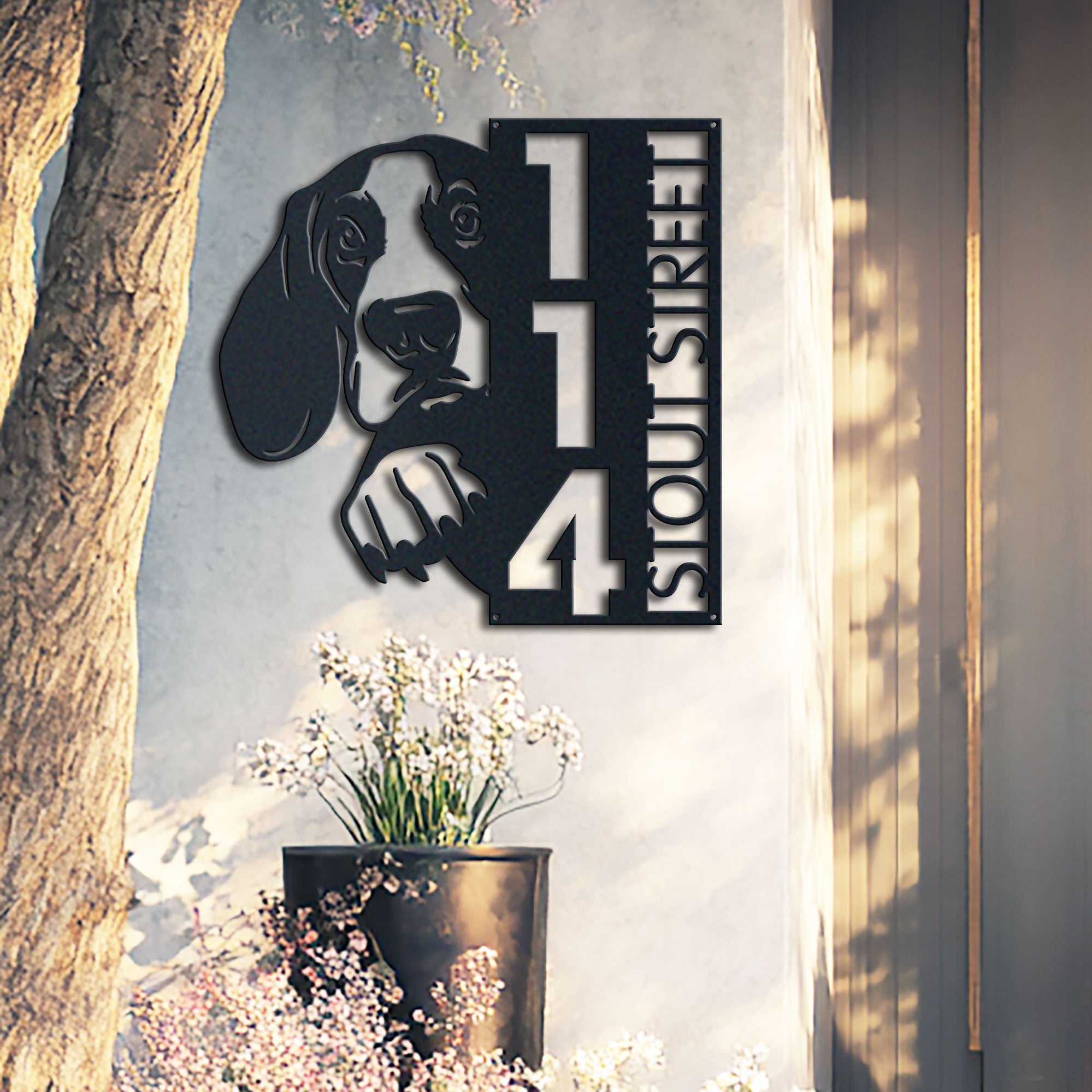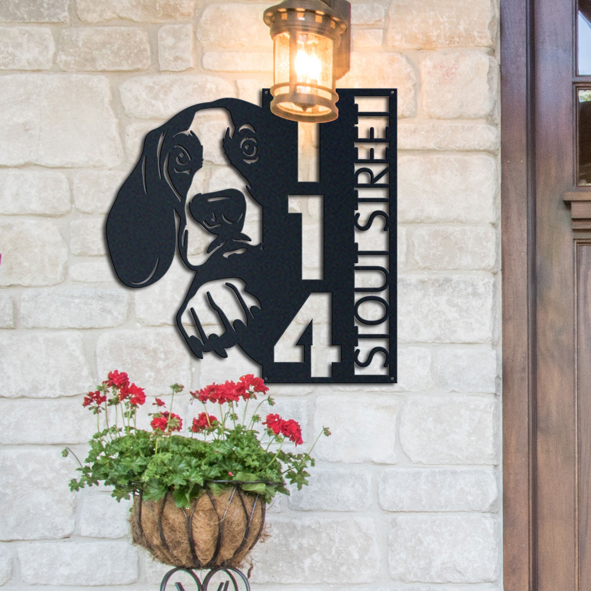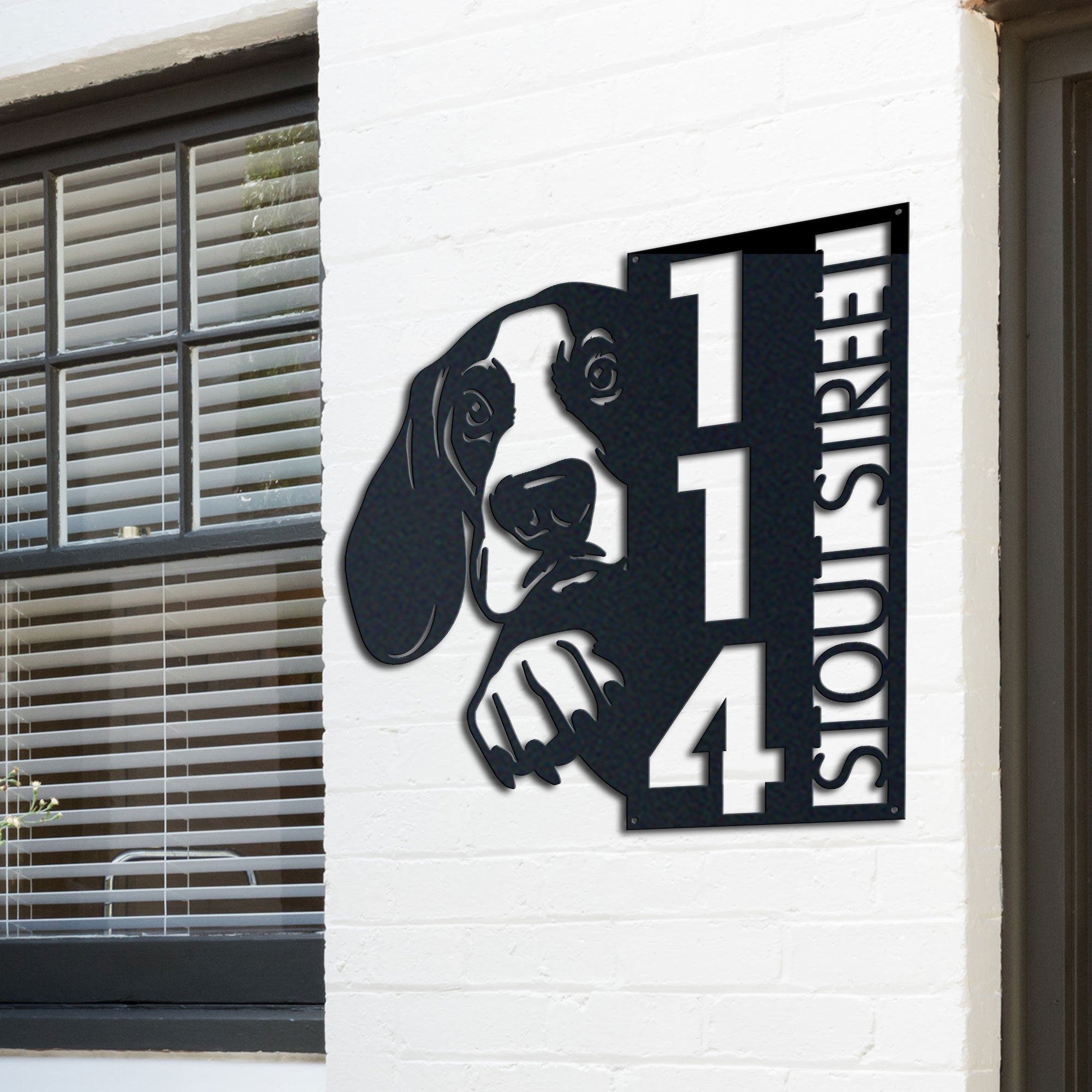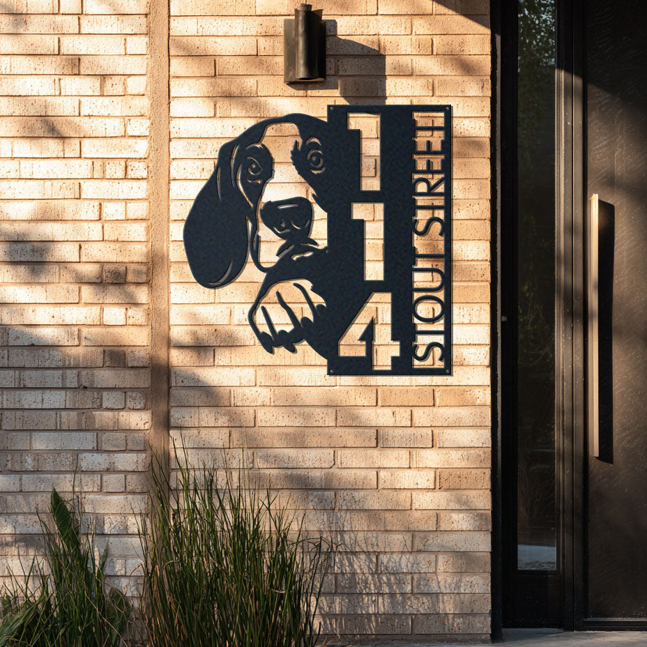 Basset Hound Address Sign | Custom Metal Vertical House Number Plaque | Pet Owner Gift
