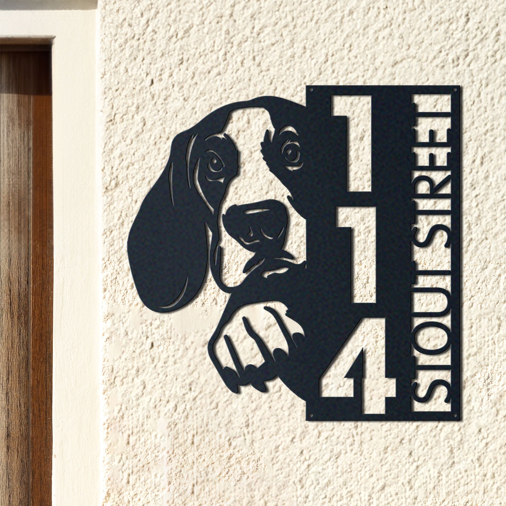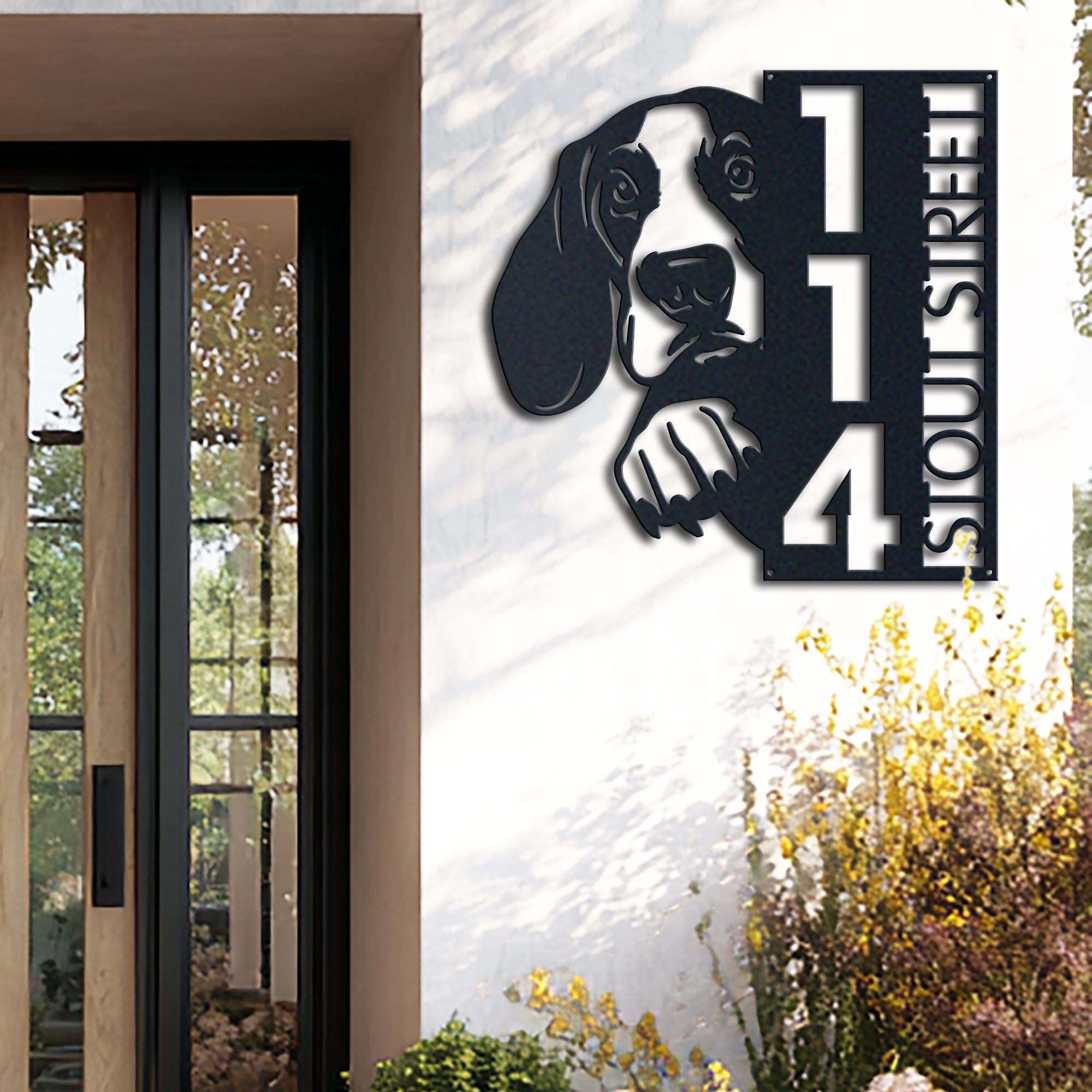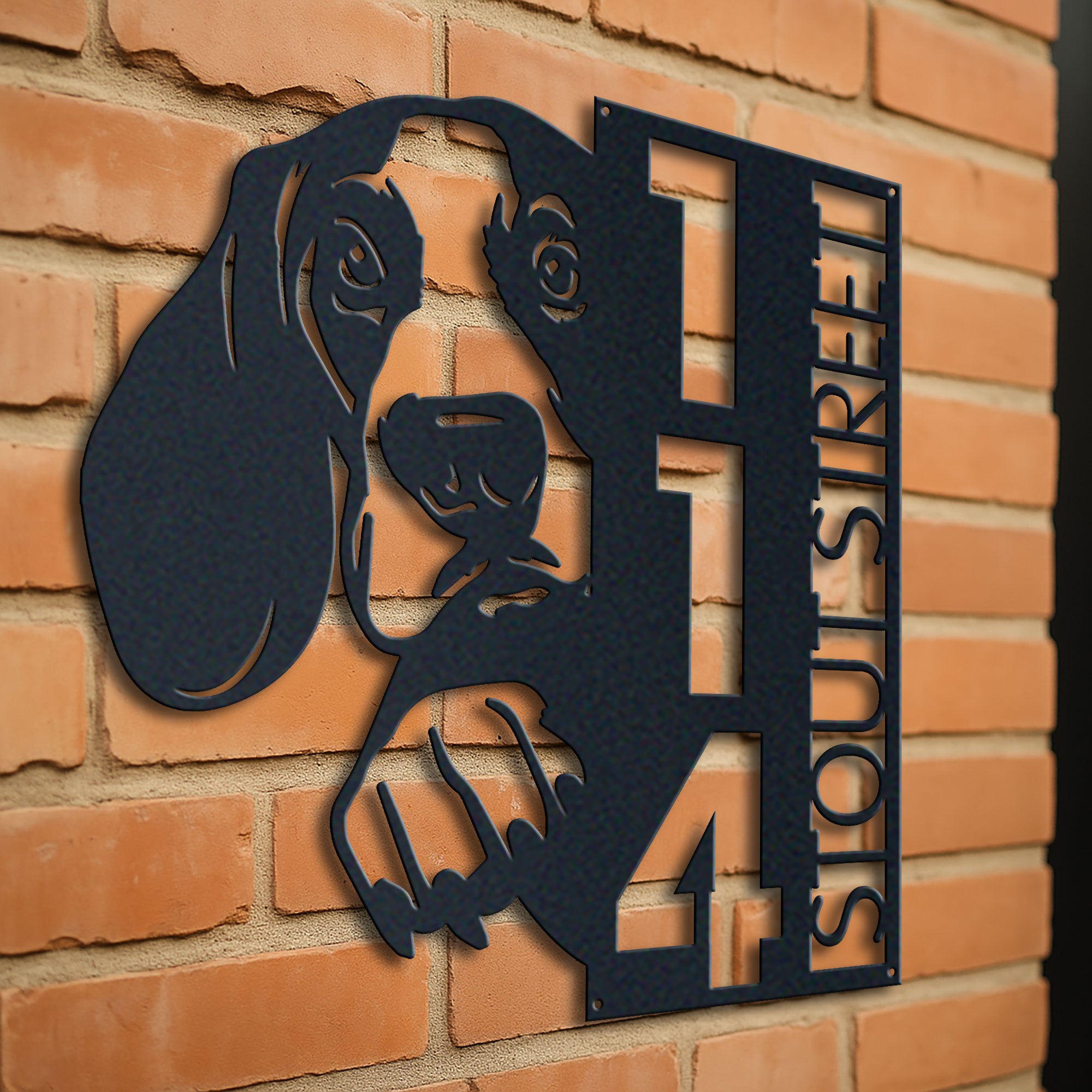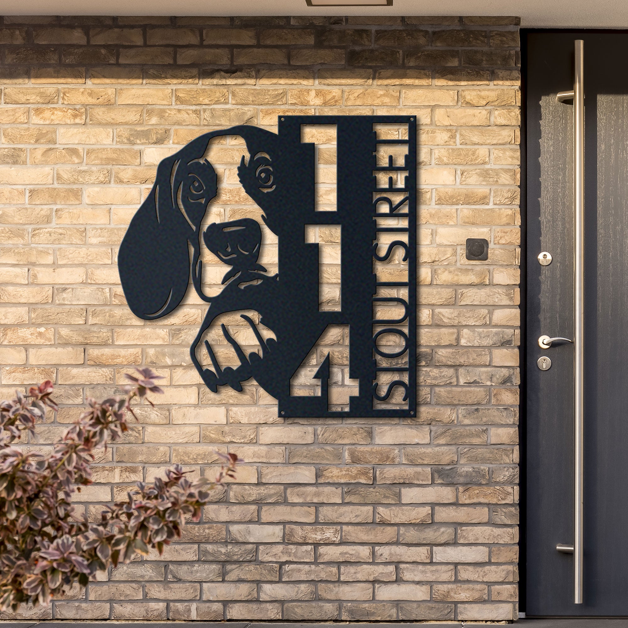 Basset Hound Address Sign | Custom Metal Vertical House Number Plaque | Pet Owner Gift