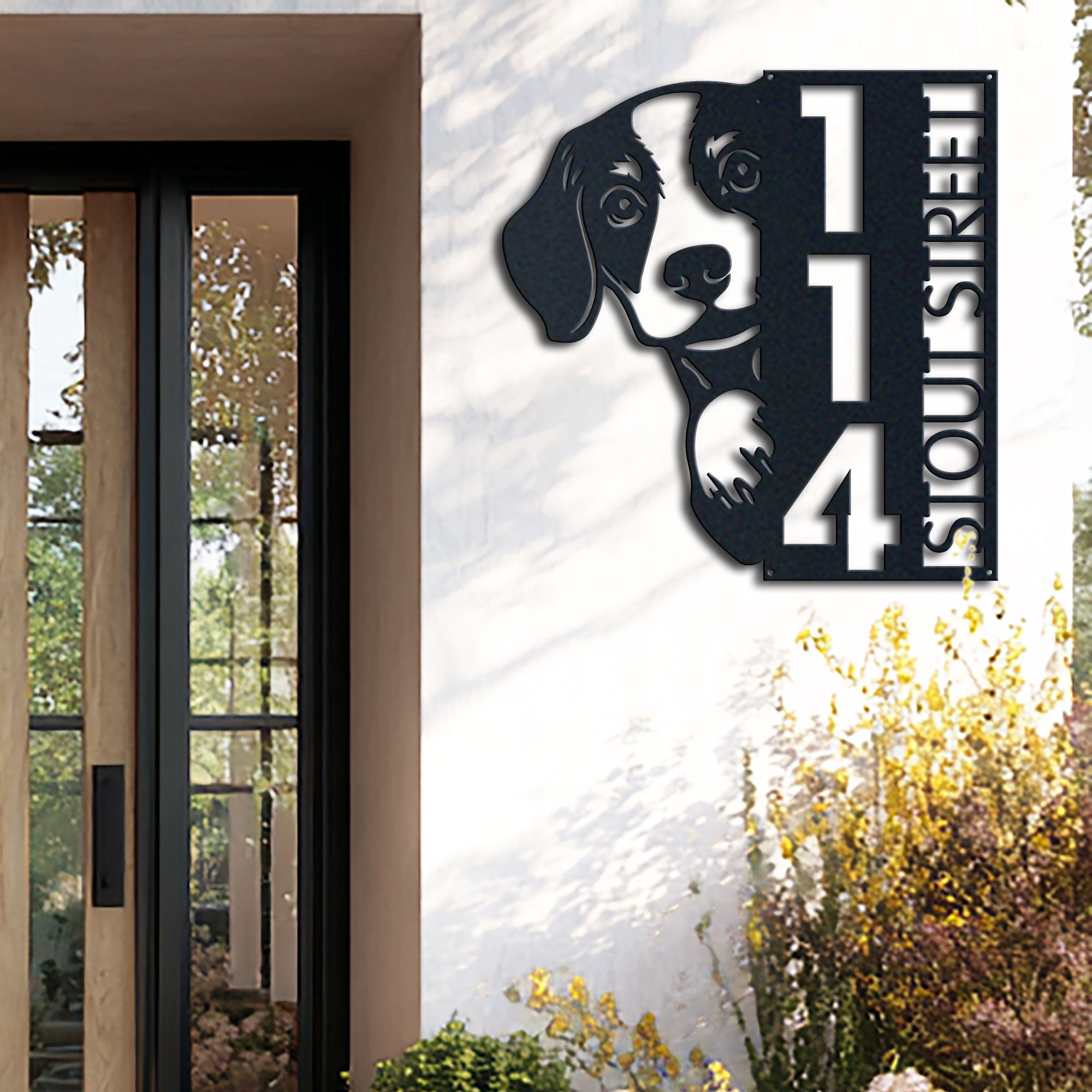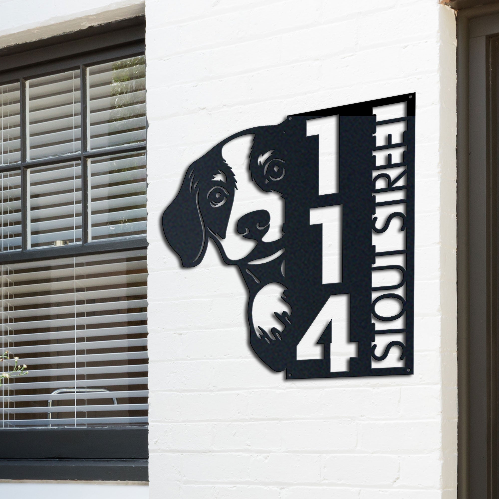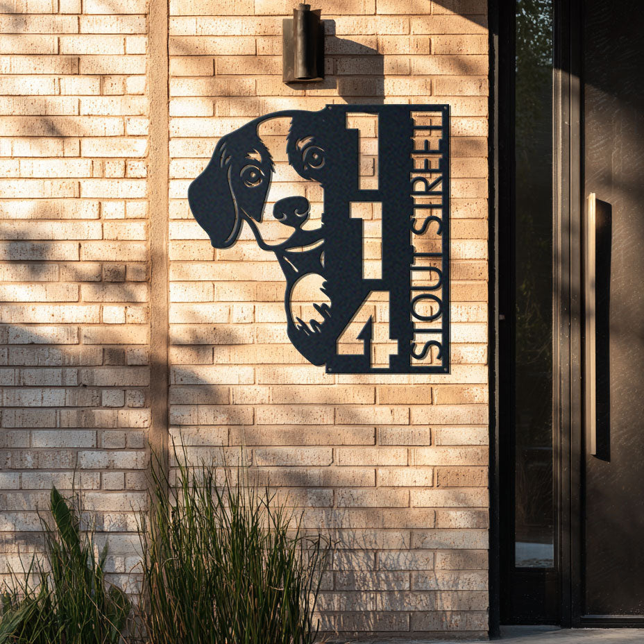 Beagle Address Sign | Custom Metal Vertical House Number Plaque | Pet Owner Gift