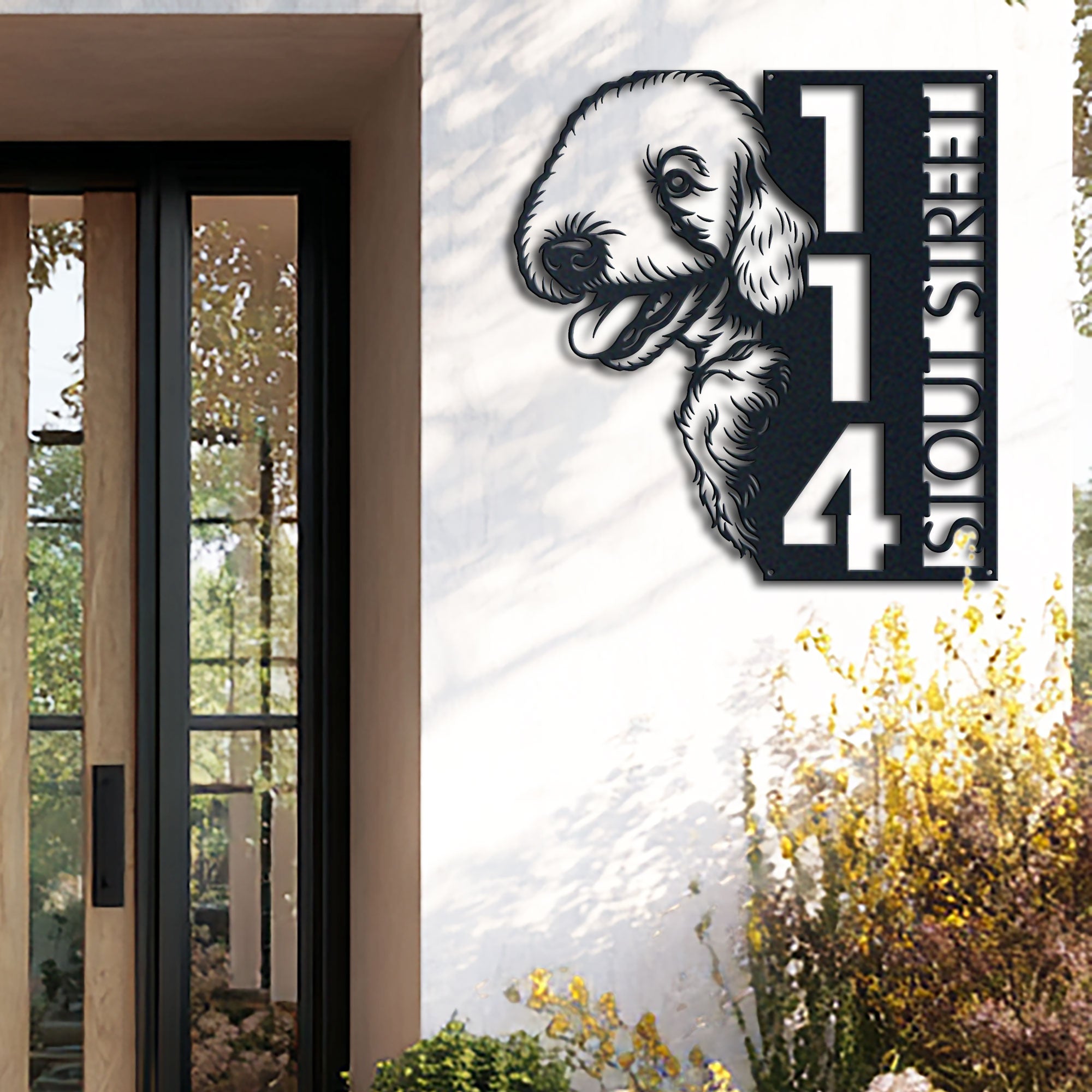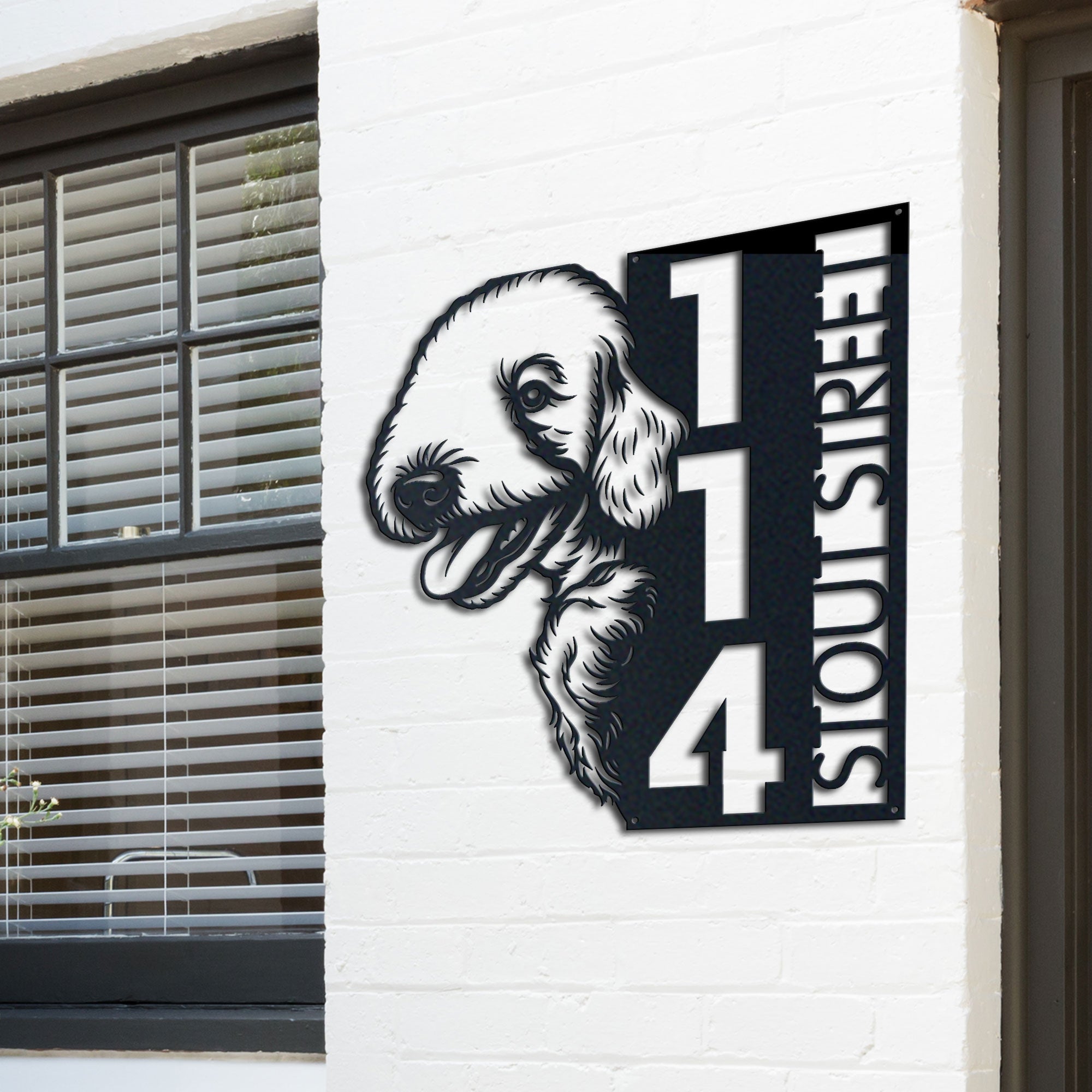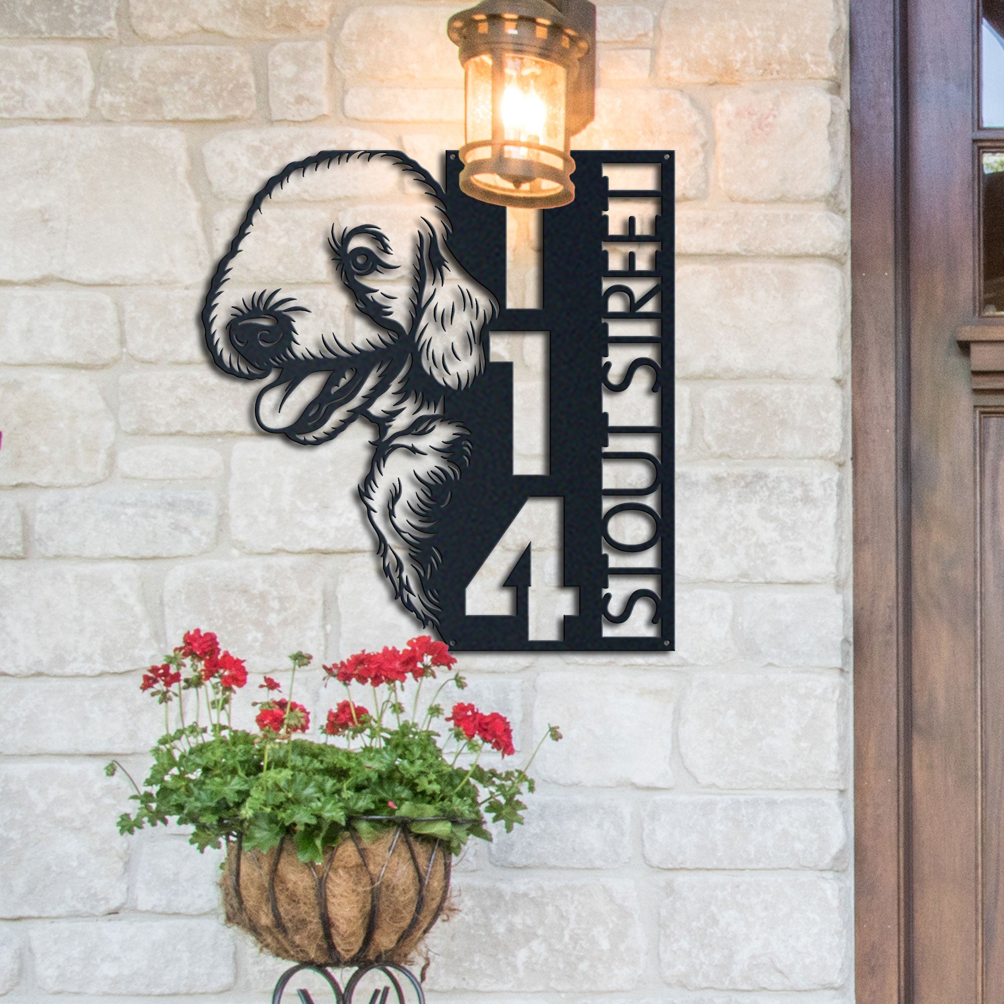 Bedlington Terrier Address Sign | Custom Metal Vertical House Number Plaque | Pet Owner Gift 1