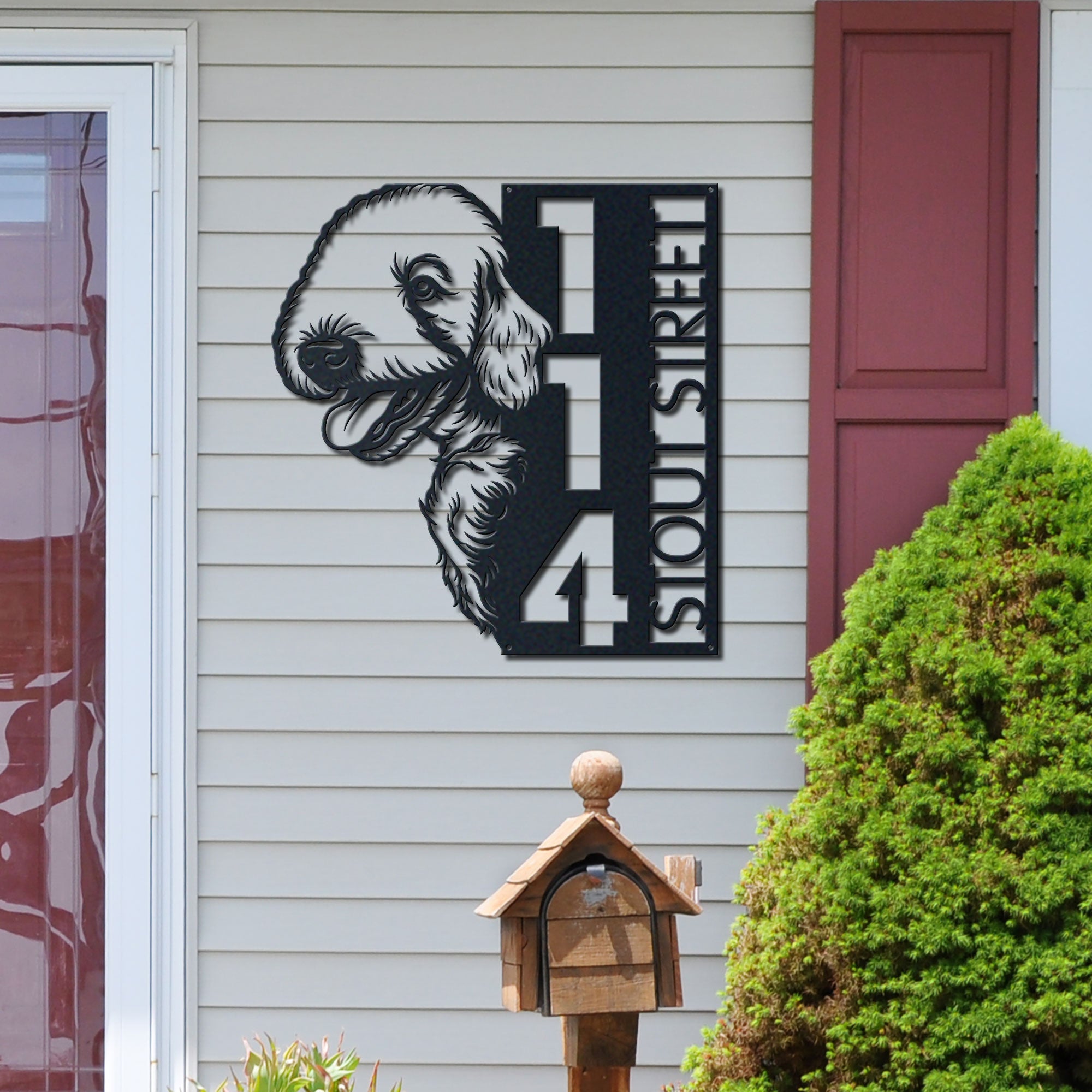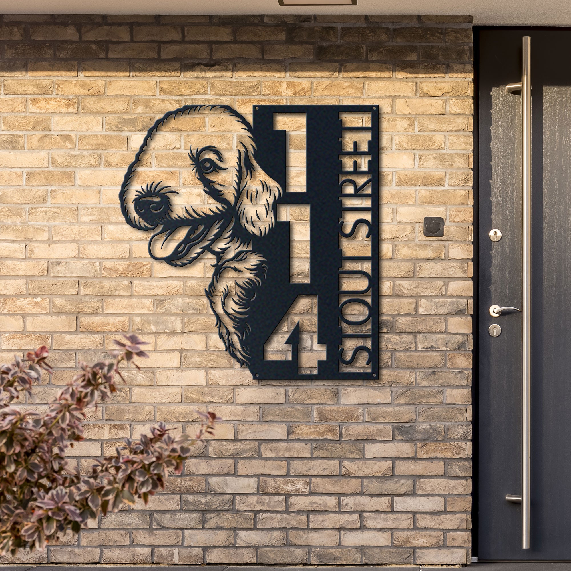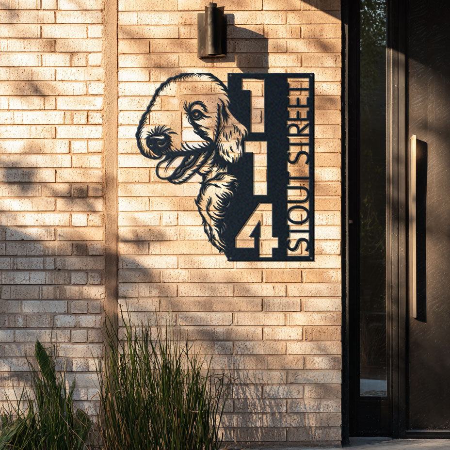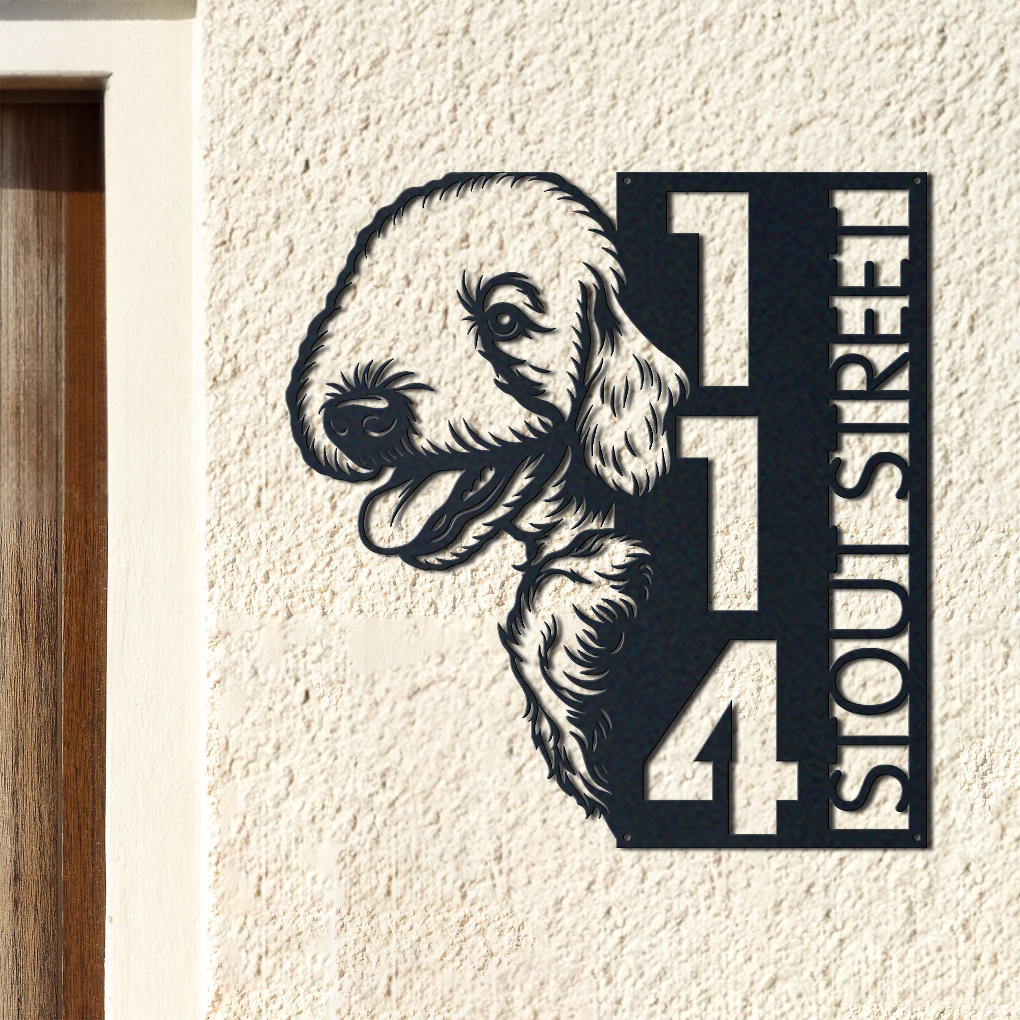 Bedlington Terrier Address Sign | Custom Metal Vertical House Number Plaque | Pet Owner Gift 1