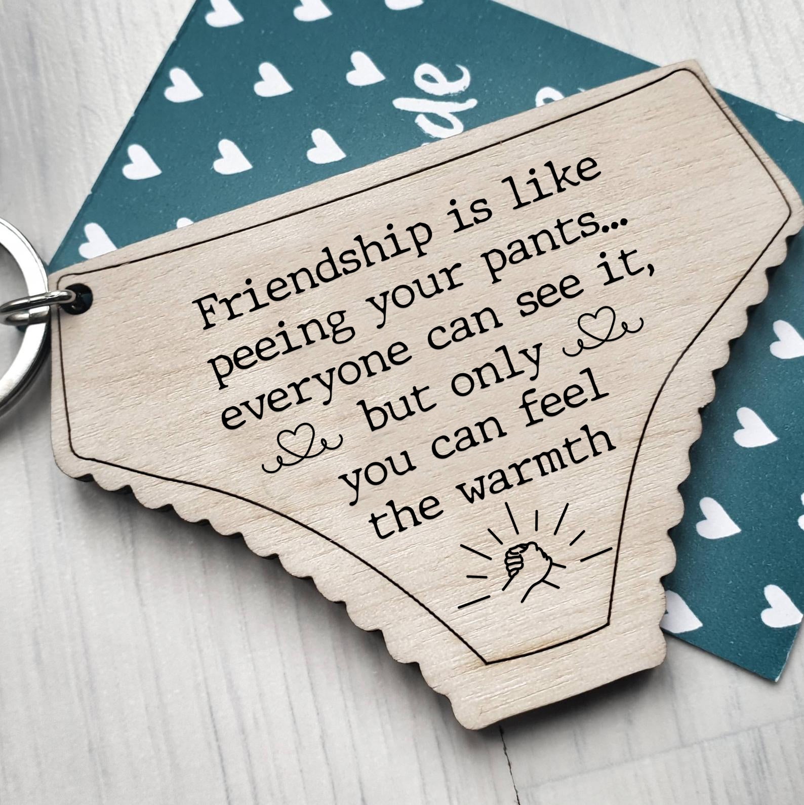 Best Friend Funny Wooden Keychain Friendship Are Like Peeing Your Pants