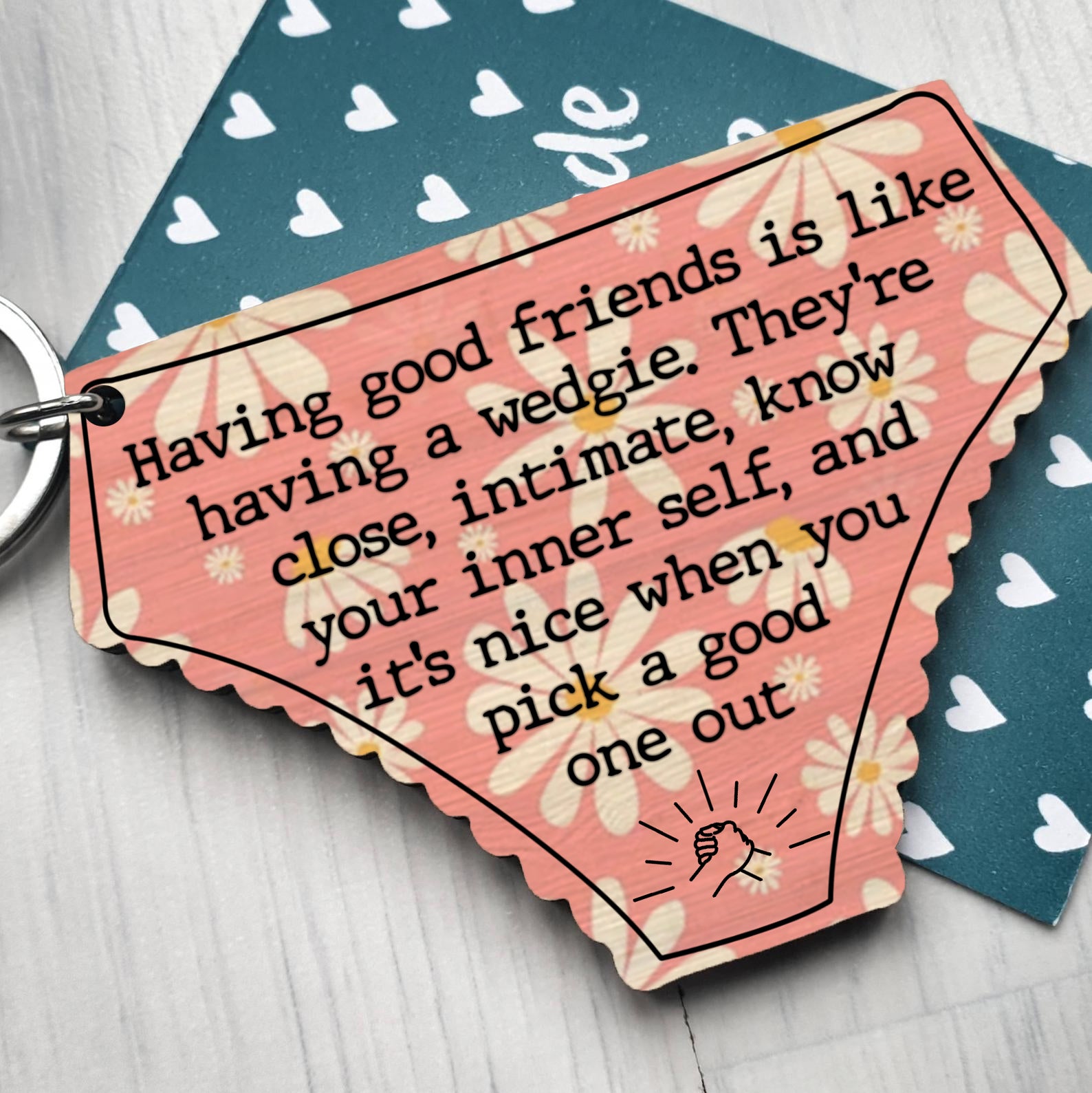 Best Friend Funny Wooden Keychain Having Good Friends Is Like Having A Wedgie