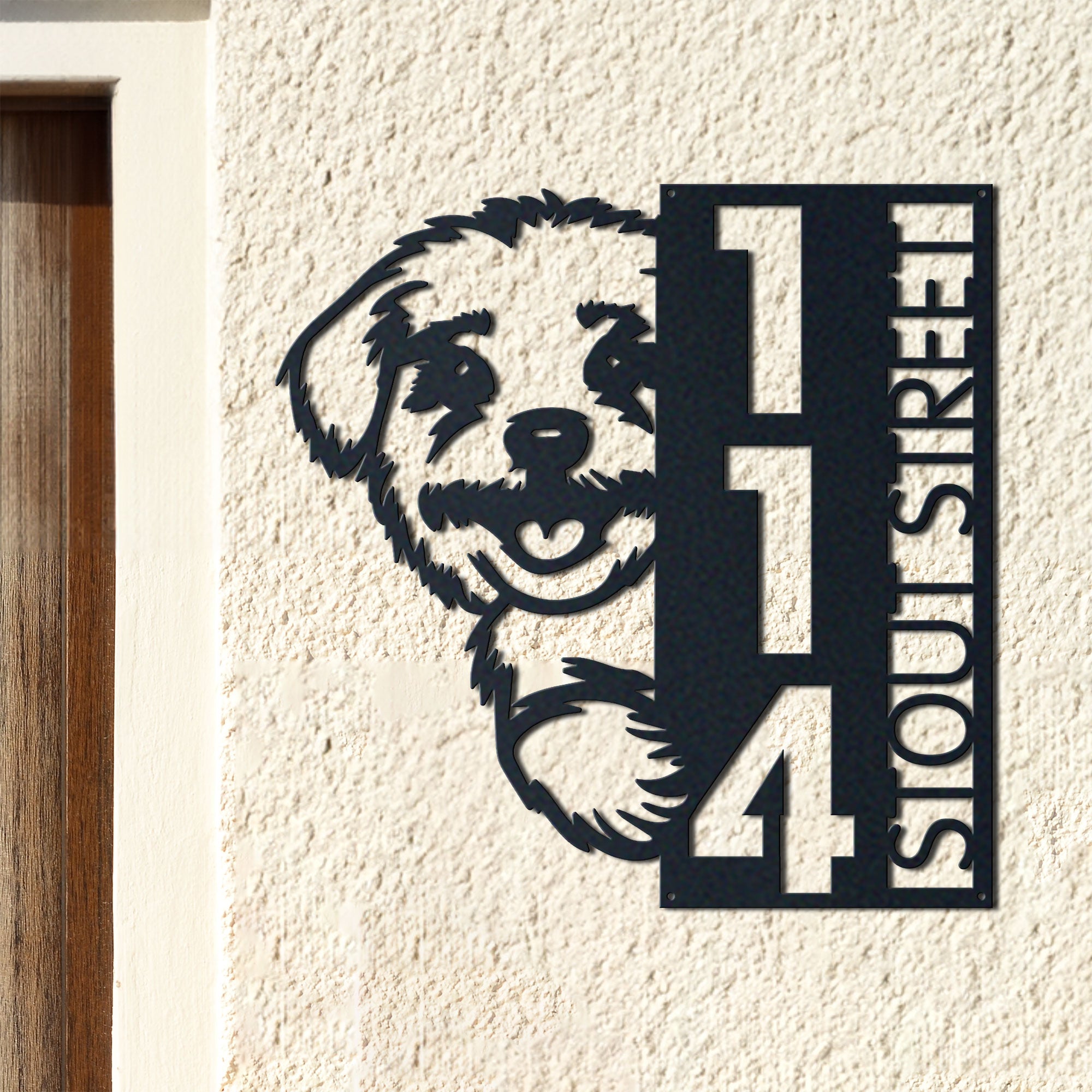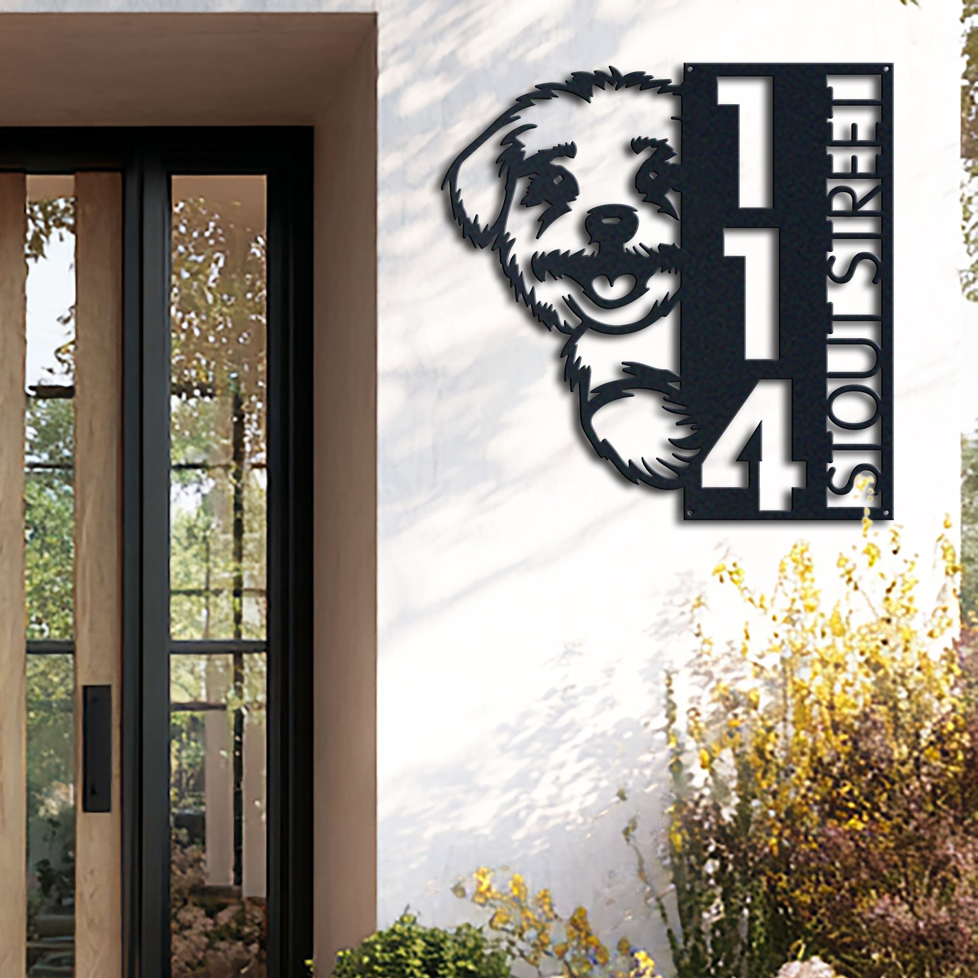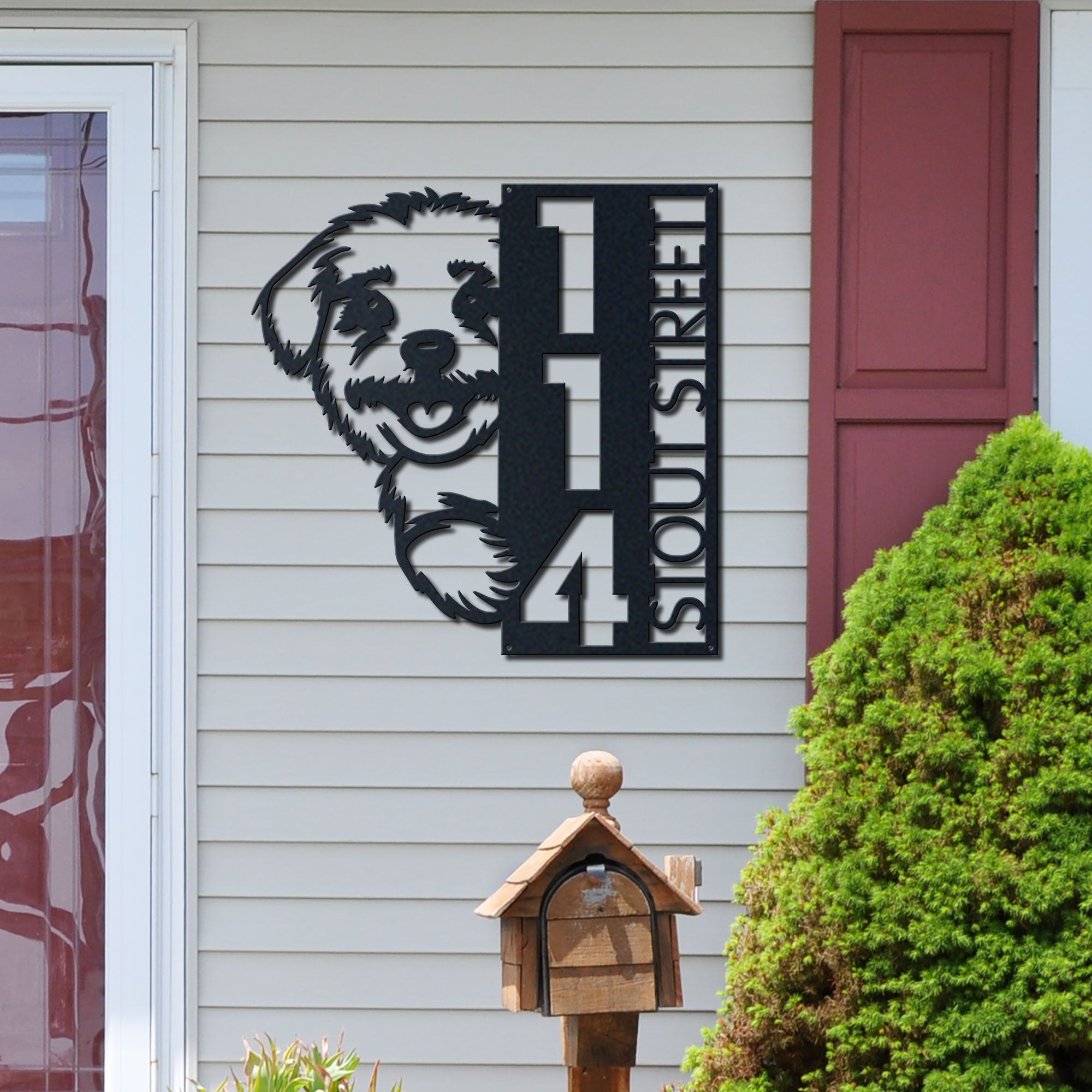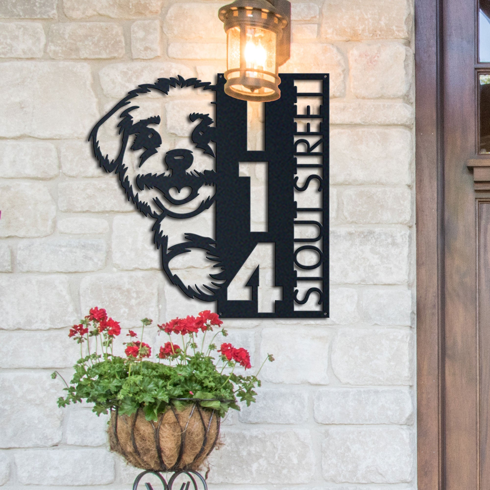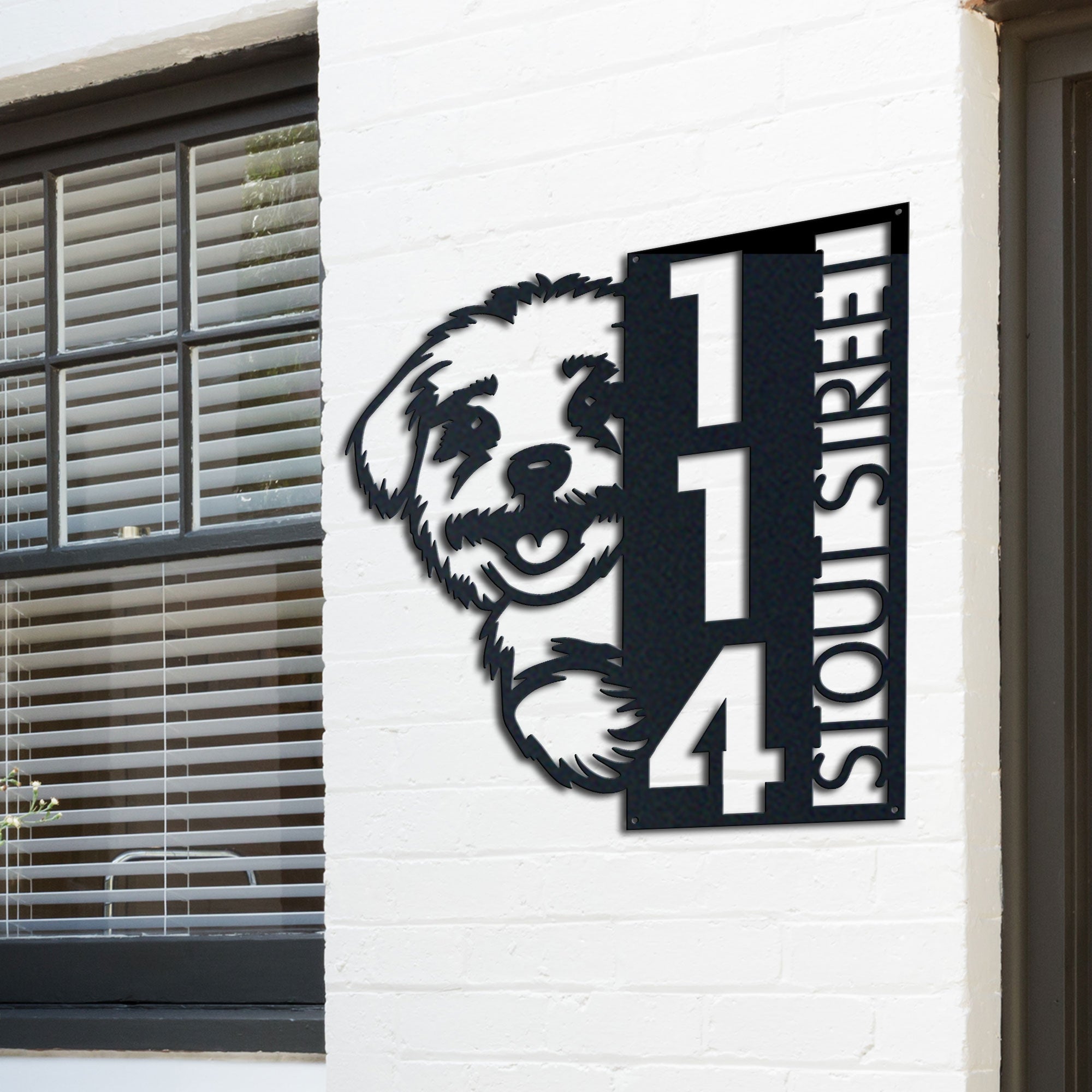 Bichon Frise Address Sign | Custom Metal Vertical House Number Plaque | Pet Owner Gift