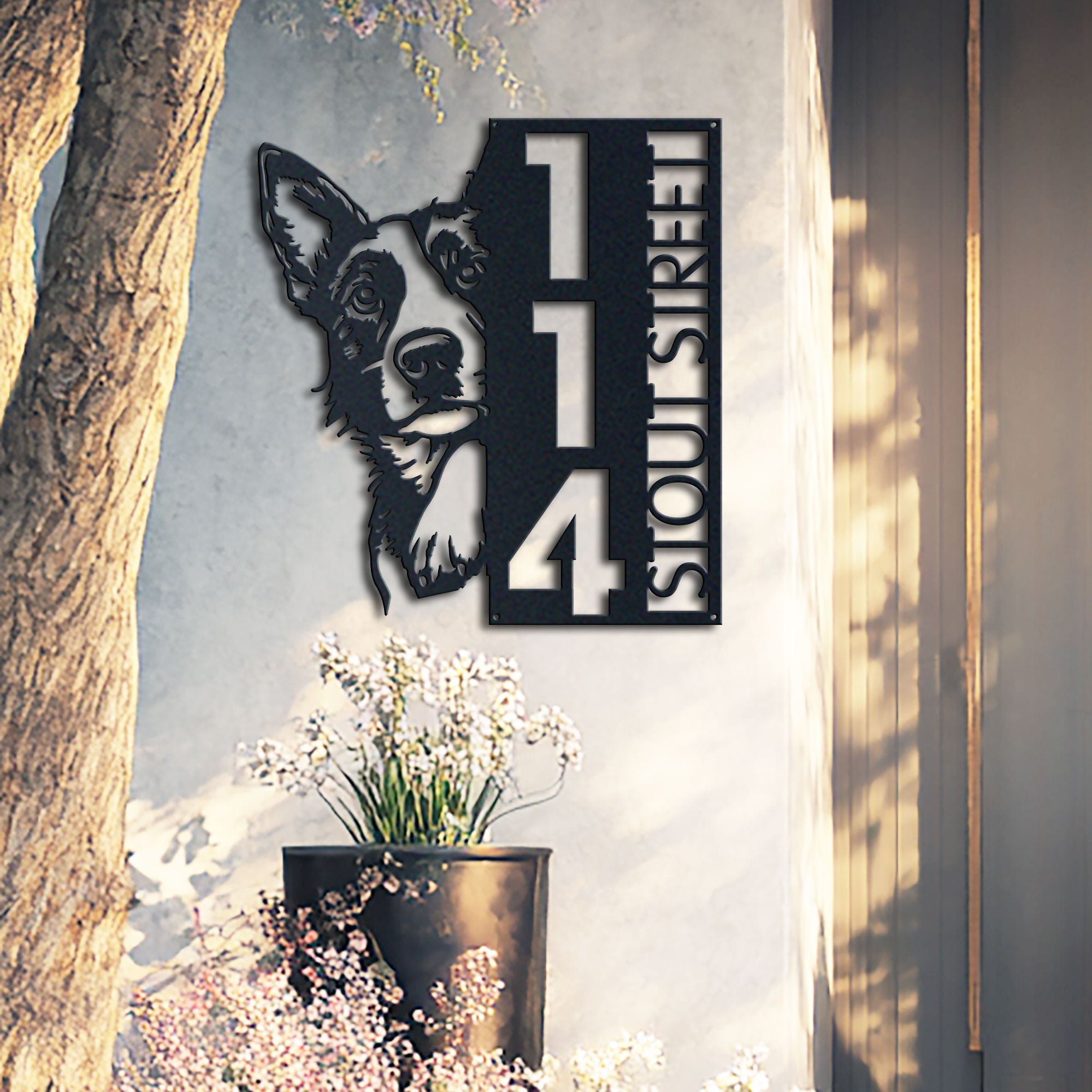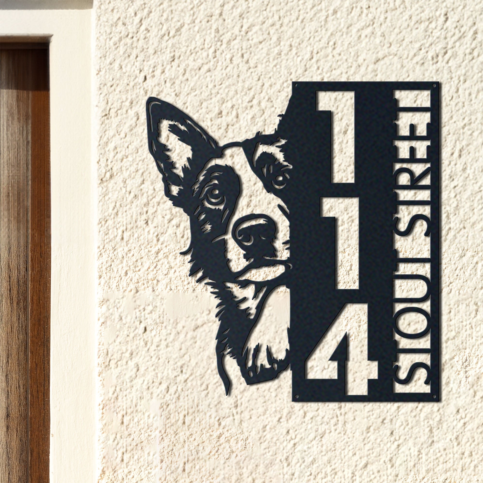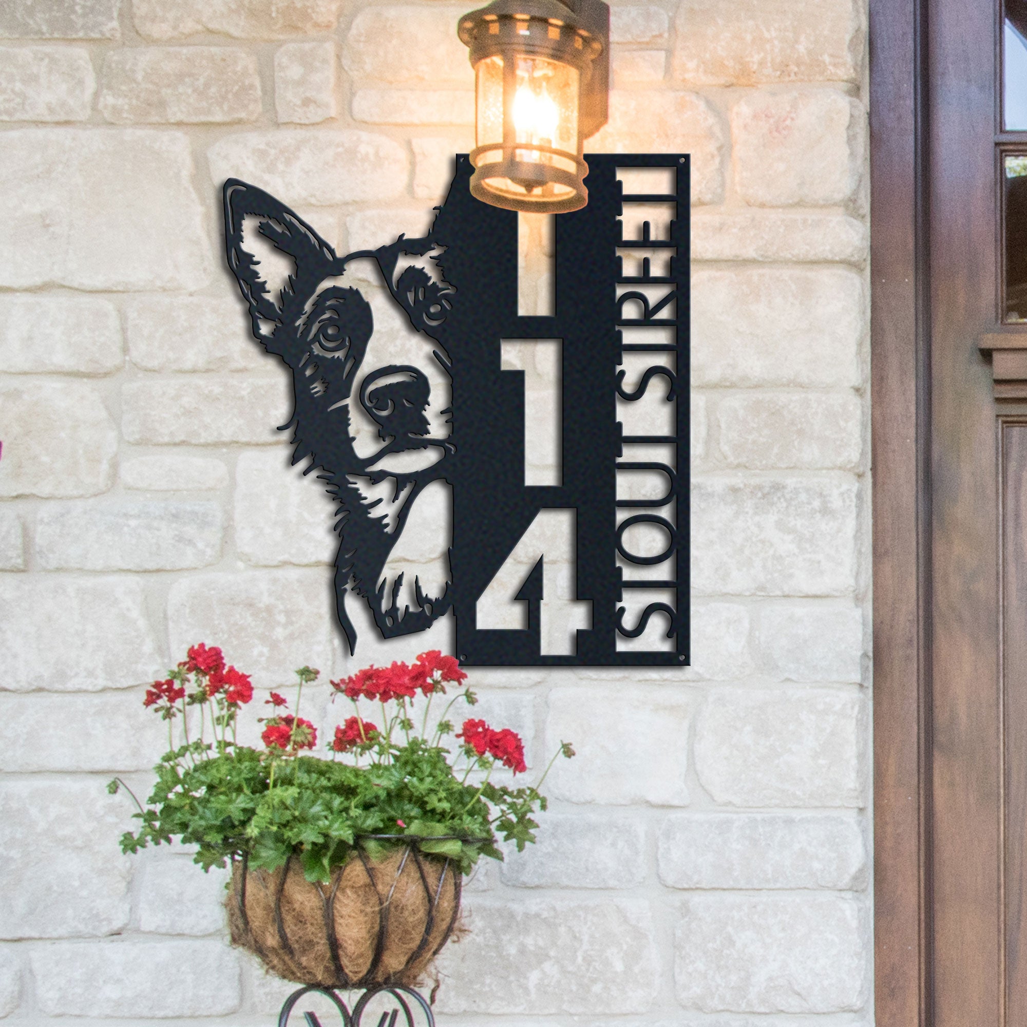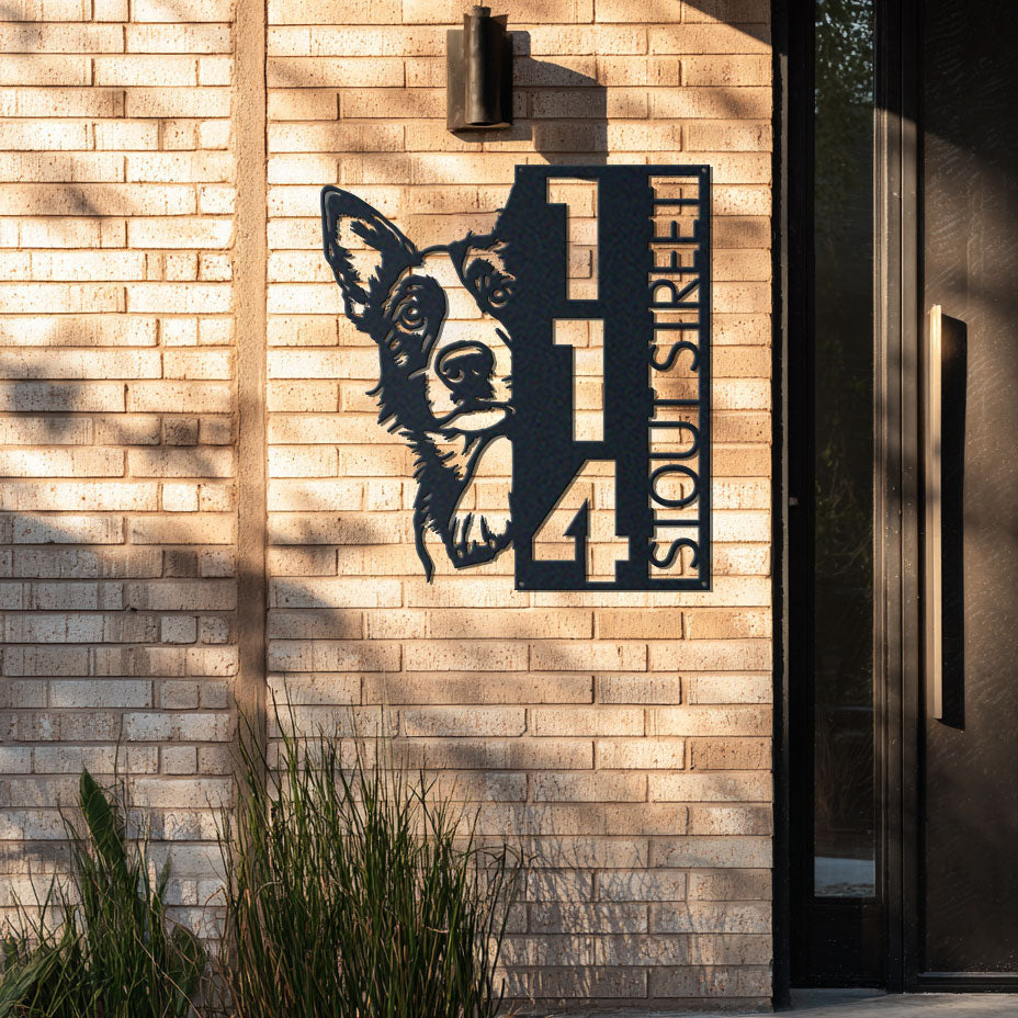 Blue Heeler Address Sign | Custom Metal Vertical House Number Plaque | Pet Owner Gift