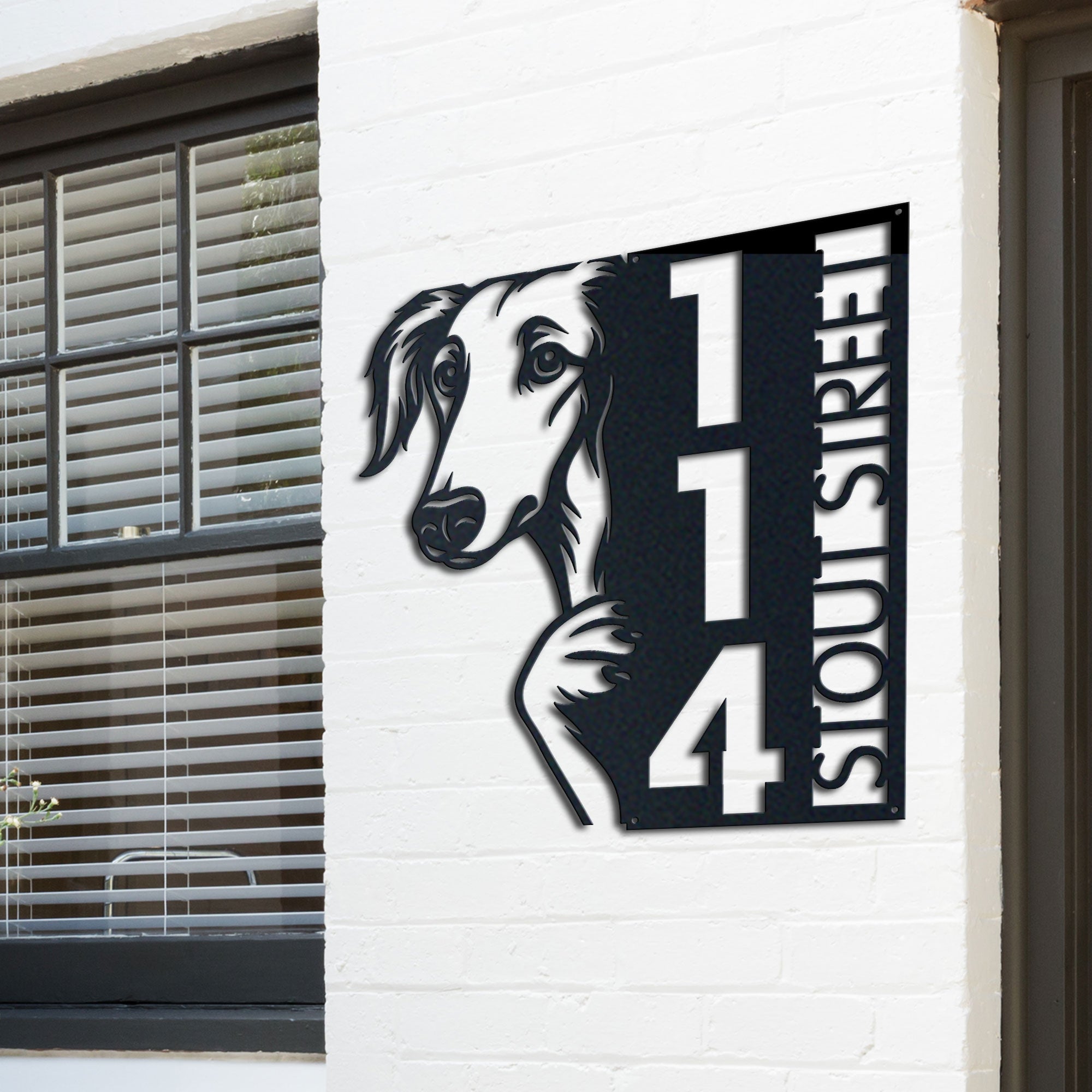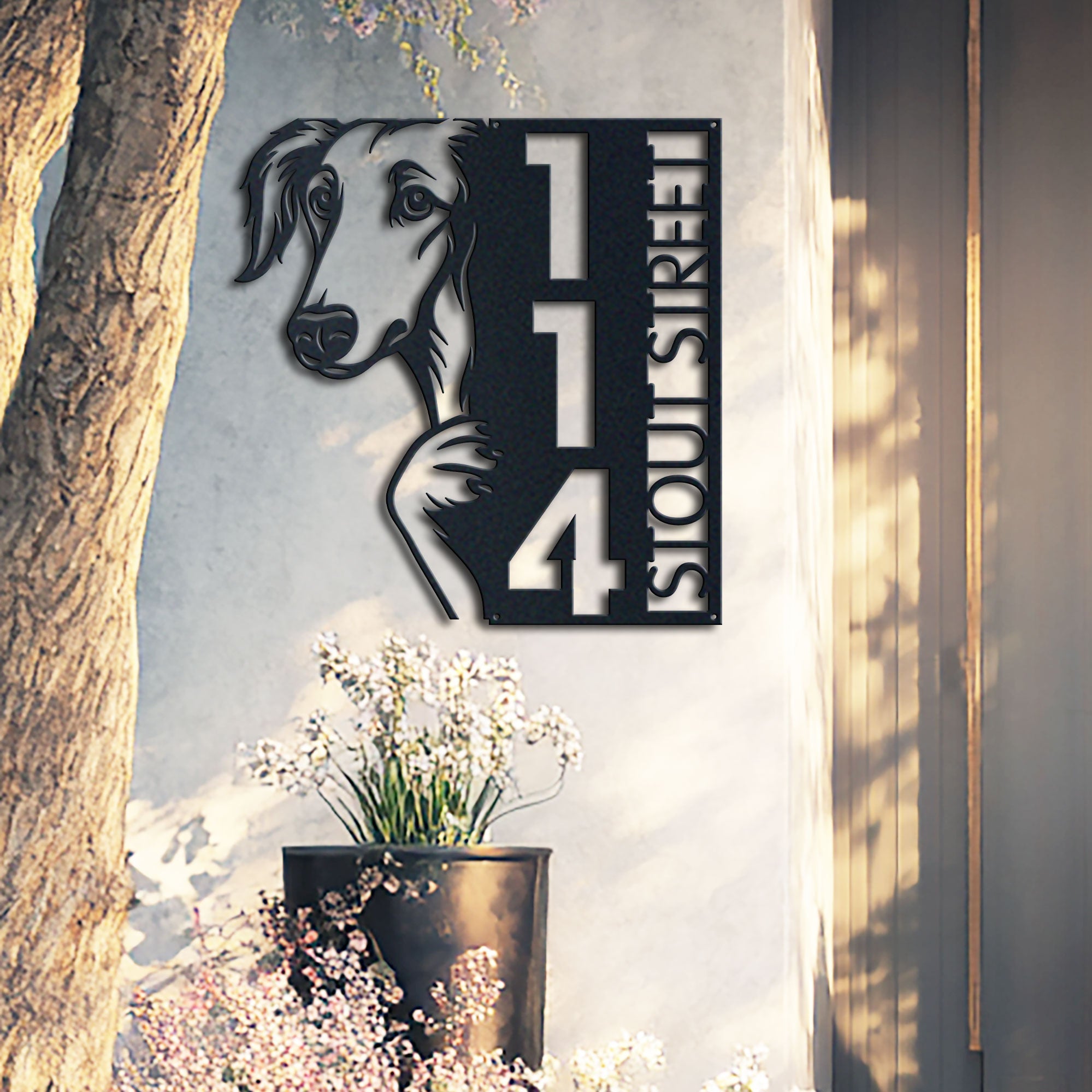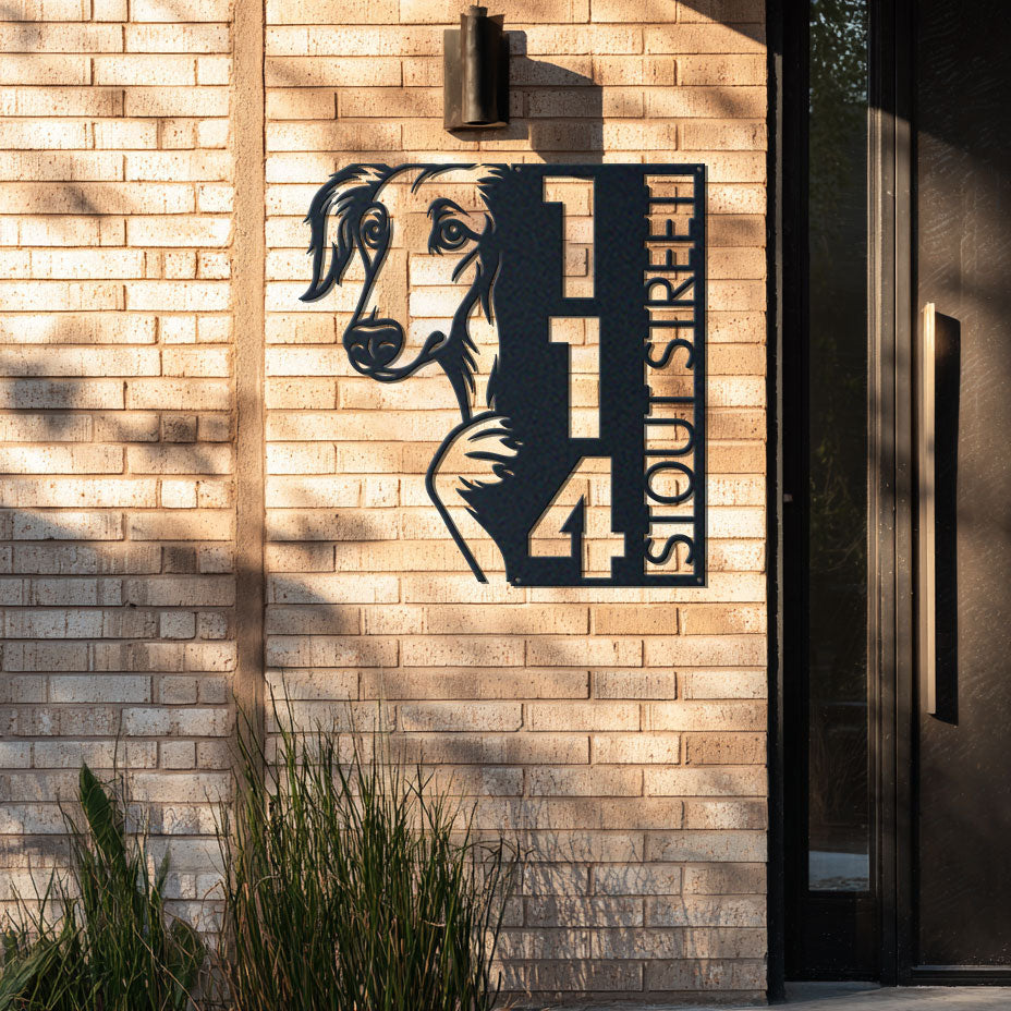 Borzoi Address Sign | Custom Metal Vertical House Number Plaque | Pet Owner Gift