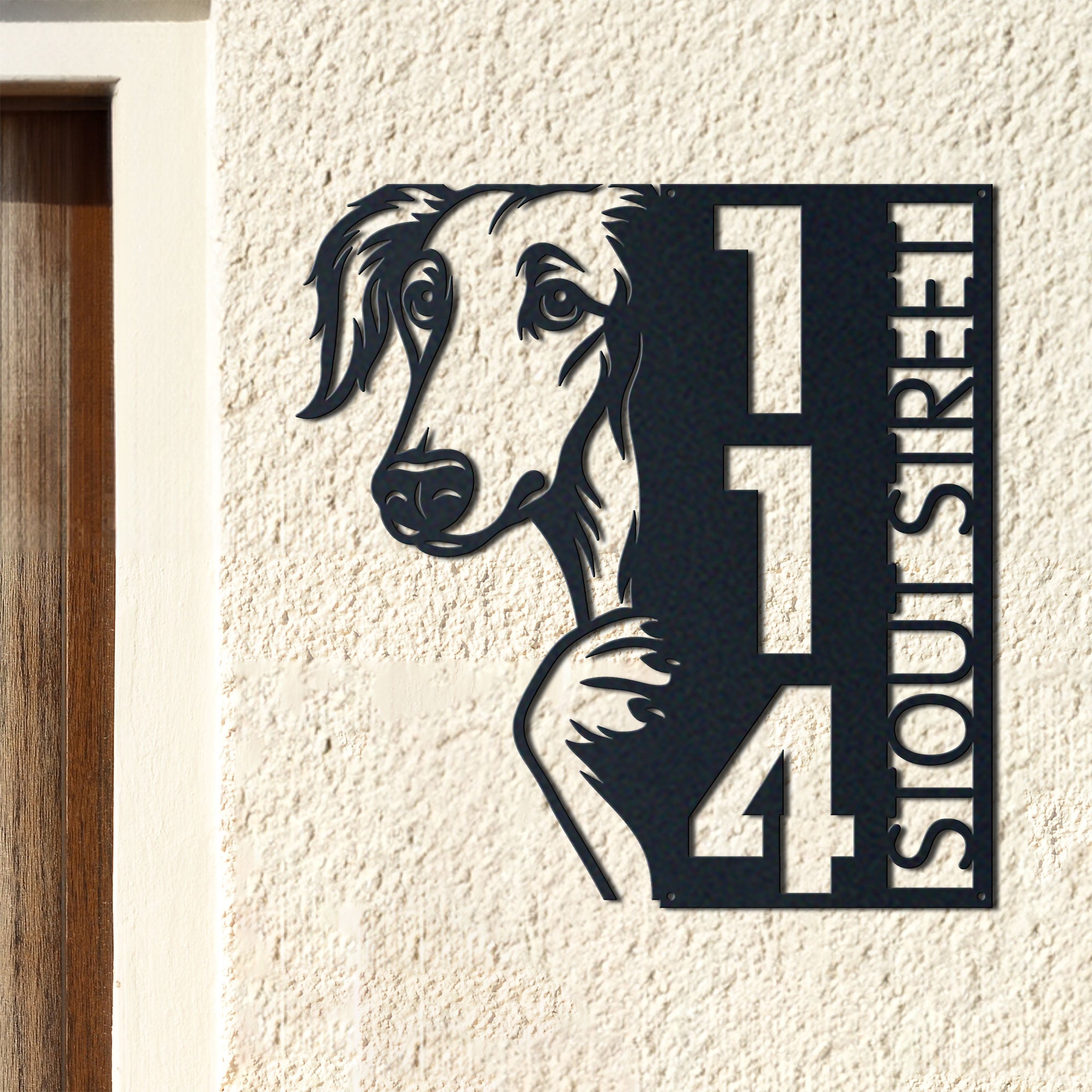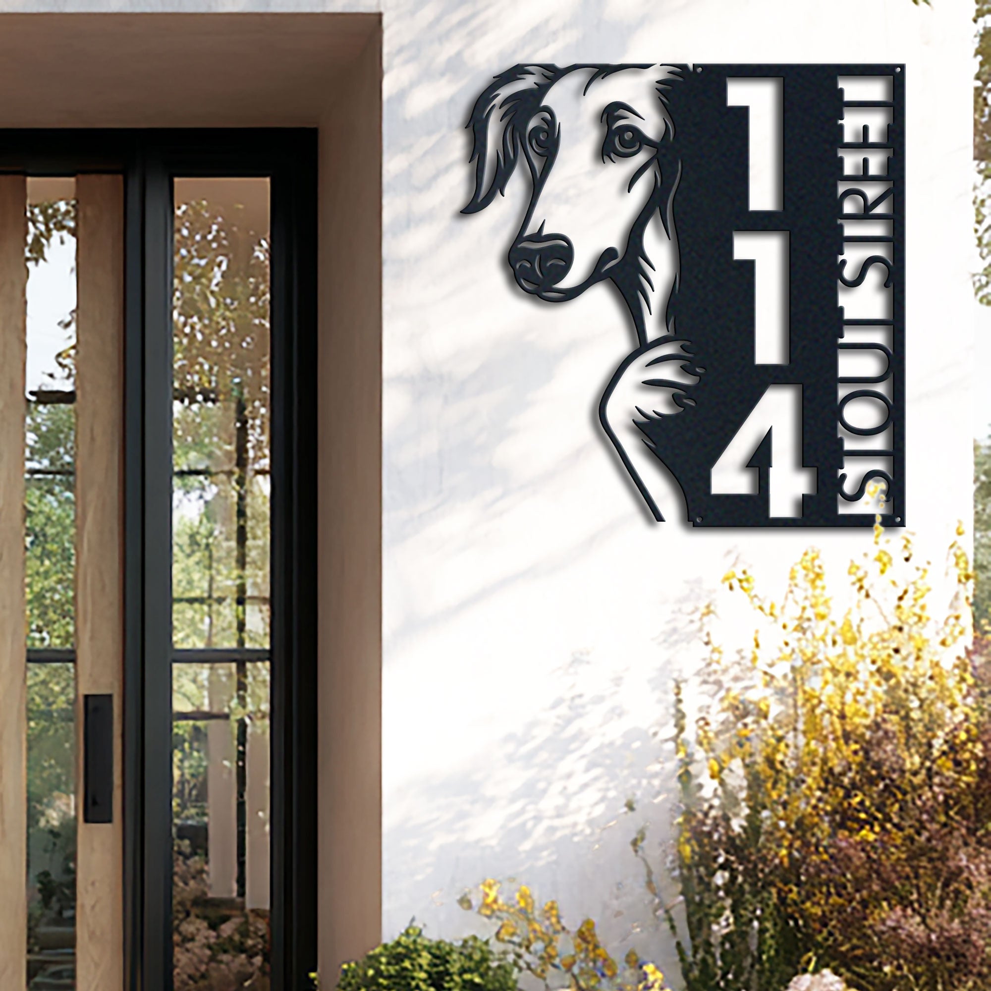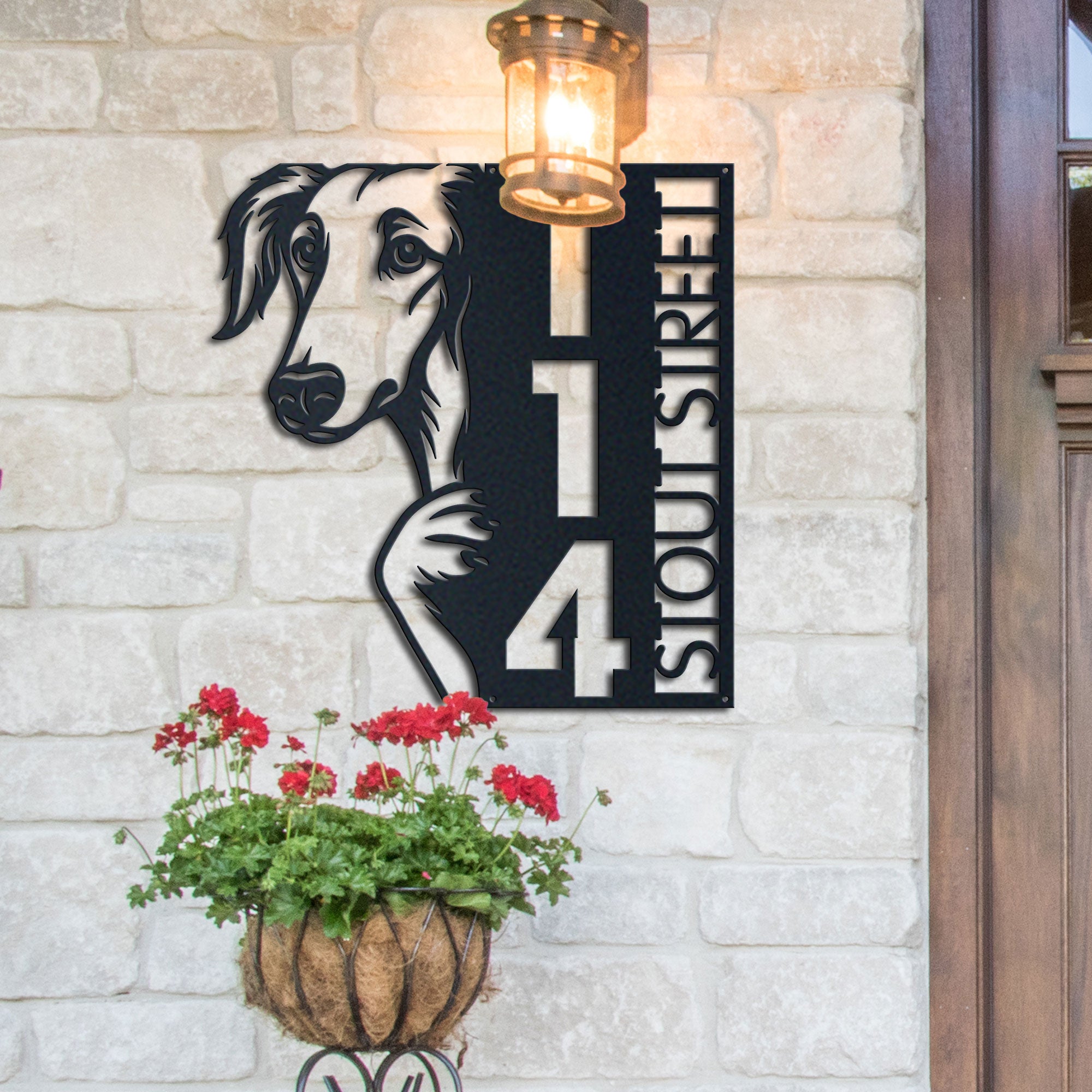 Borzoi Address Sign | Custom Metal Vertical House Number Plaque | Pet Owner Gift