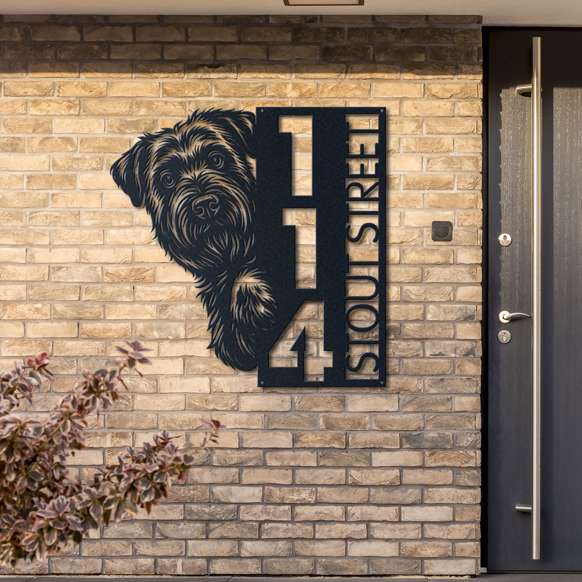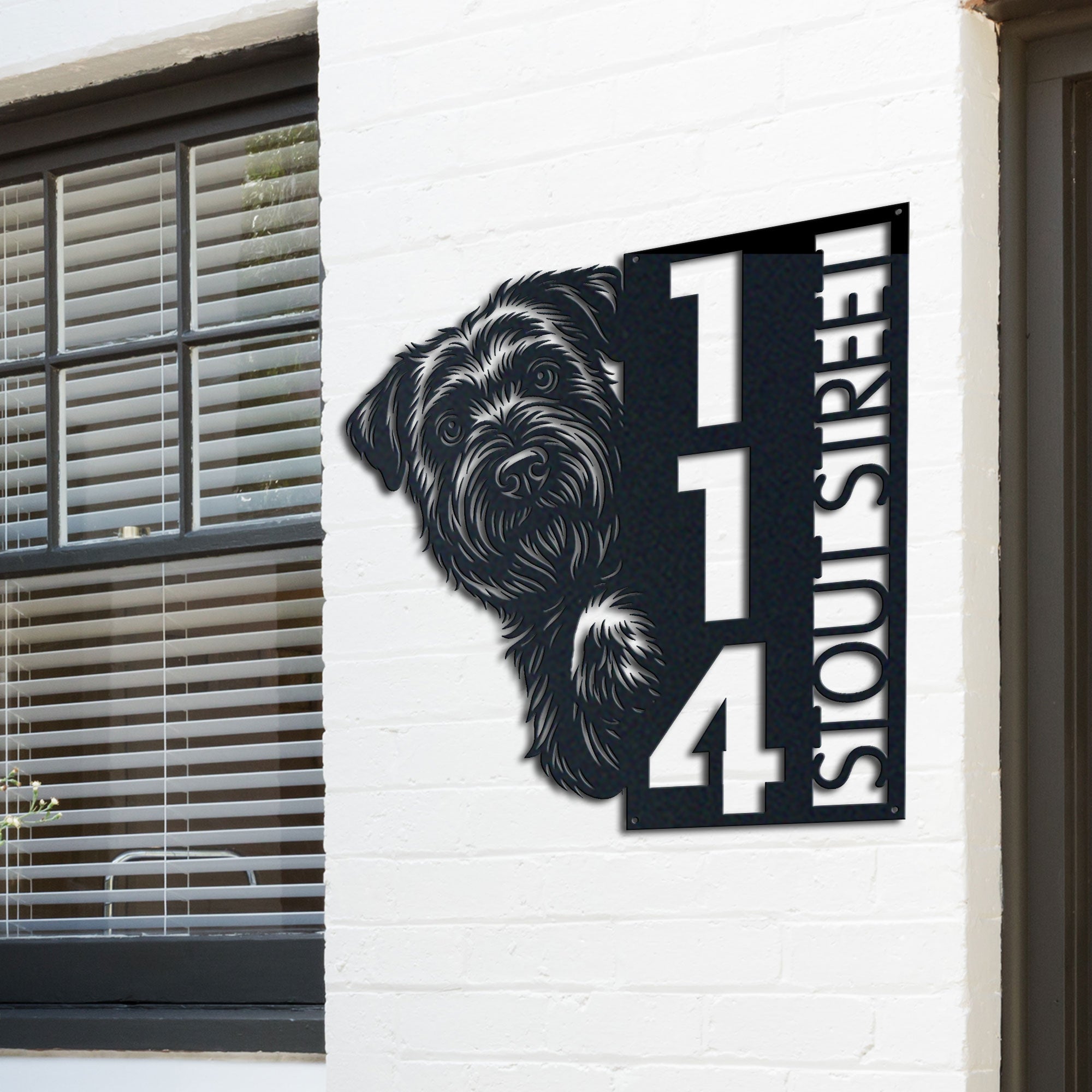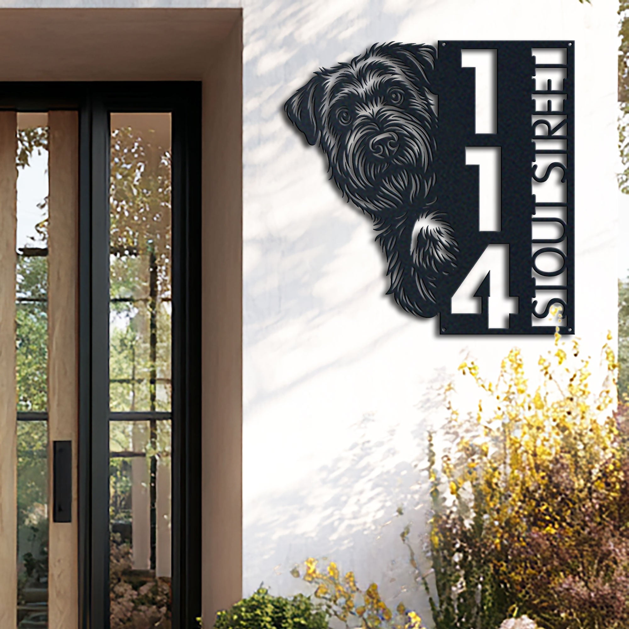 Bouvier des Flandres 1 Address Sign | Custom Metal Vertical House Number Plaque | Pet Owner Gift