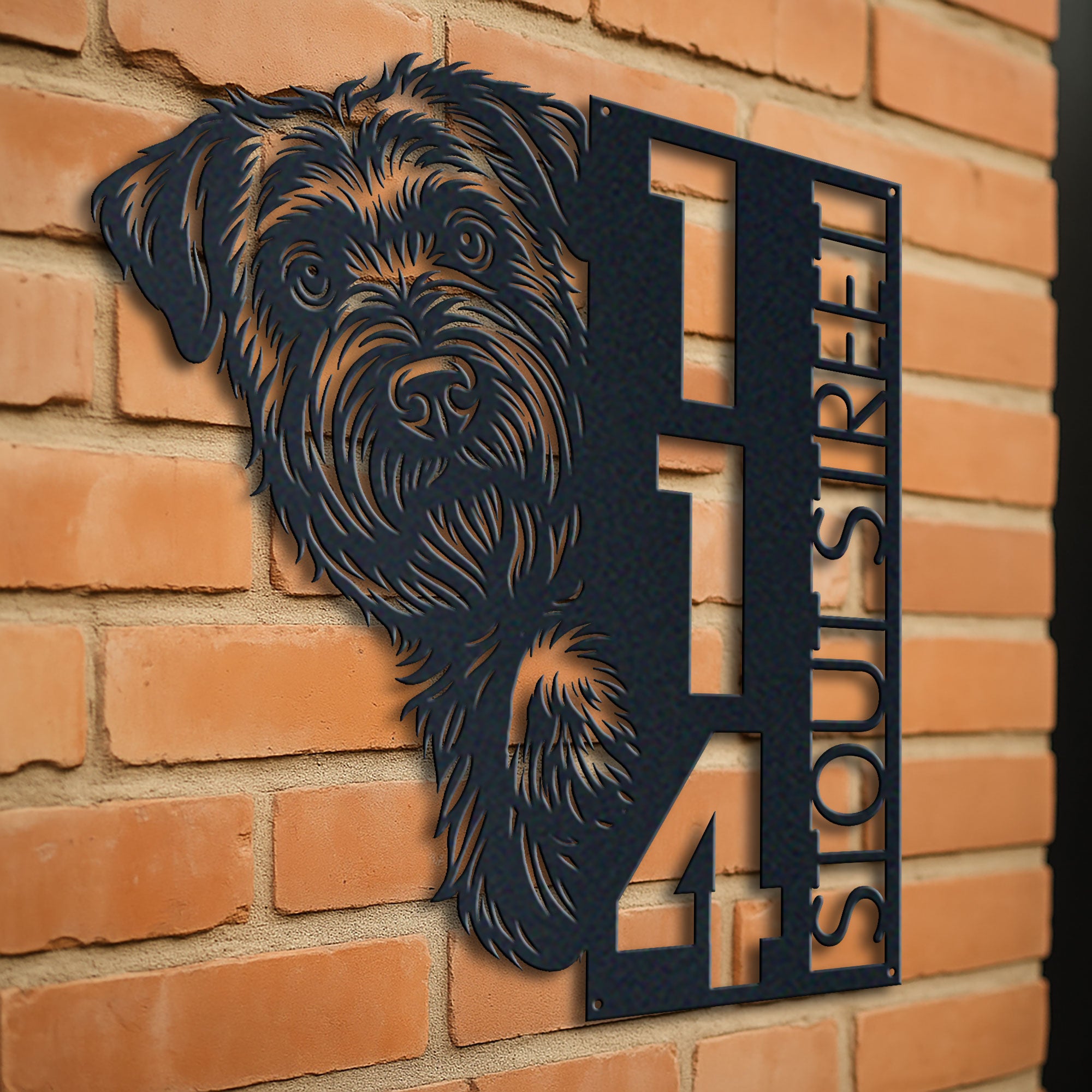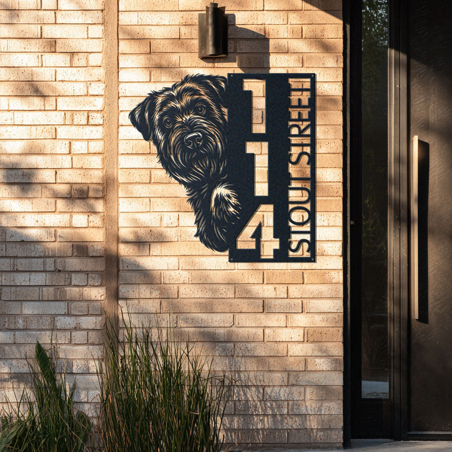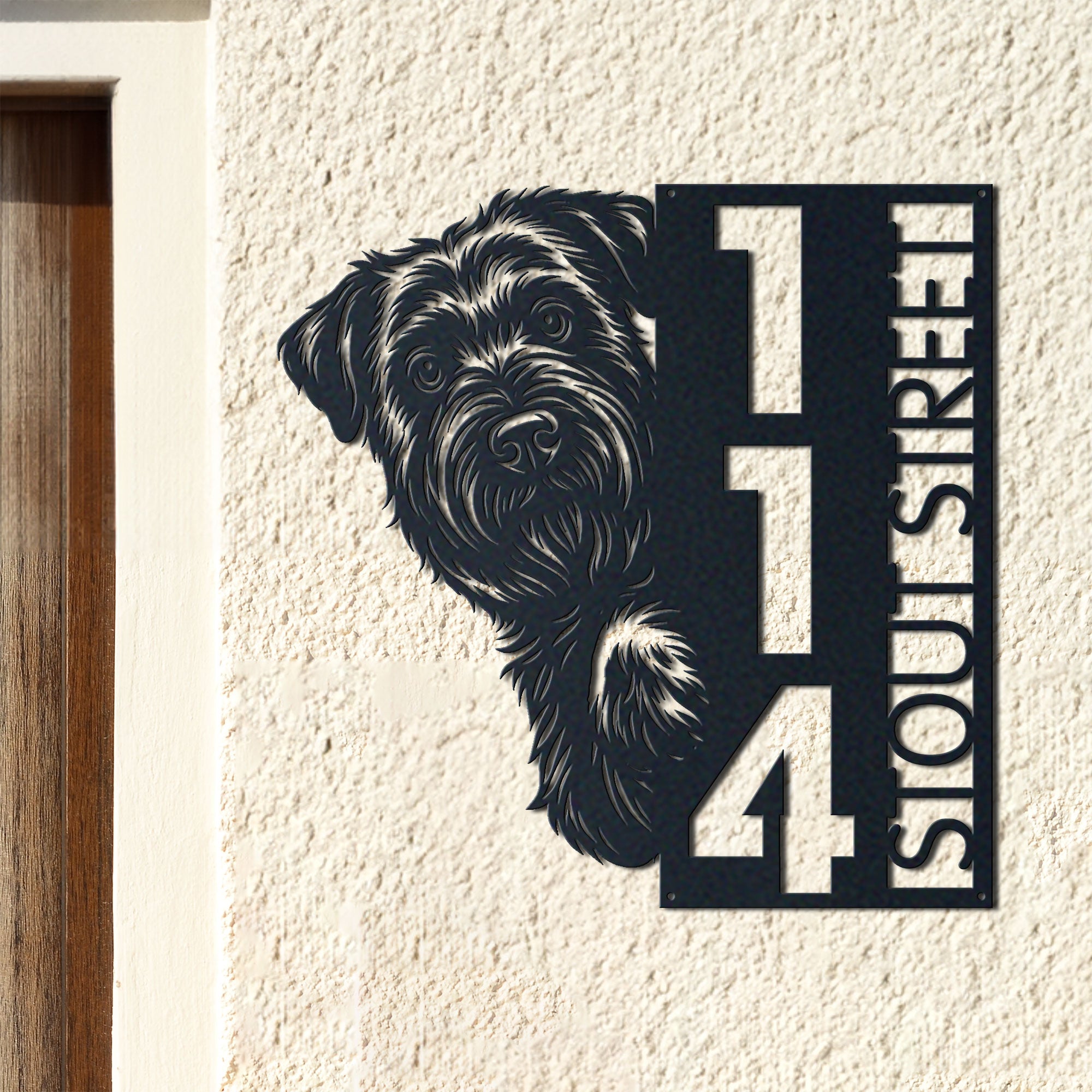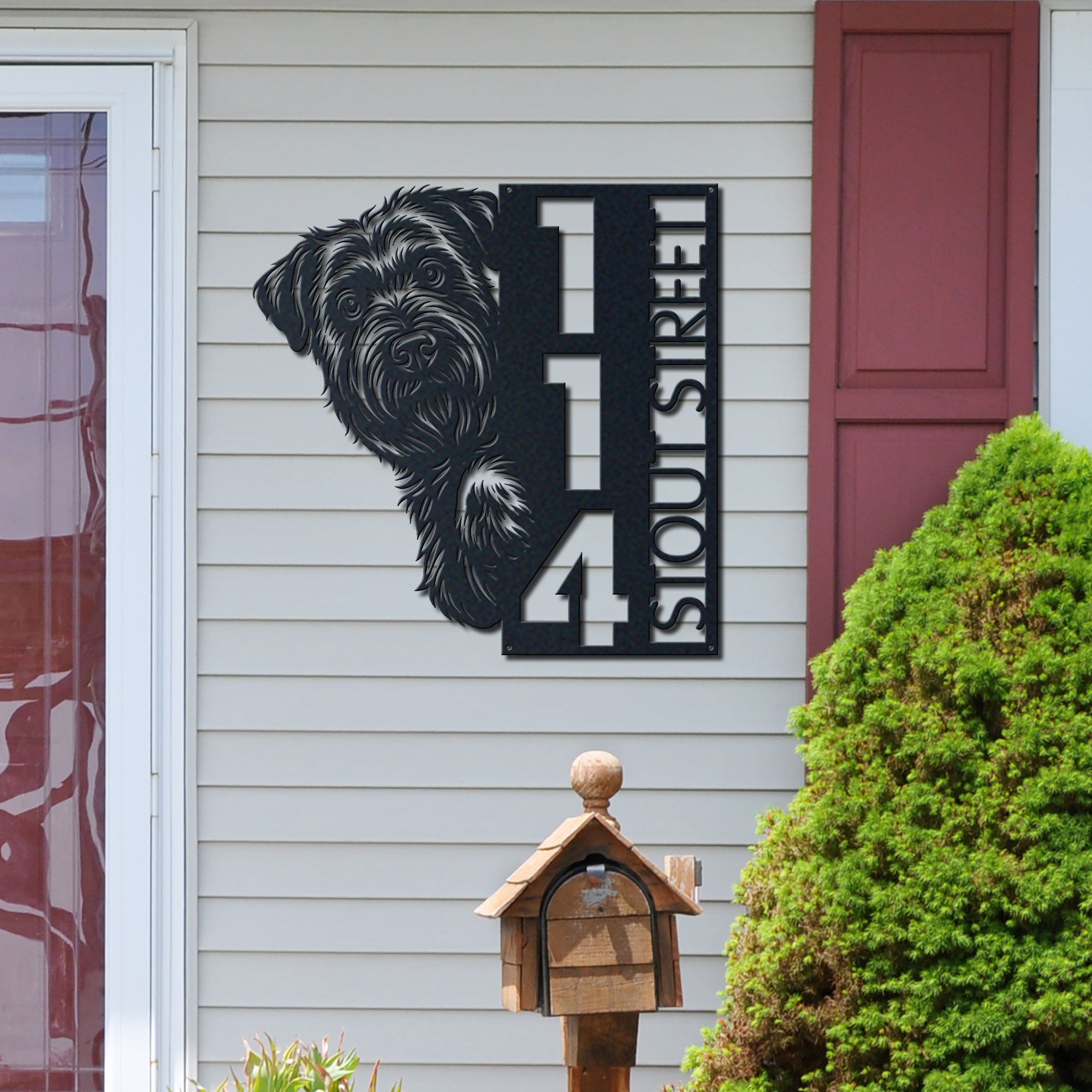 Bouvier des Flandres 1 Address Sign | Custom Metal Vertical House Number Plaque | Pet Owner Gift