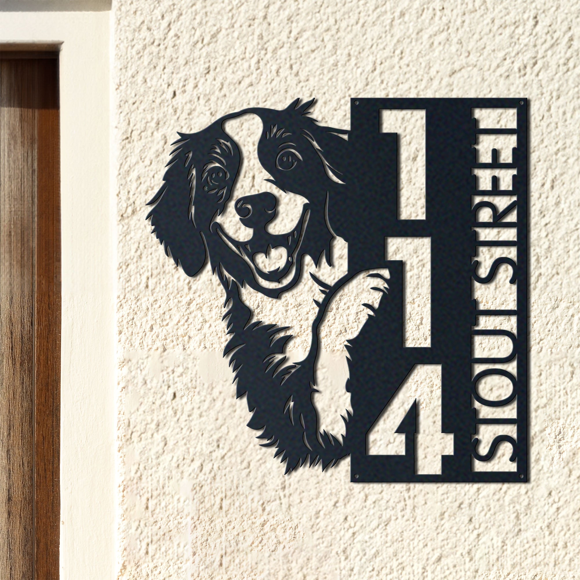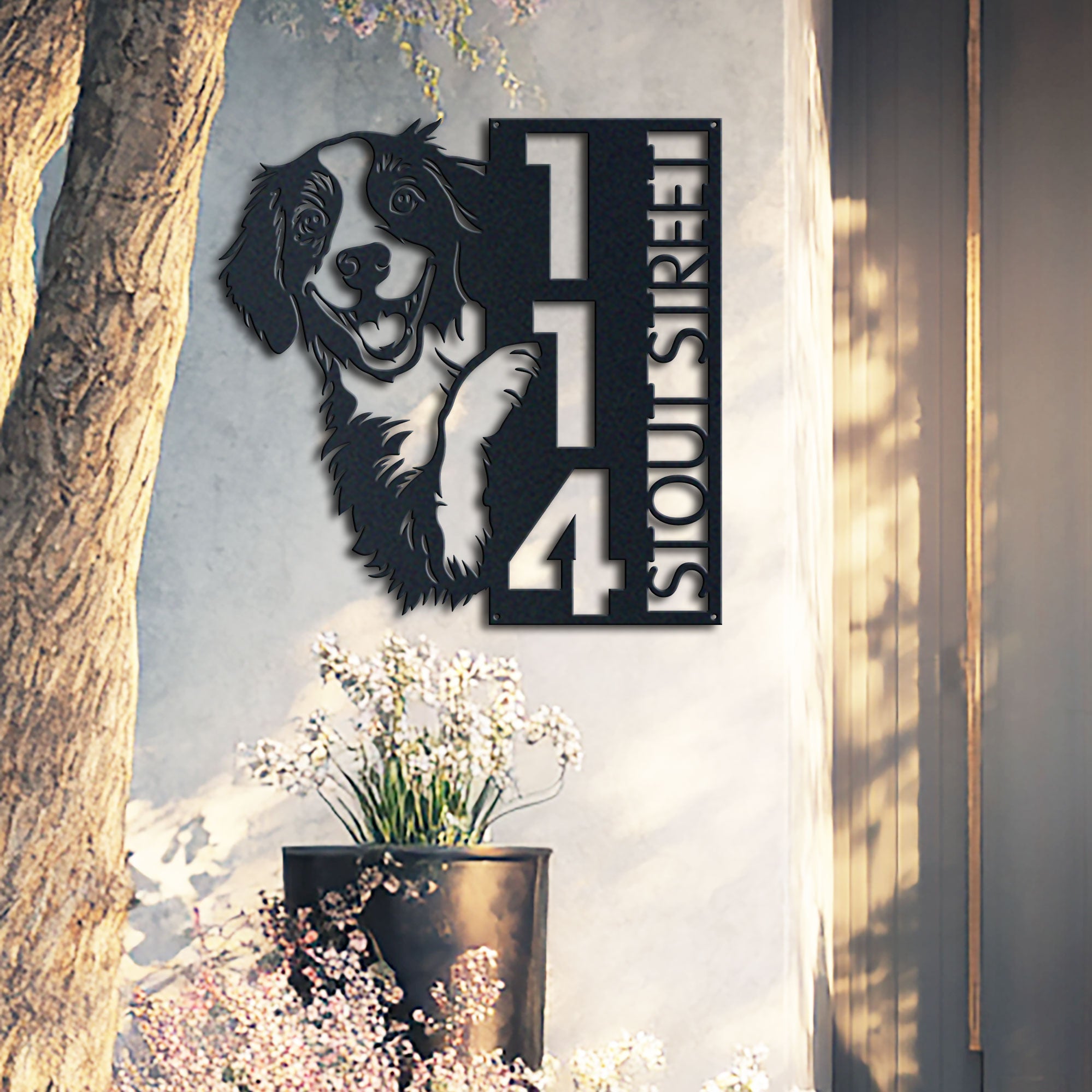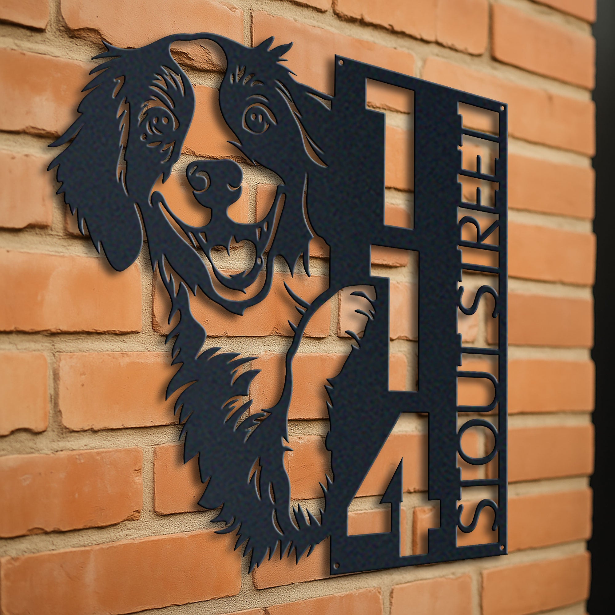 Brittany Spaniel Address Sign | Custom Metal Vertical House Number Plaque | Pet Owner Gift