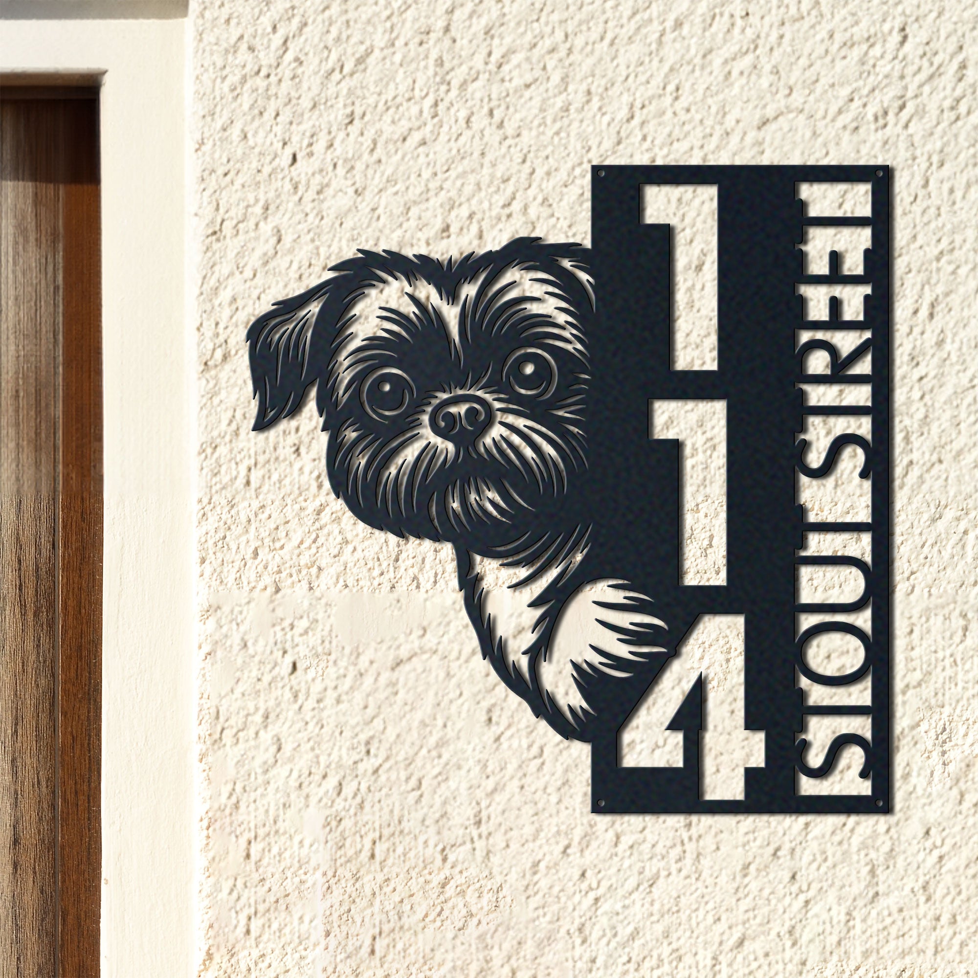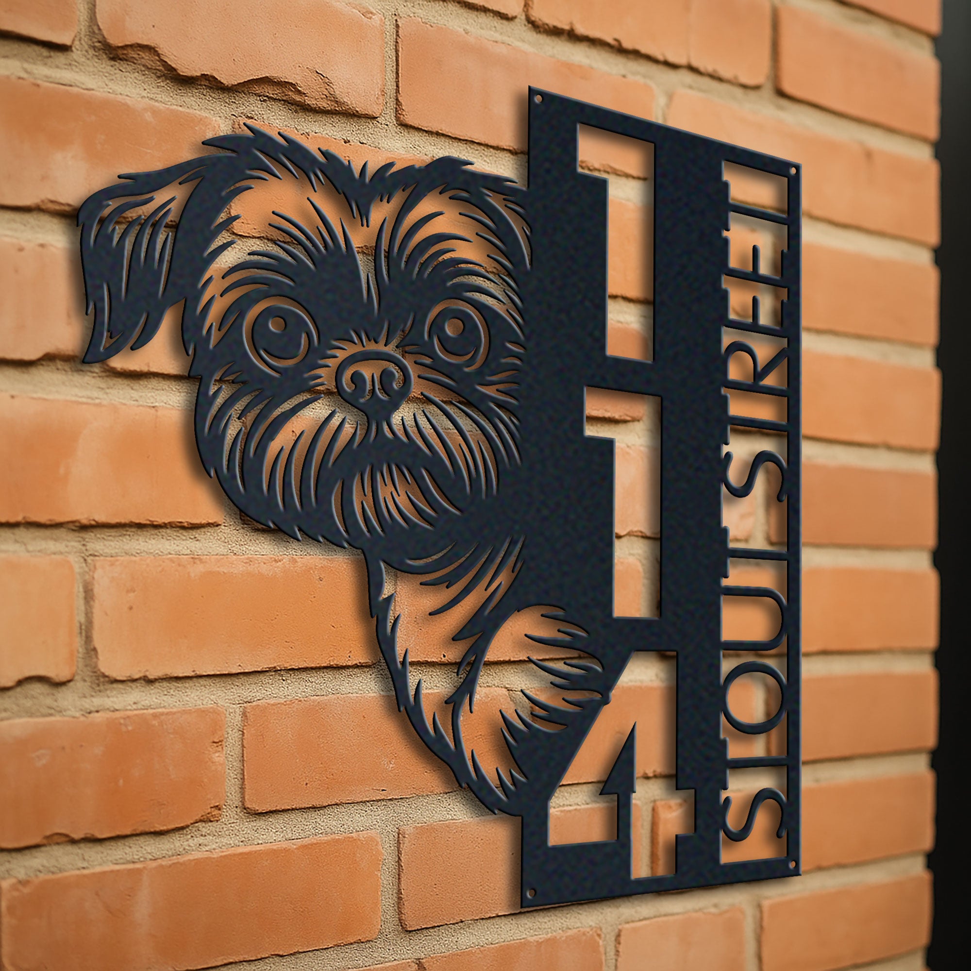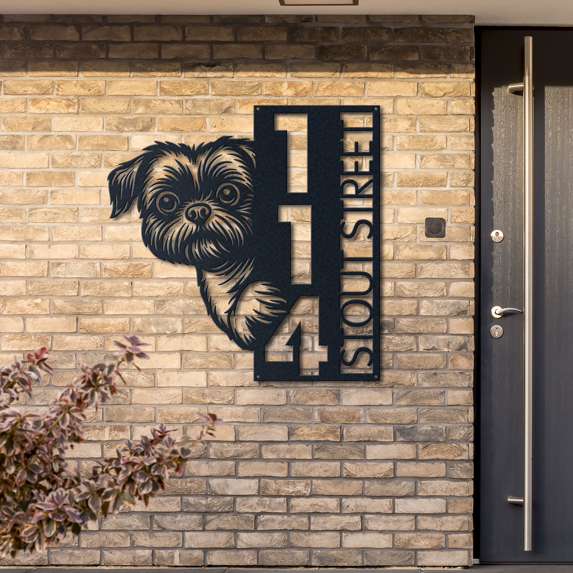 Brussel Griffon Address Sign | Custom Metal Vertical House Number Plaque | Pet Owner Gift