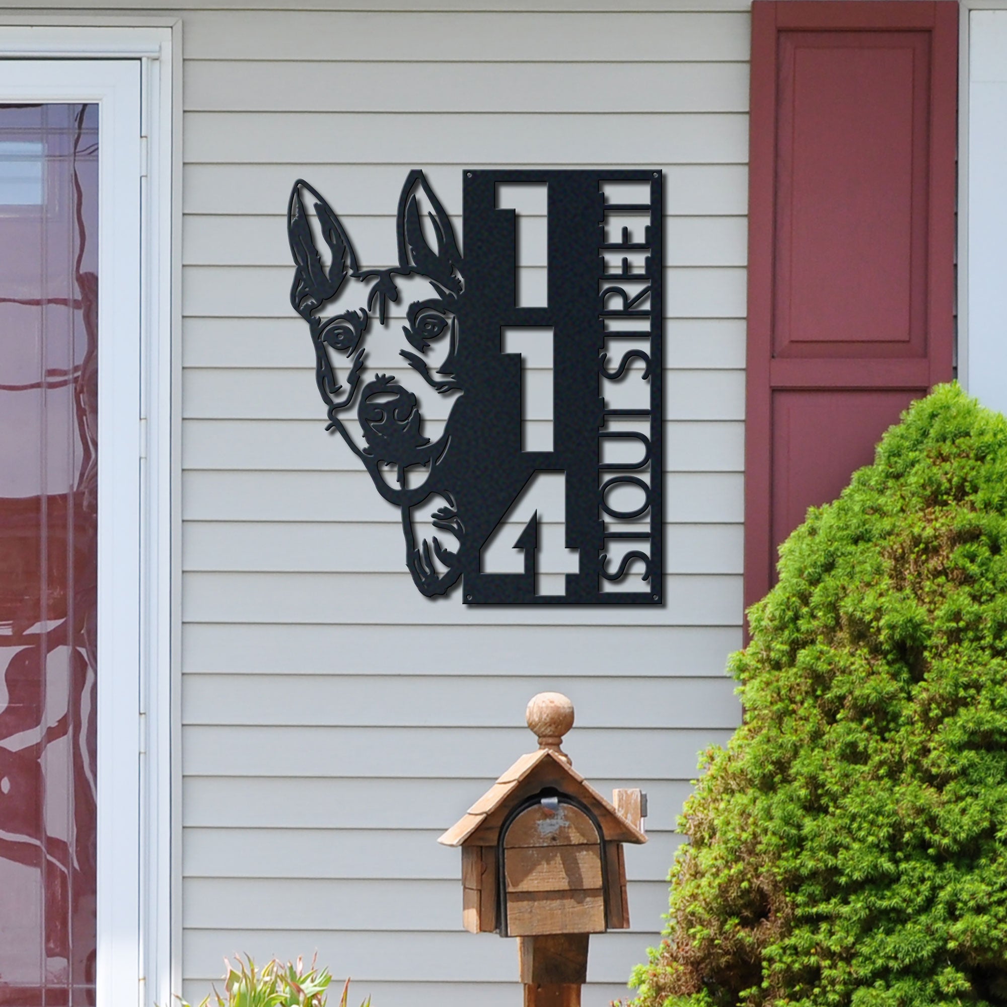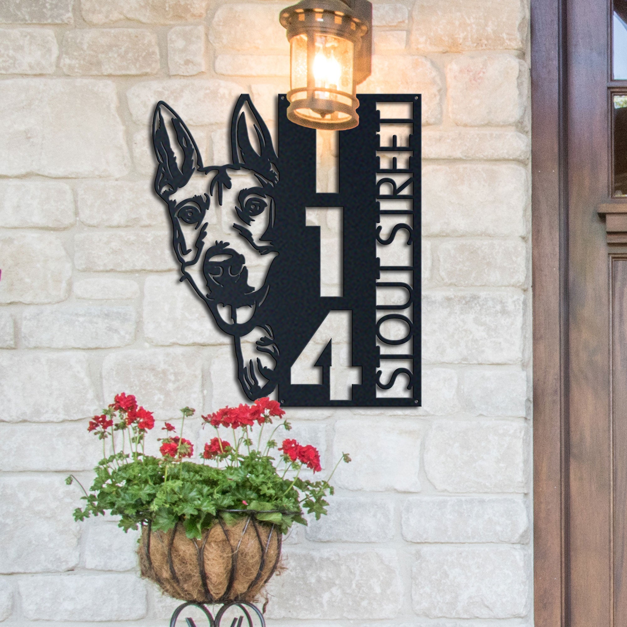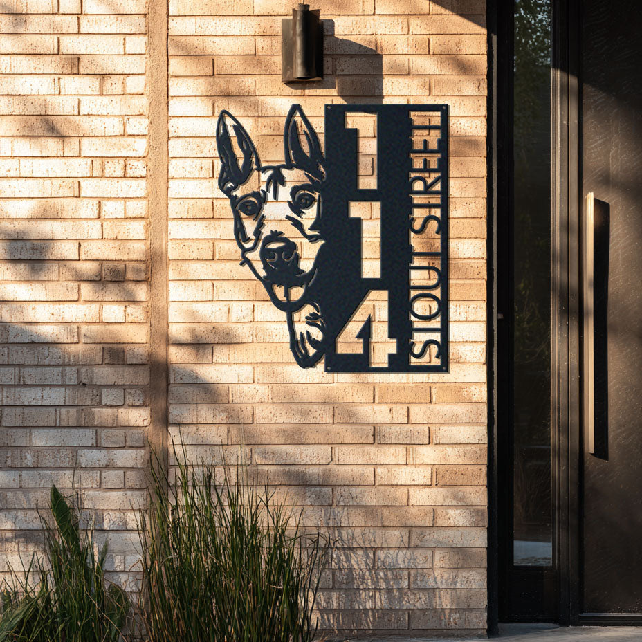 Bull Terrier Address Sign | Custom Metal Vertical House Number Plaque | Pet Owner Gift