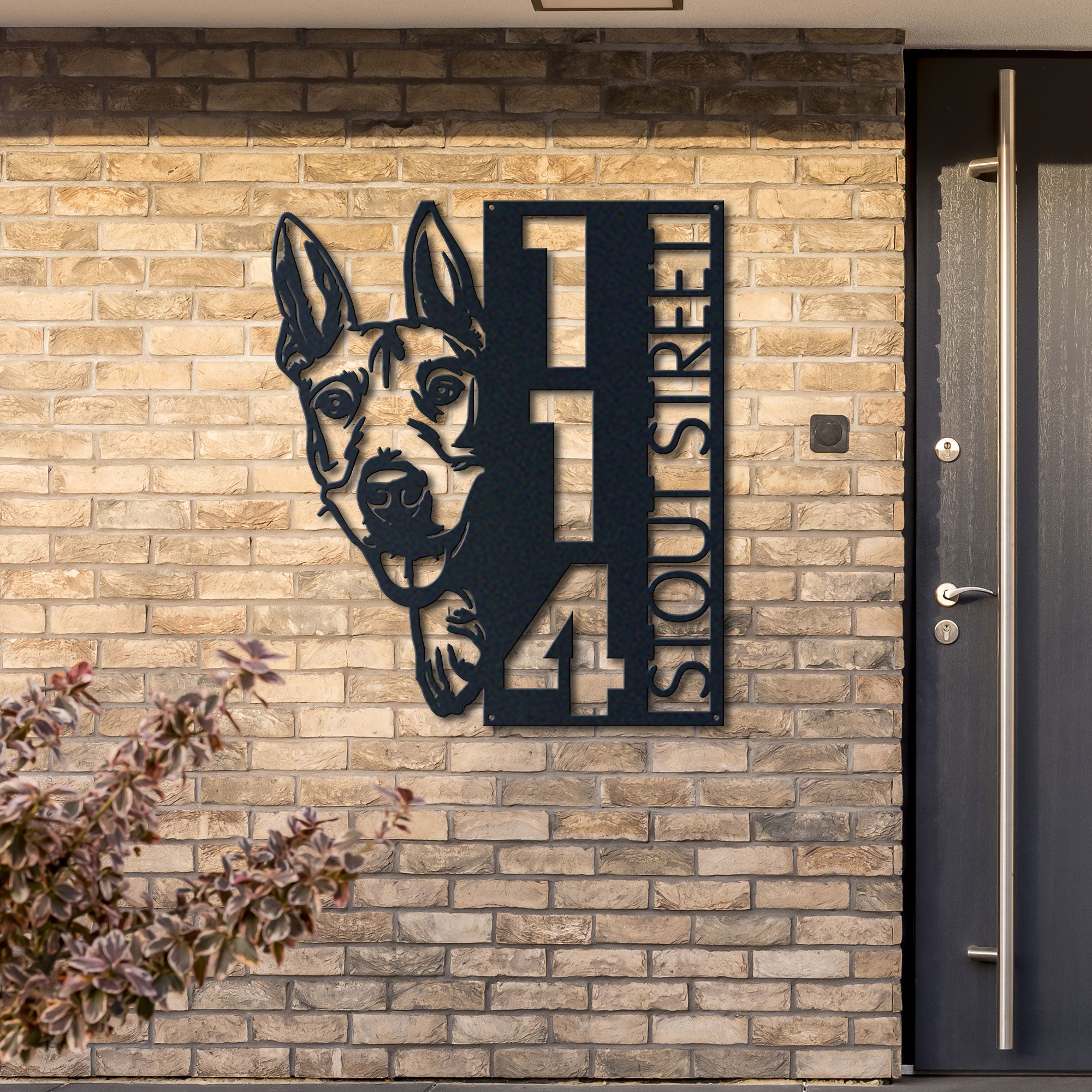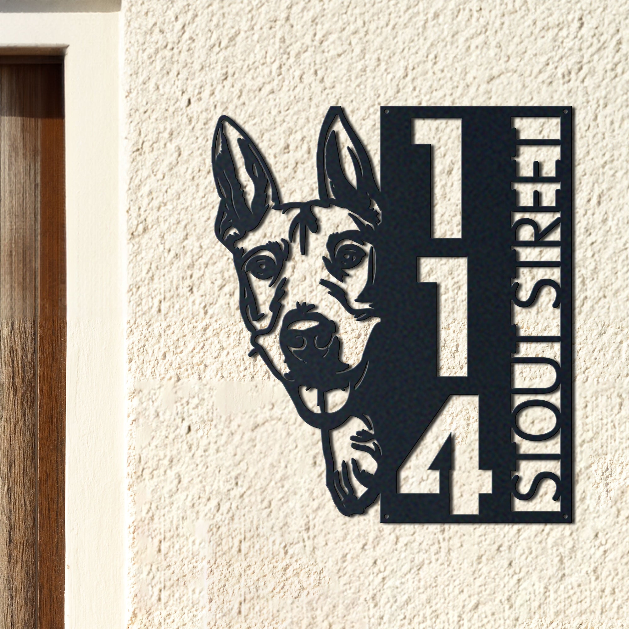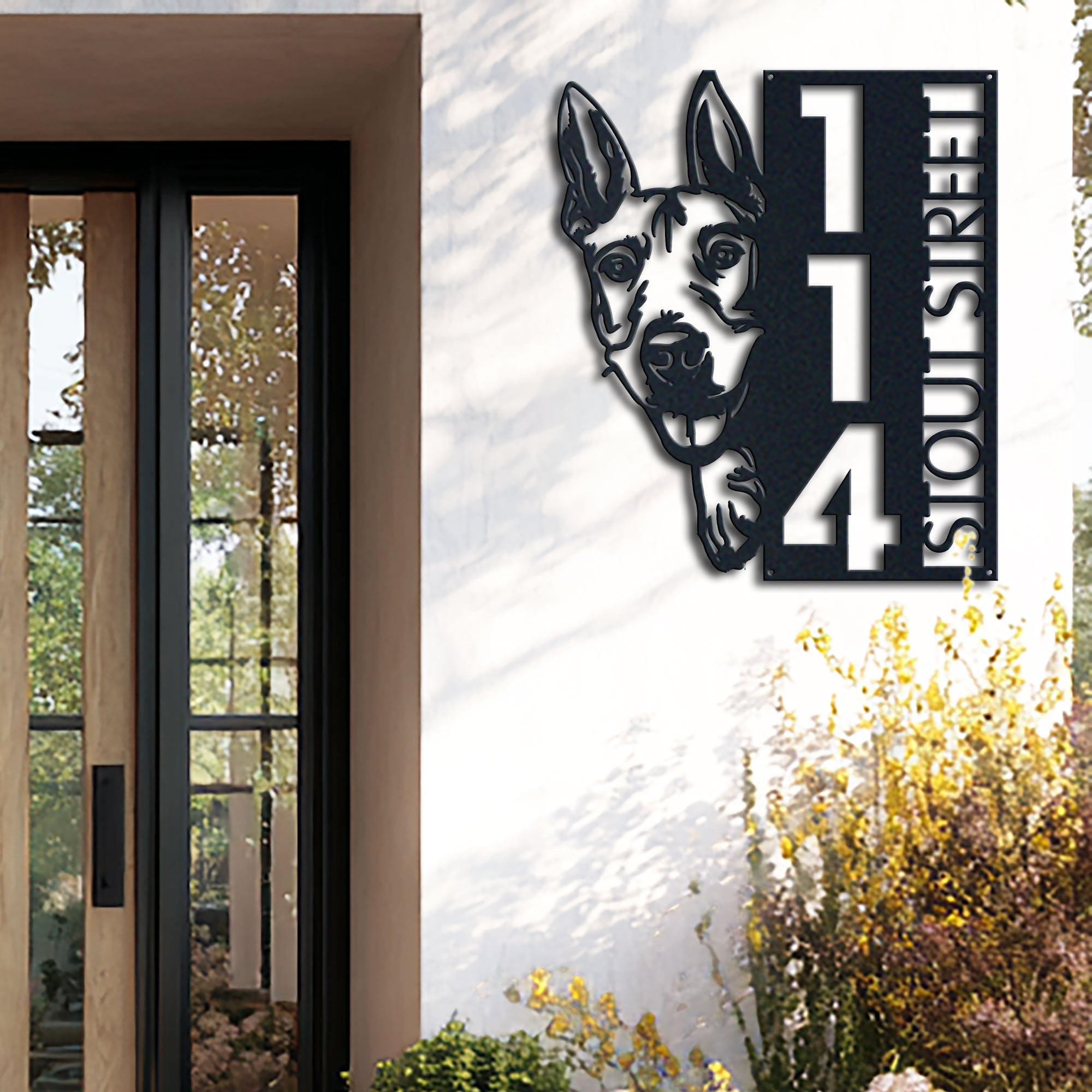 Bull Terrier Address Sign | Custom Metal Vertical House Number Plaque | Pet Owner Gift