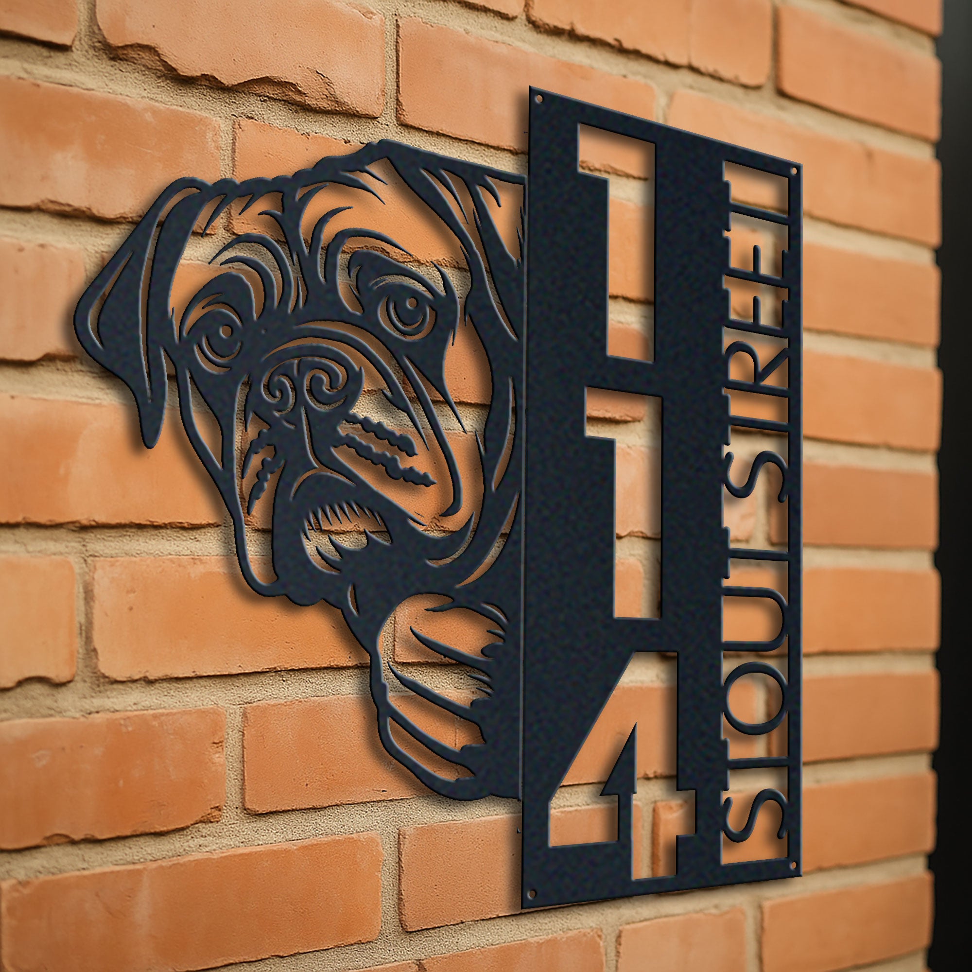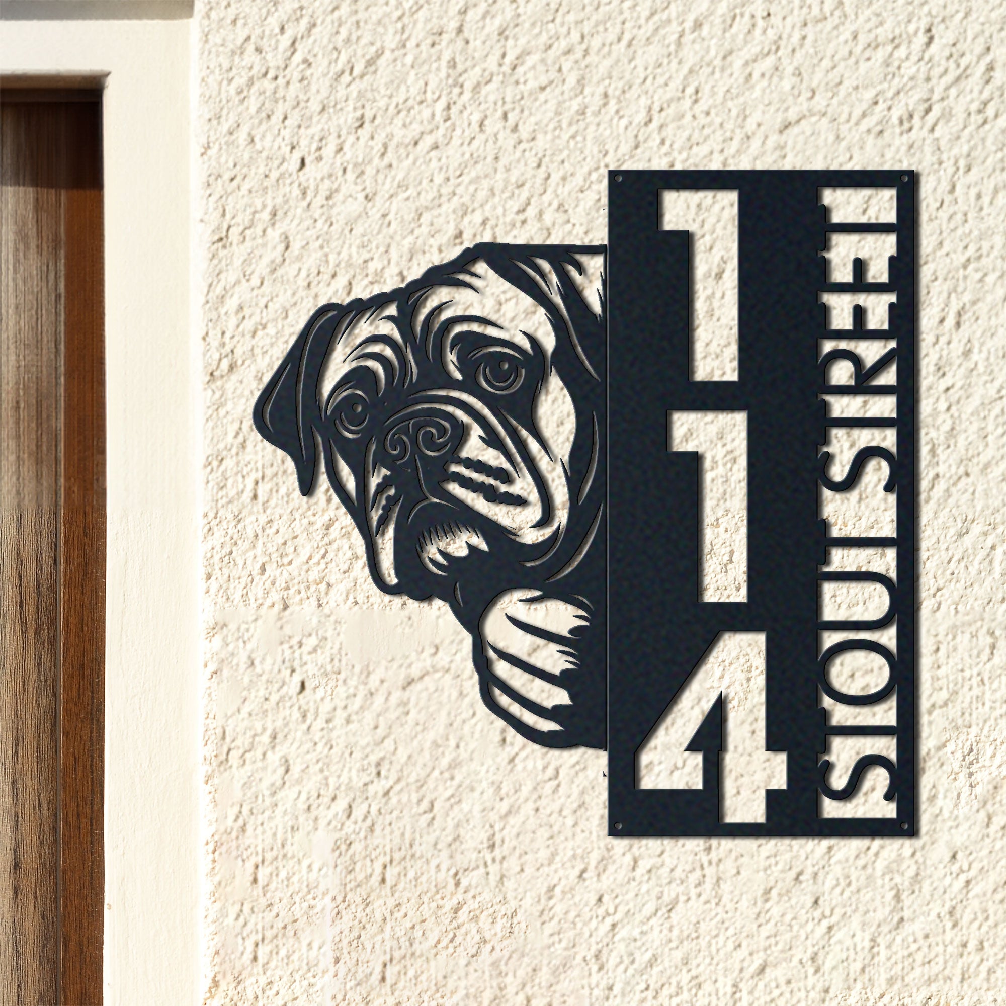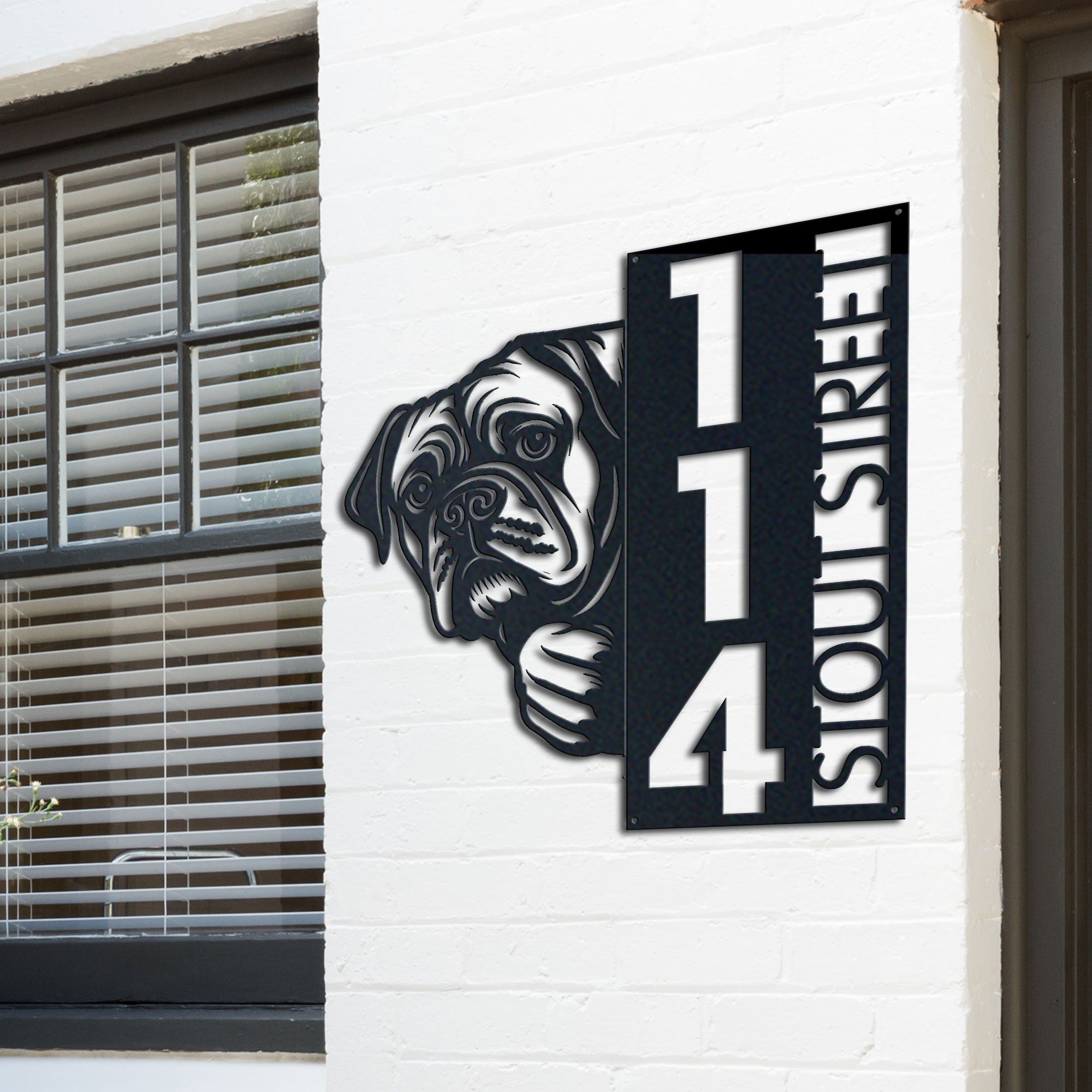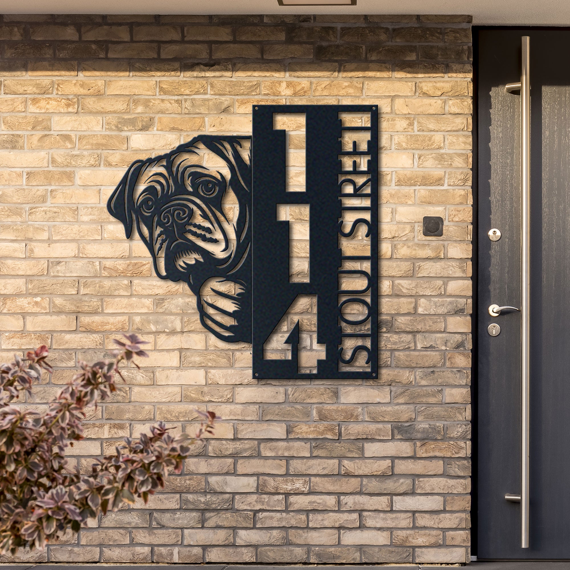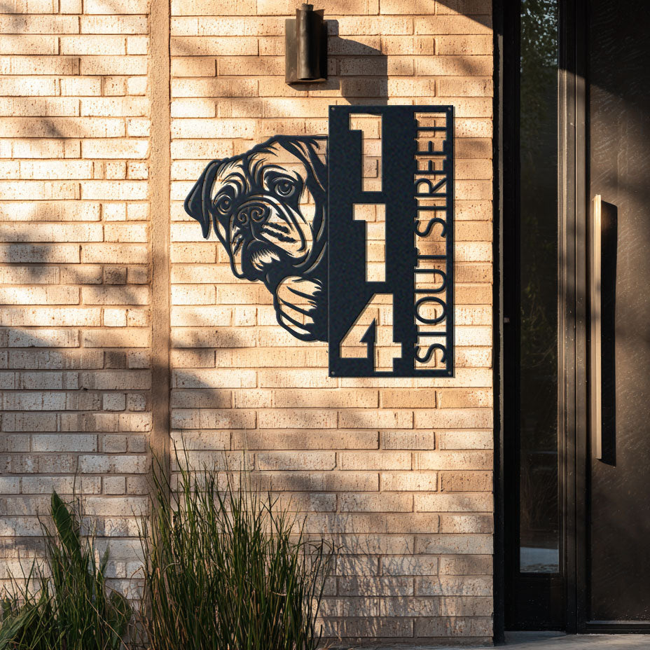 Bullmastiff Address Sign | Custom Metal Vertical House Number Plaque | Pet Owner Gift