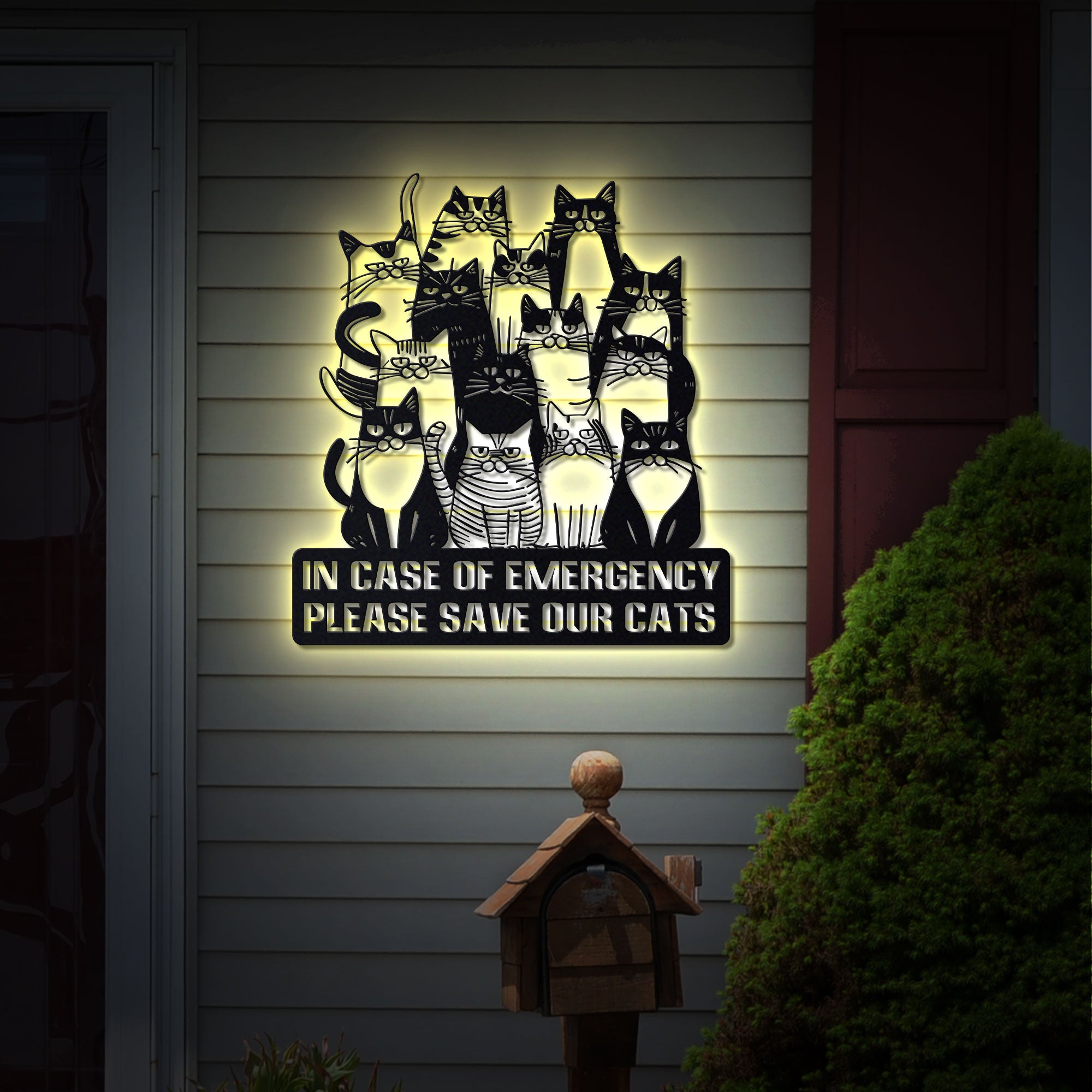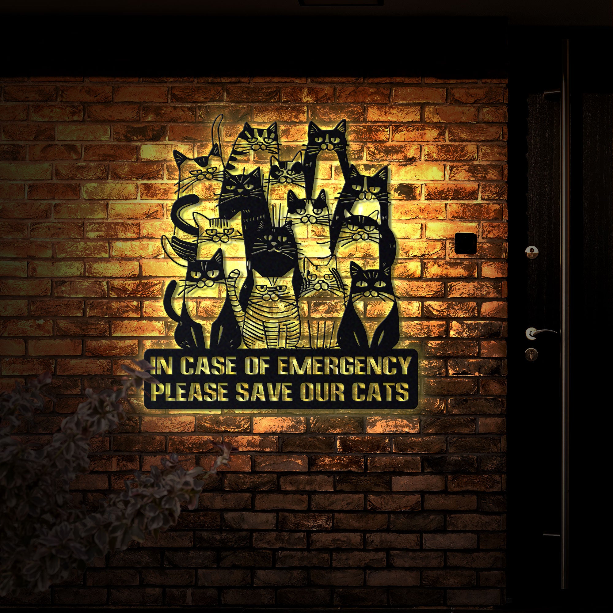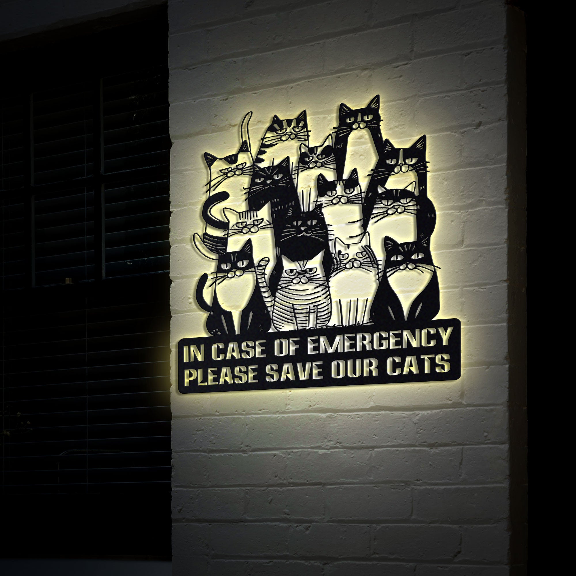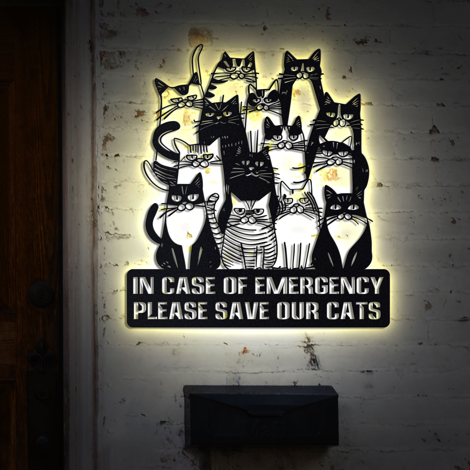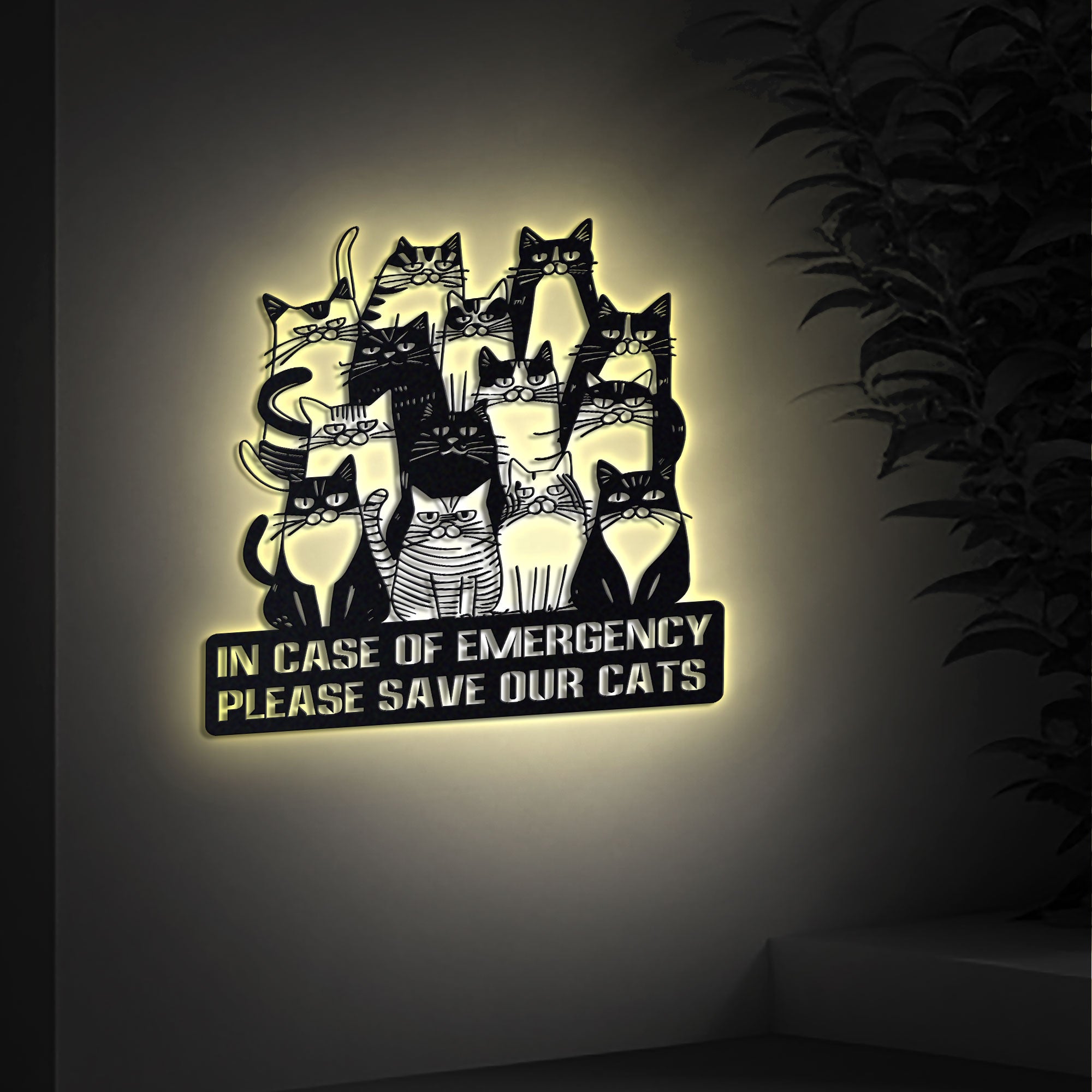 Cat Lover Metal Wall Art, Cat Emergency Sign with LED Lights, Please Save Our Cats