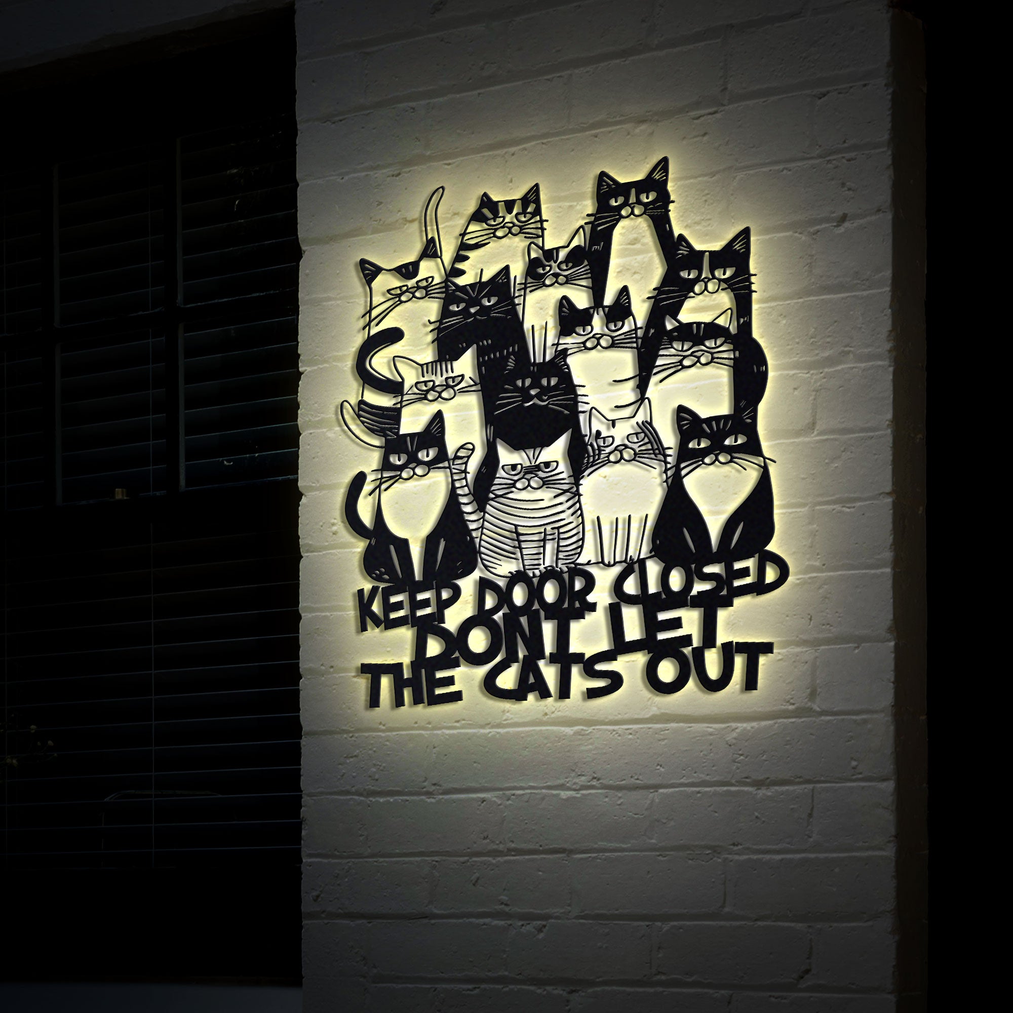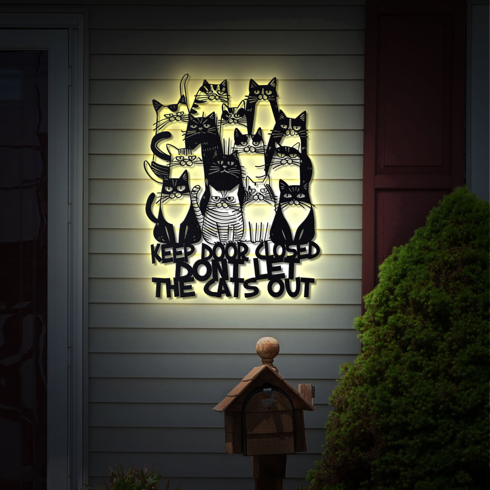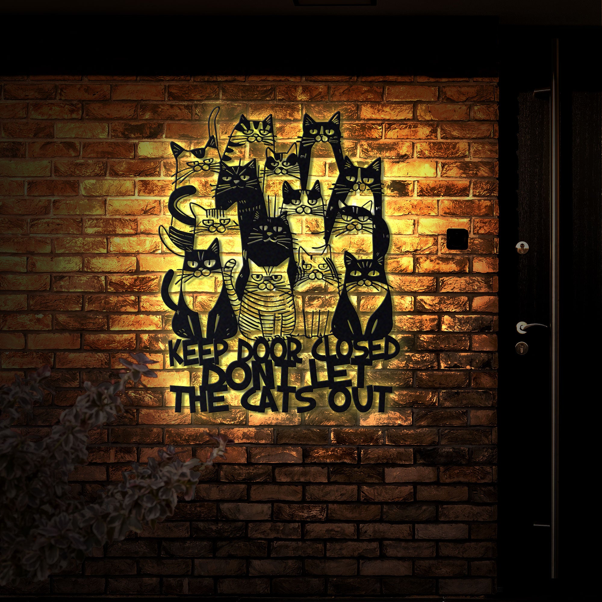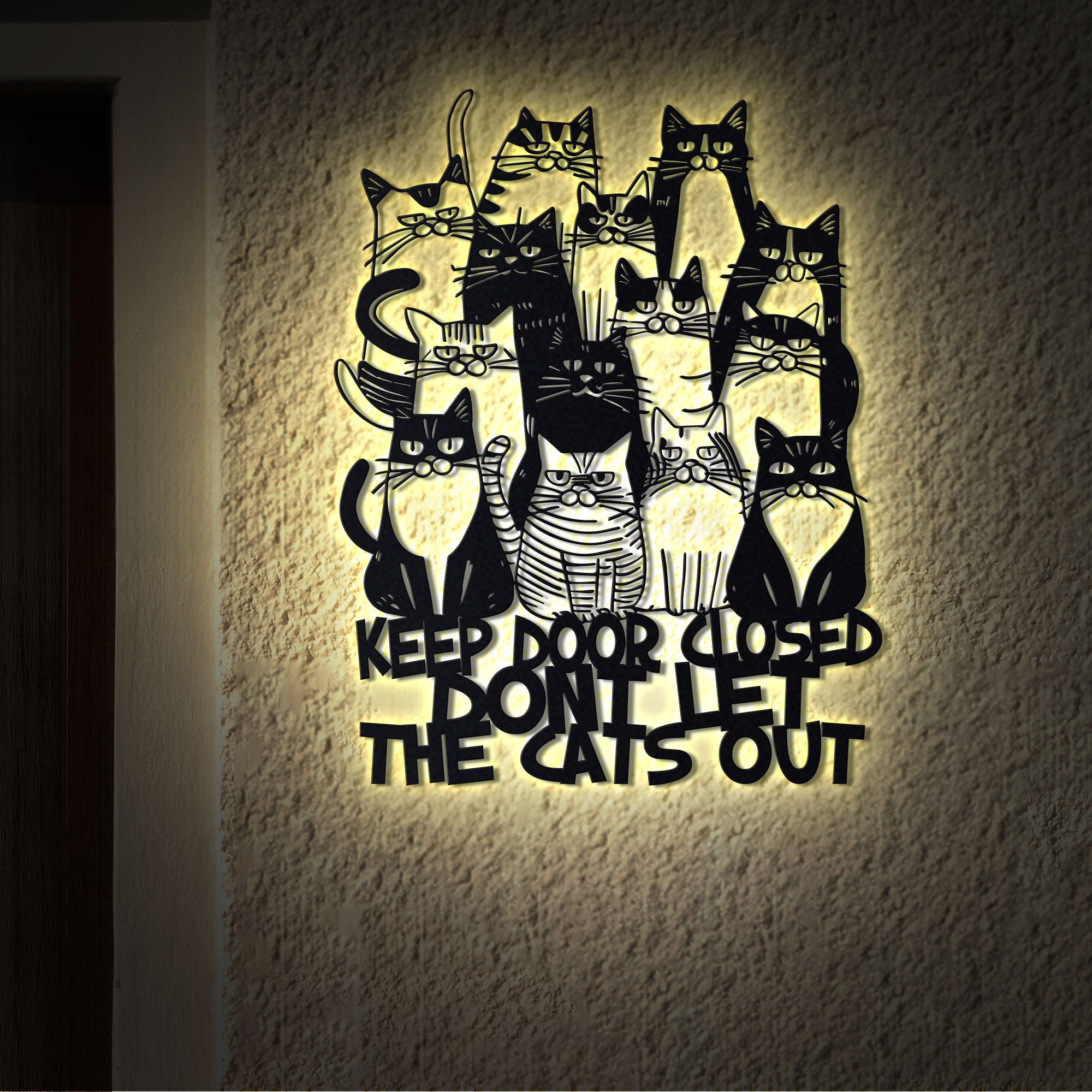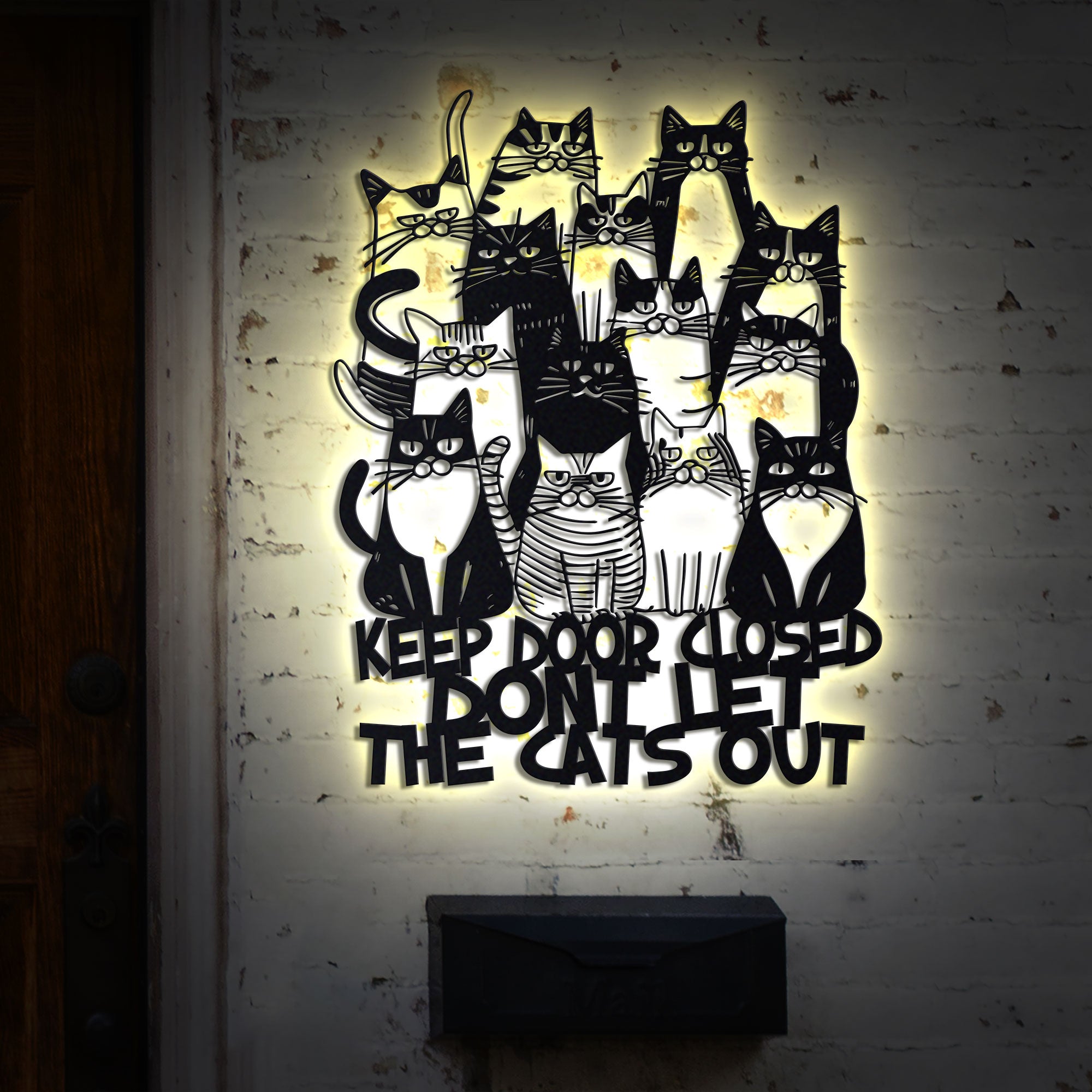 Cat Lover Metal Wall Art, Cat Welcome Sign with LED Lights, Dont Let The Cat Out