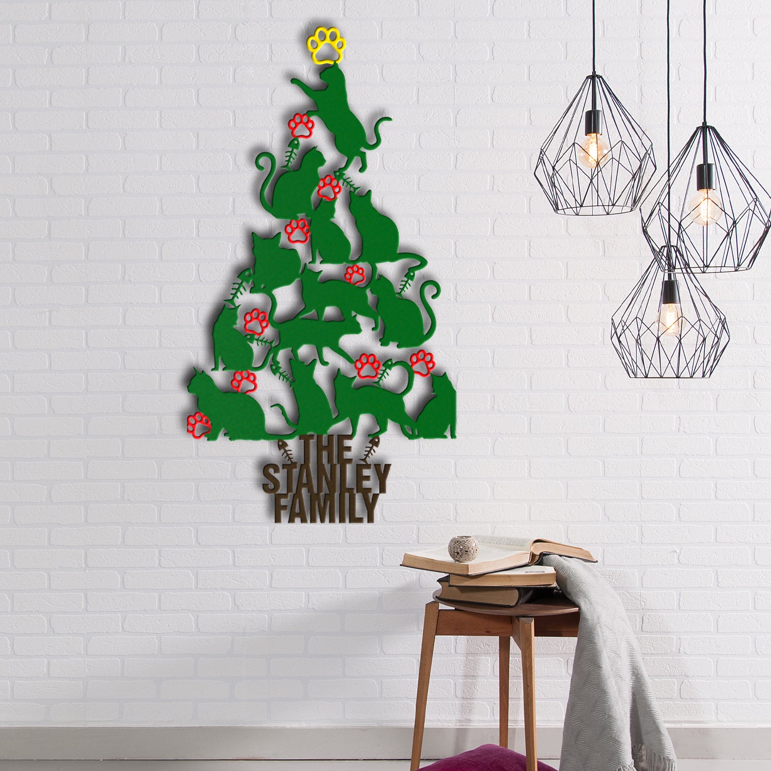 Cat Lovers Metal Sign Cats Christmas Tree Shape With Family Name Personalized