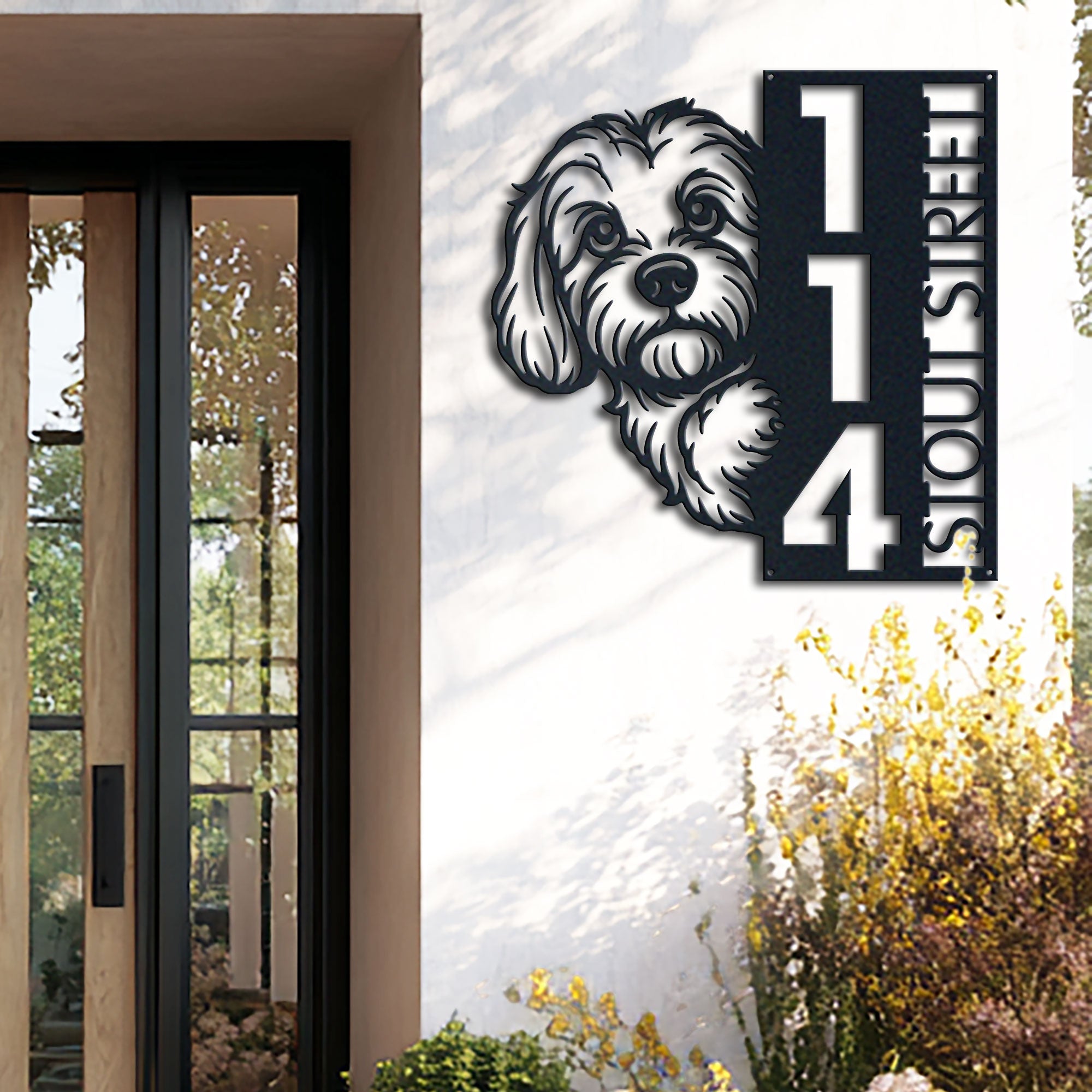 Cavapoo. Address Sign | Custom Metal Vertical House Number Plaque | Pet Owner Gift