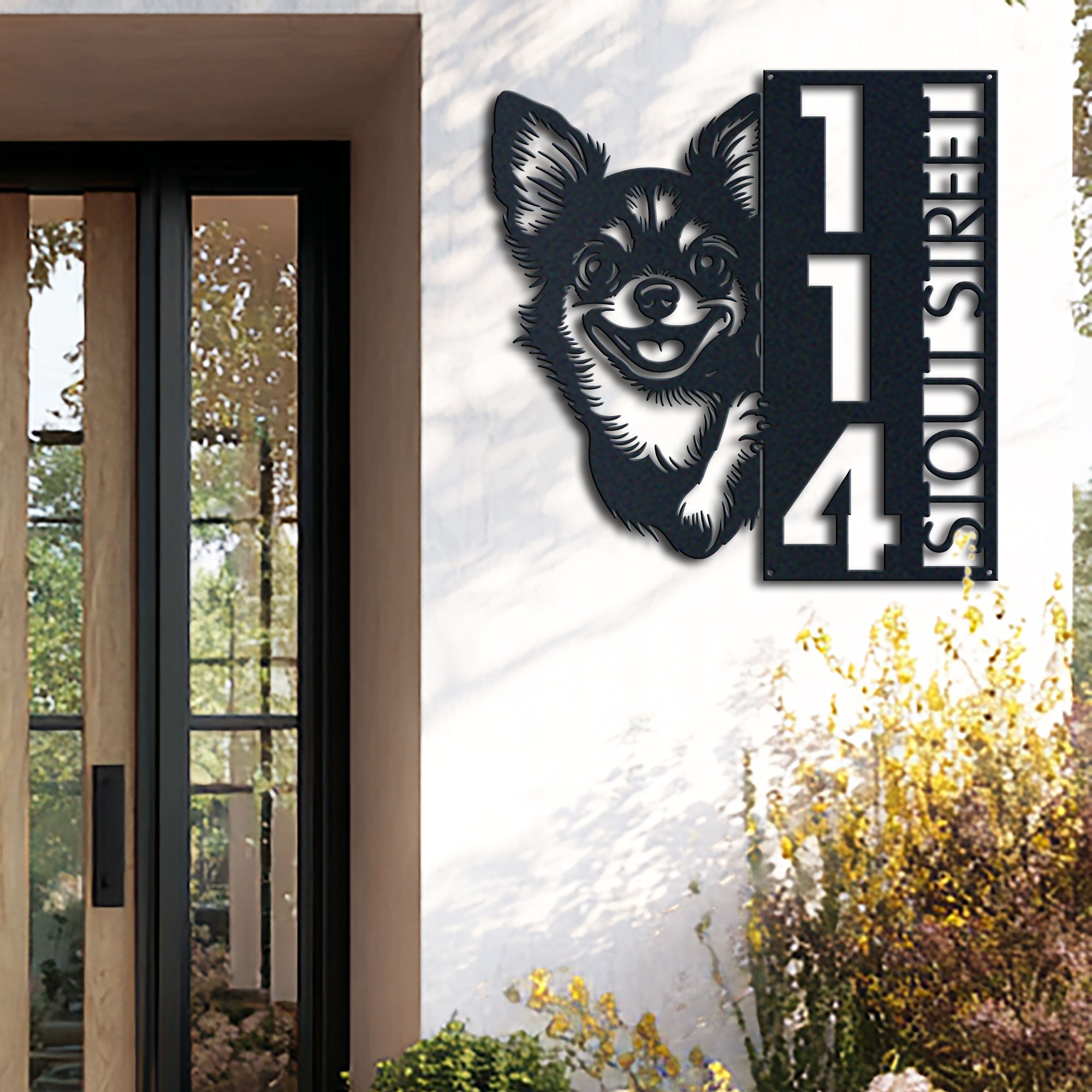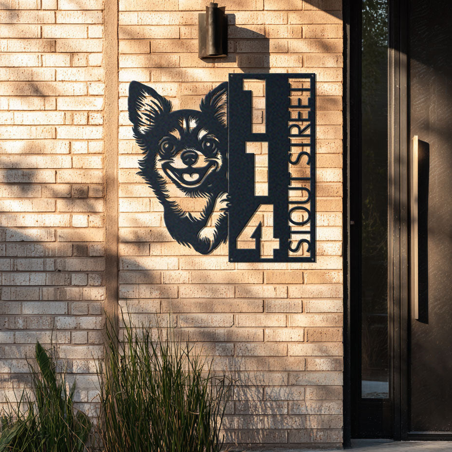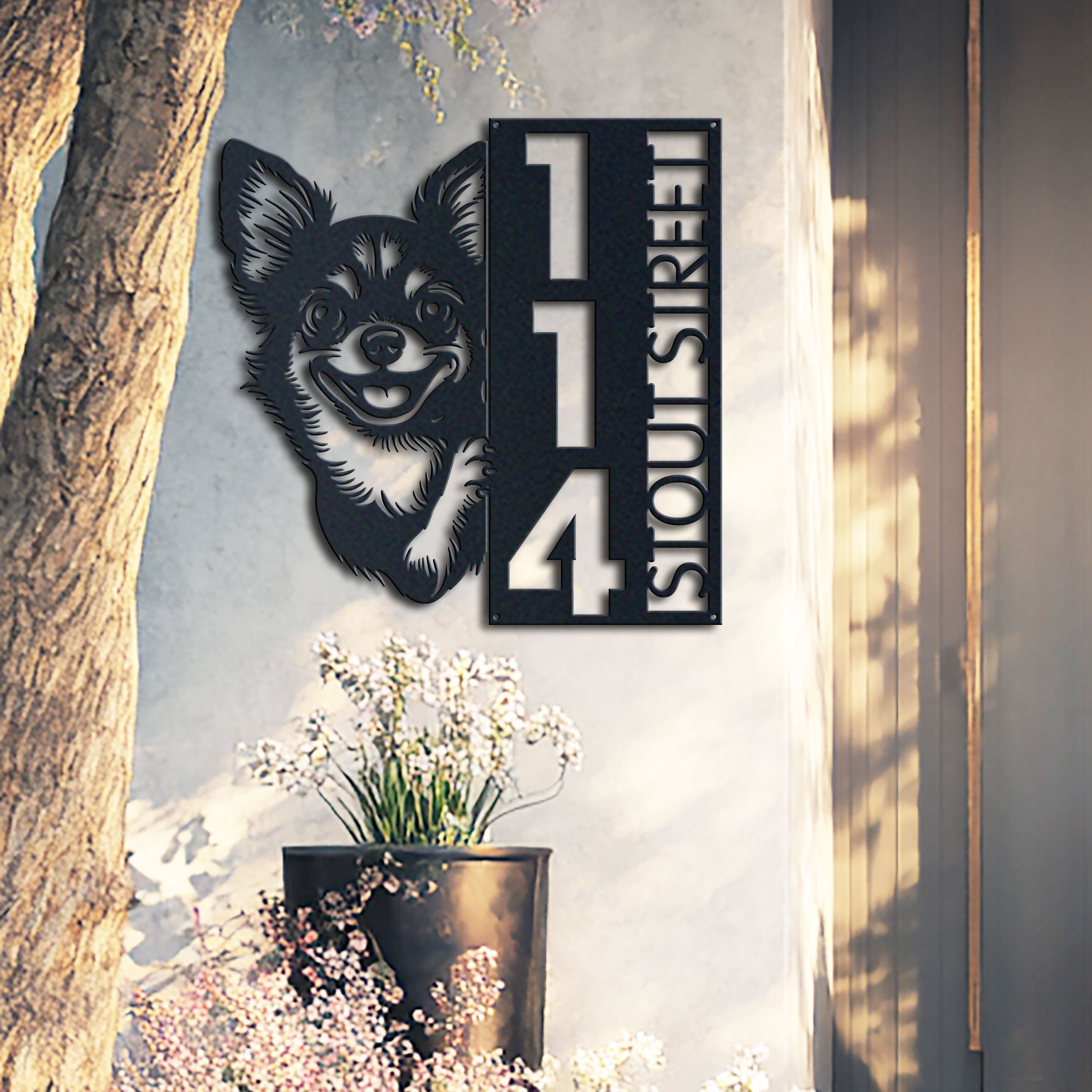 Chihuahua Address Sign | Custom Metal Vertical House Number Plaque | Pet Owner Gift 2