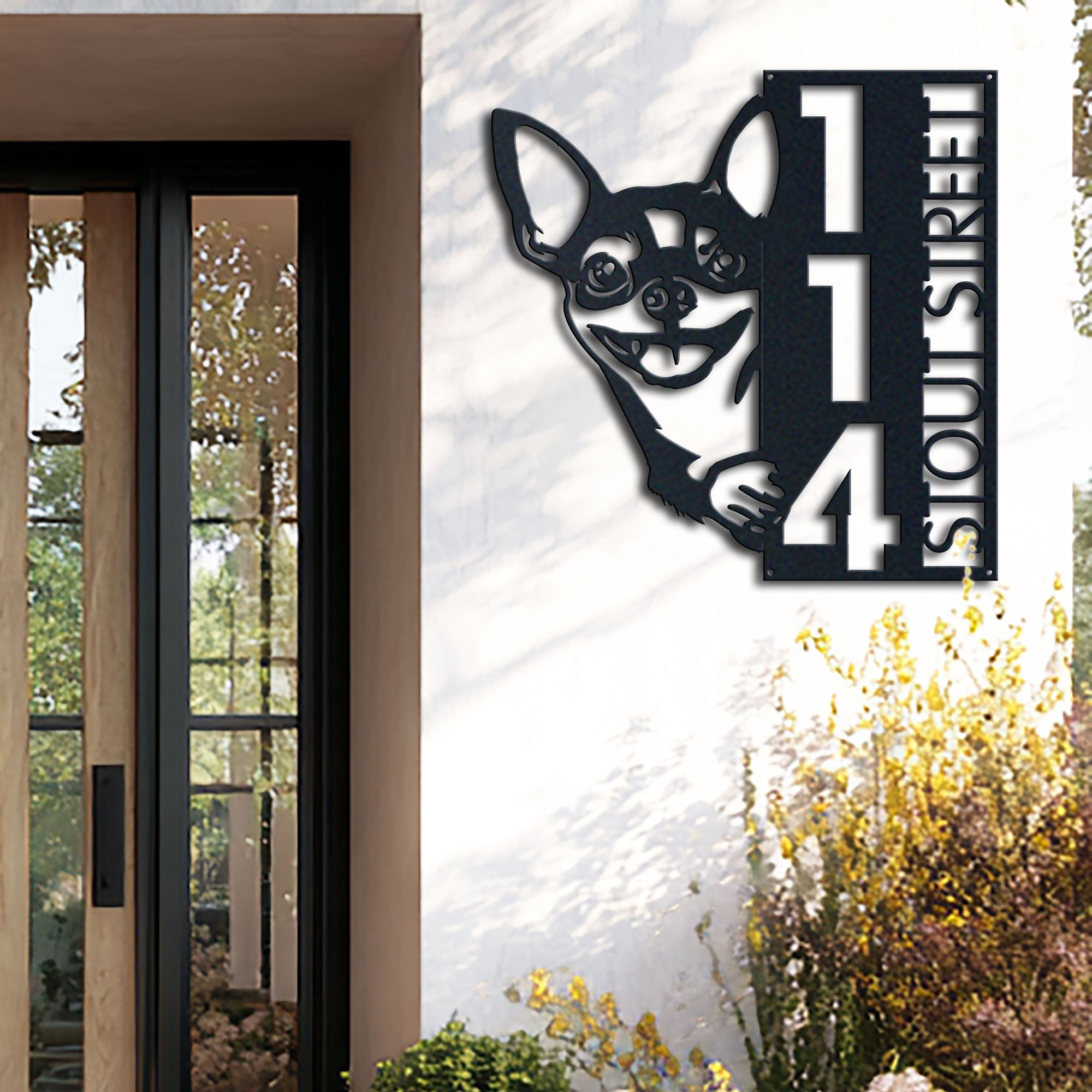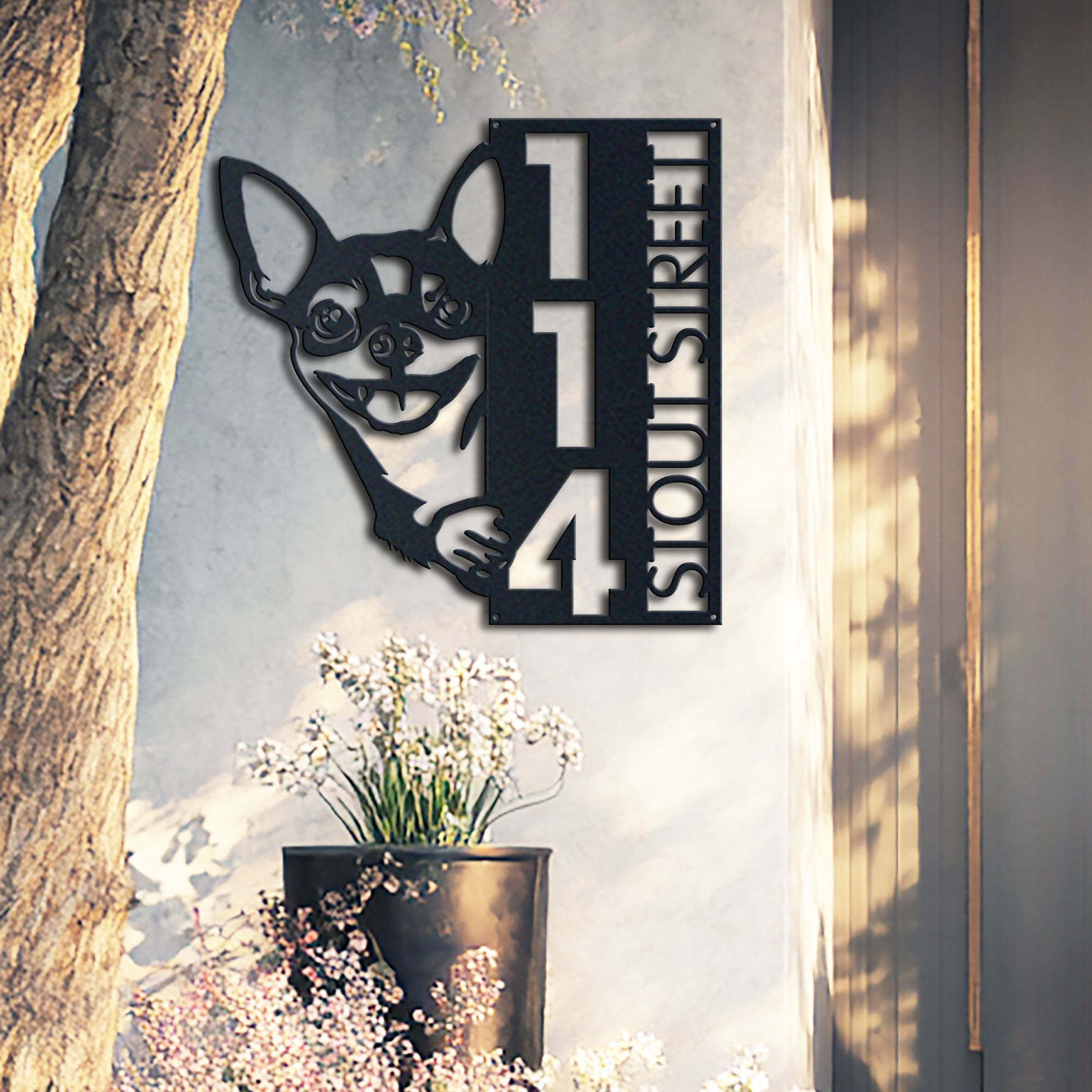 Chihuahua Address Sign | Custom Metal Vertical House Number Plaque | Pet Owner Gift
