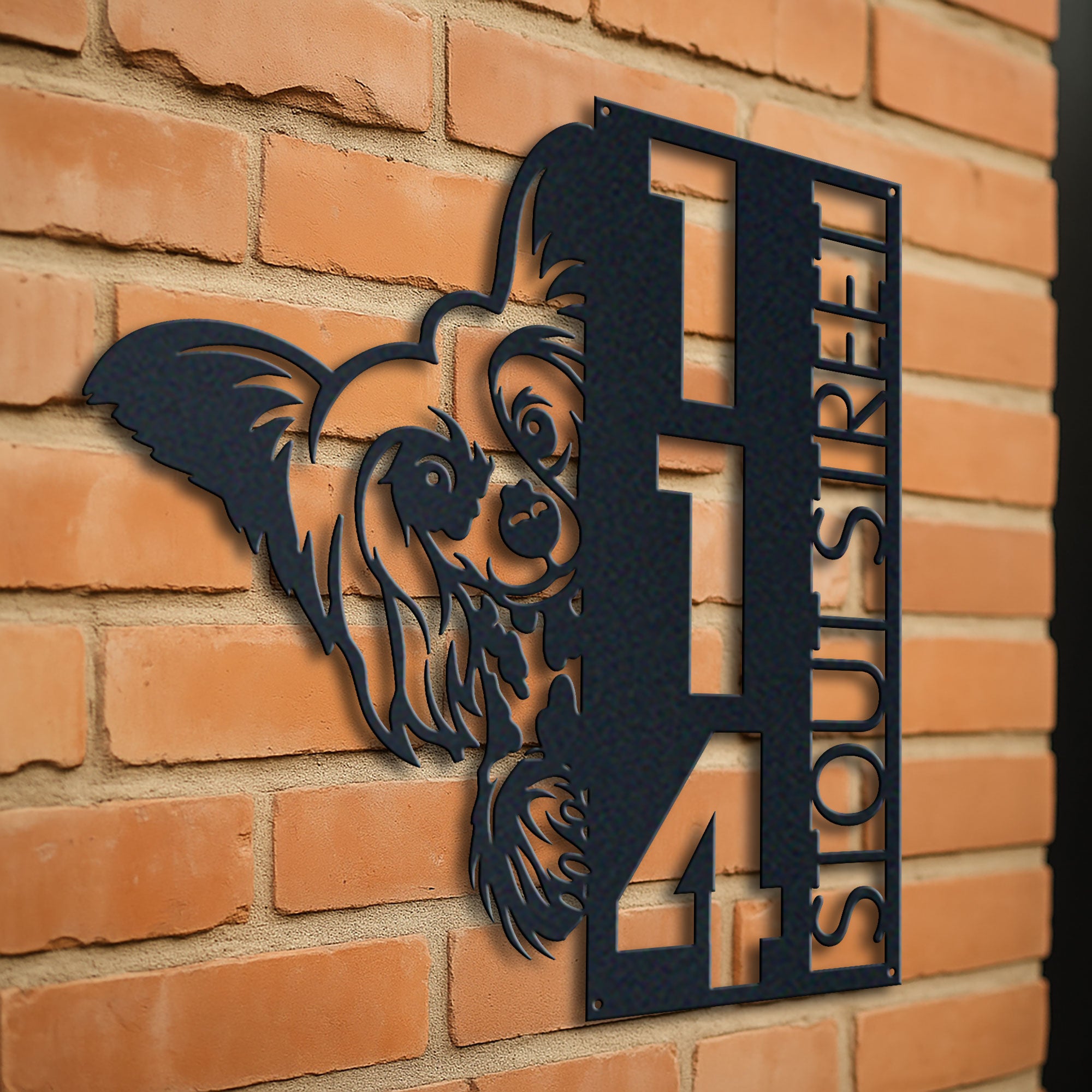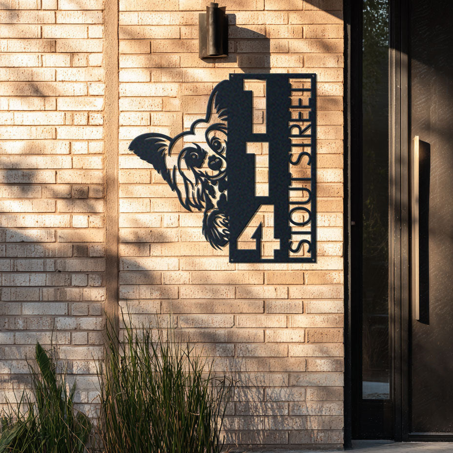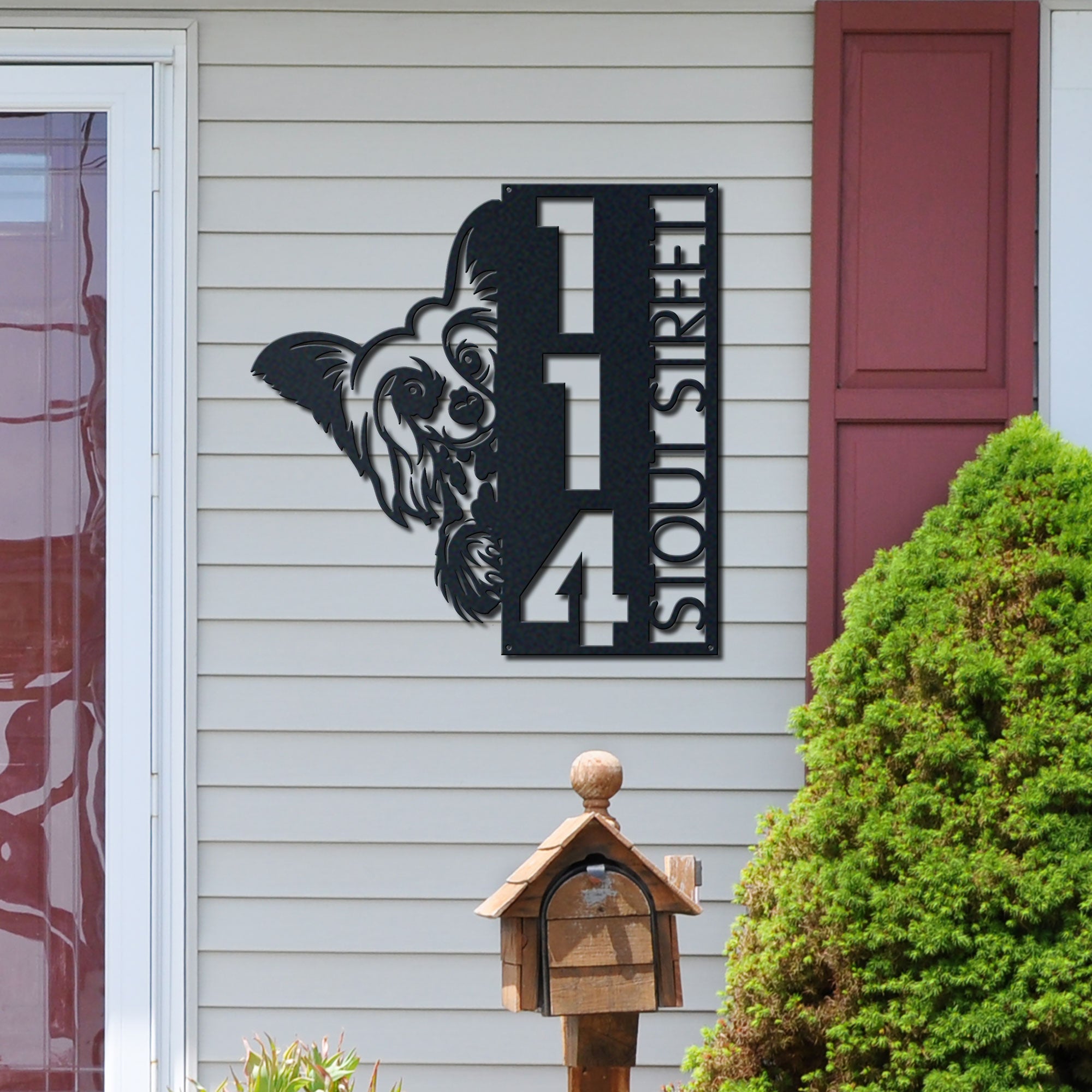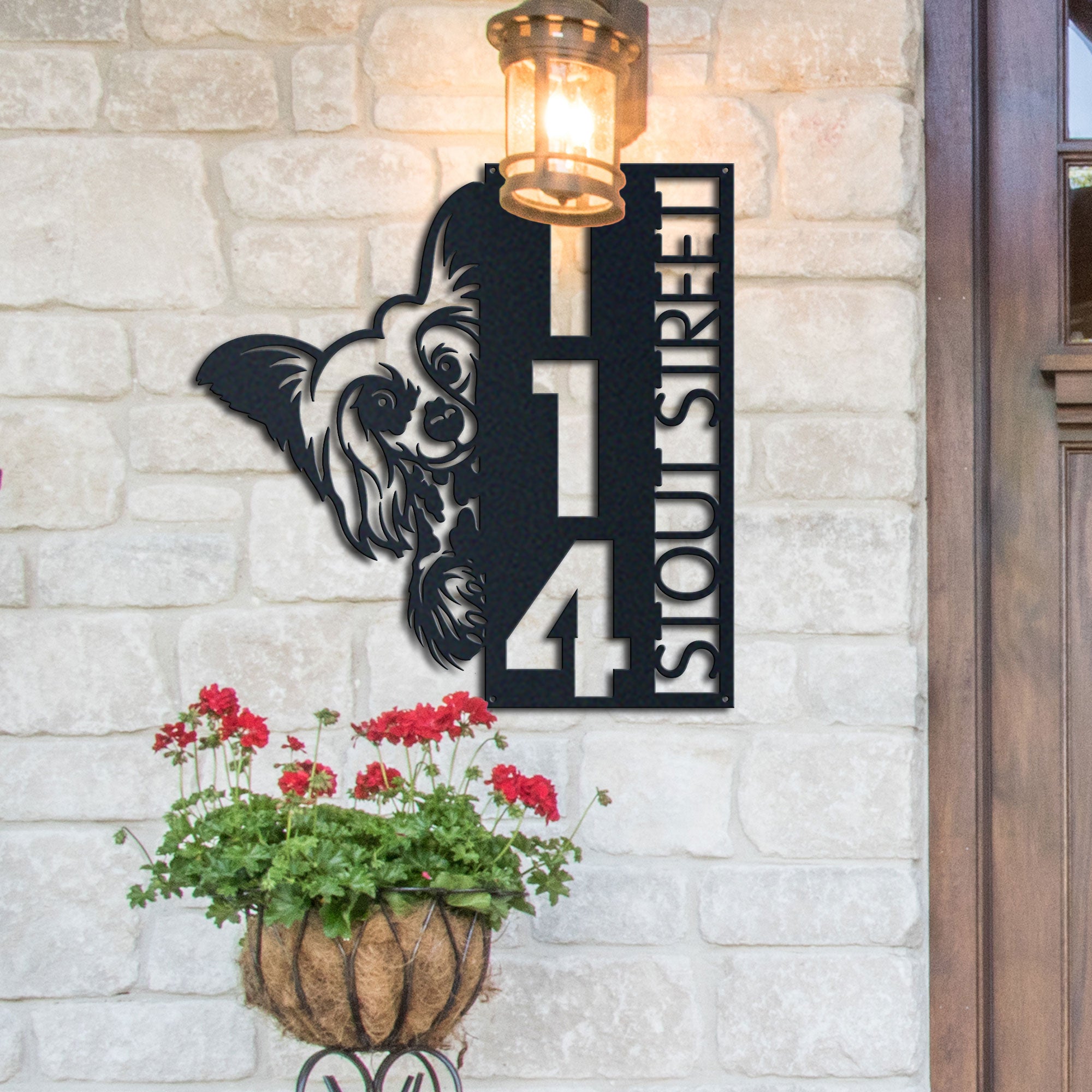 Chinese Crested Dog Address Sign | Custom Metal Vertical House Number Plaque | Pet Owner Gift