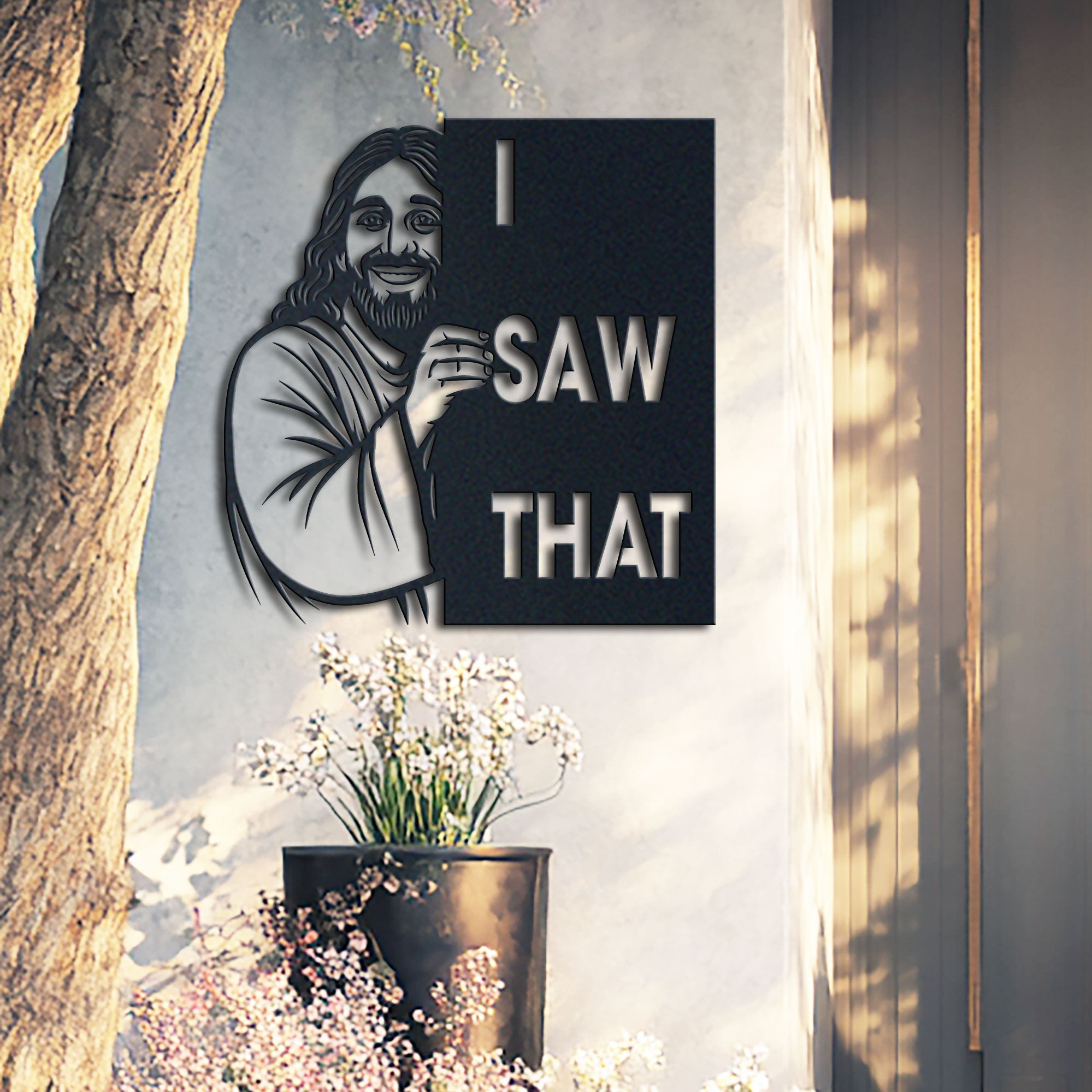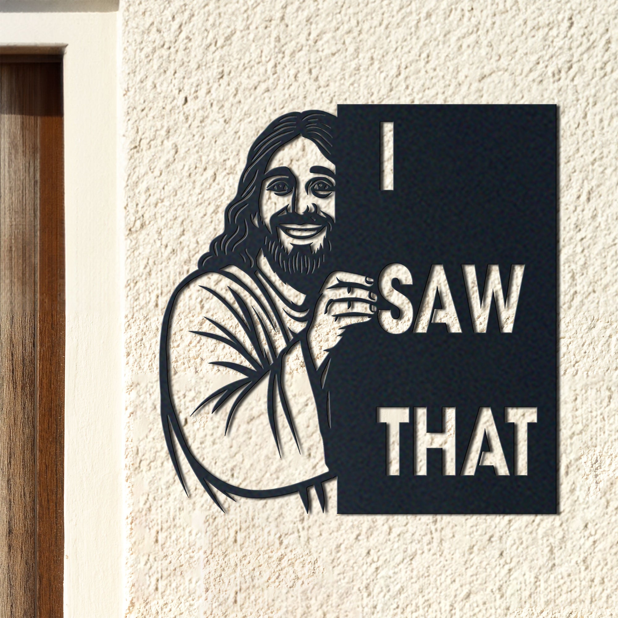 This “I Saw That” Jesus Metal Sign adds a funny, light-hearted touch to any Christian home. Featuring a friendly illustration of Jesus peeking from behind the sign, it’s the perfect decor piece for those who love mixing faith, positivity, and a good laugh.