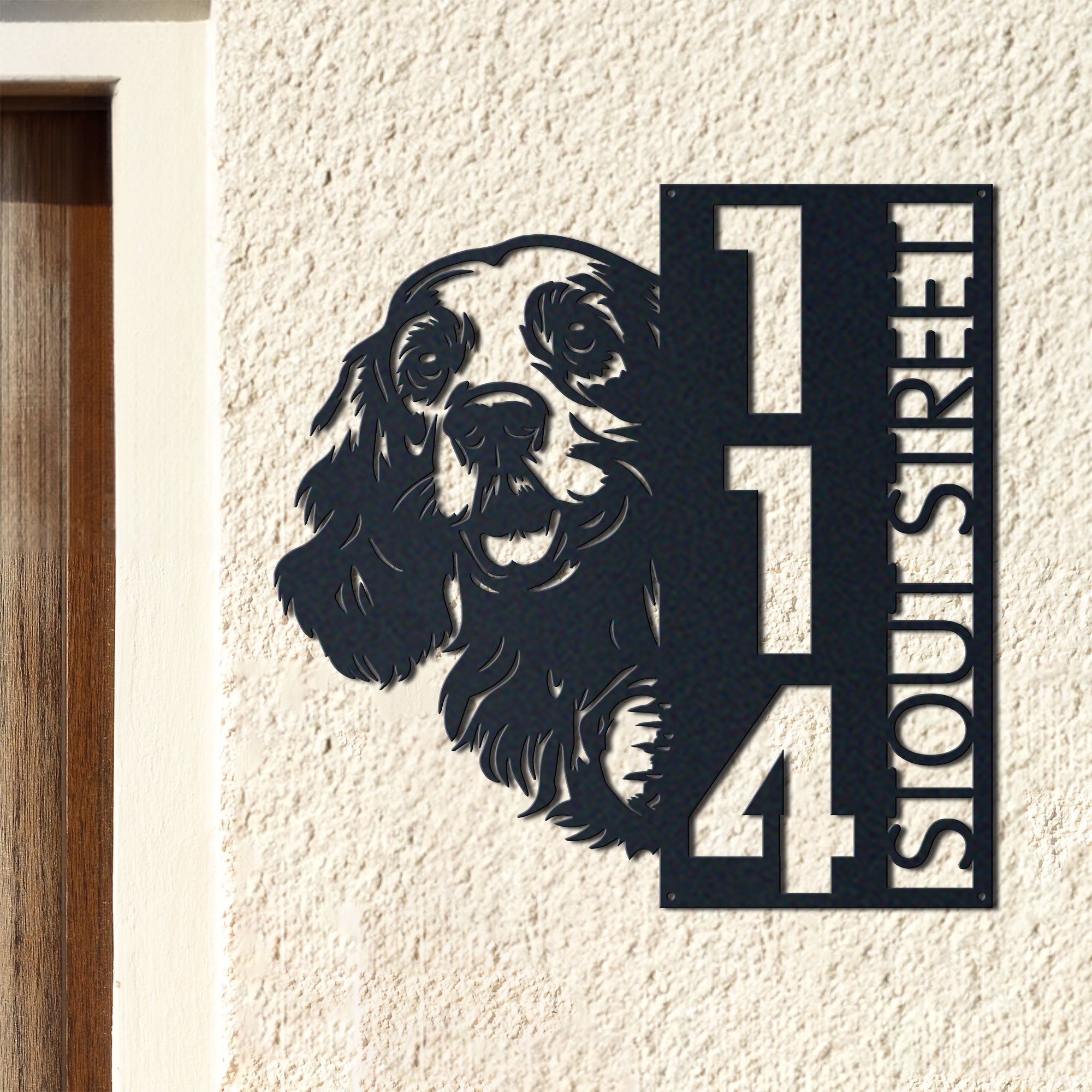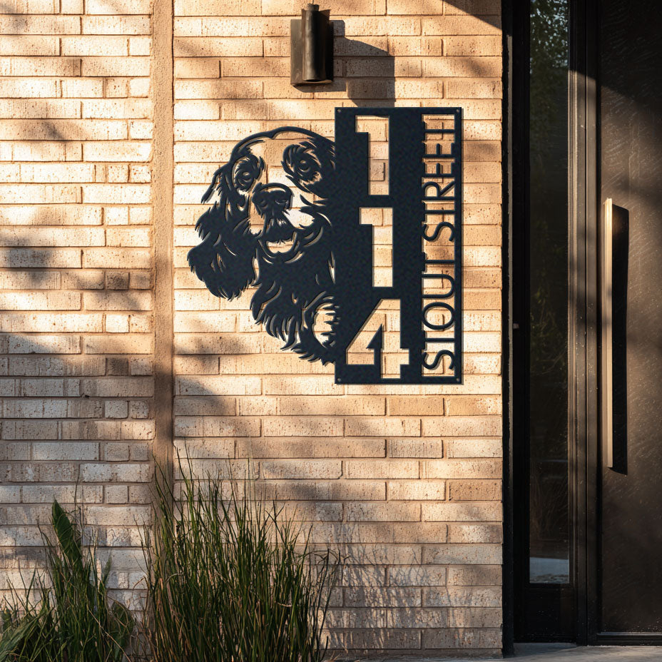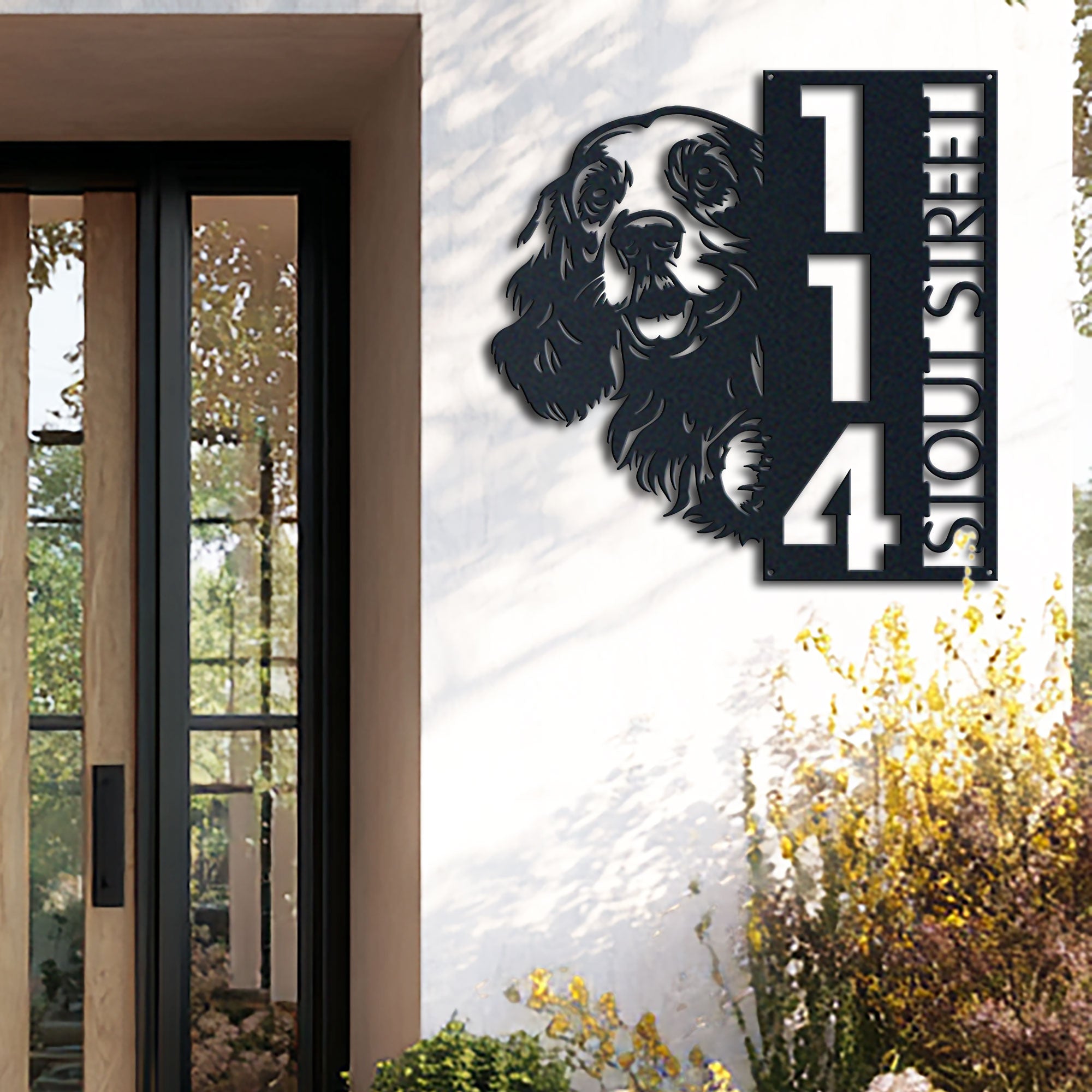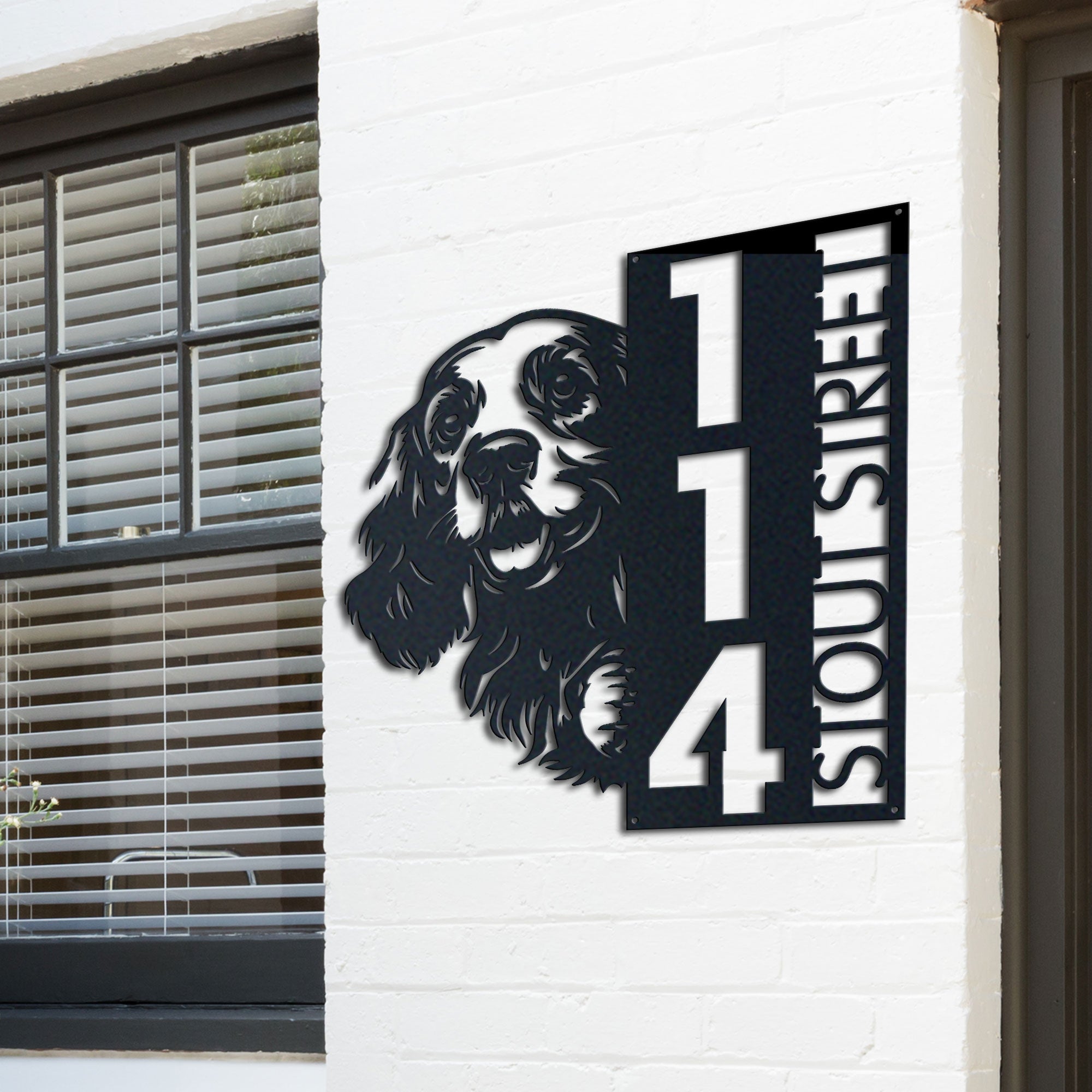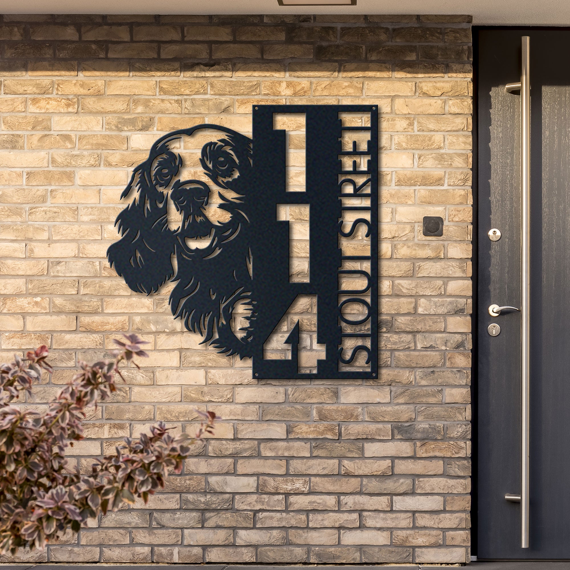Cocker Spaniel Address Sign | Custom Metal Vertical House Number Plaque | Pet Owner Gift