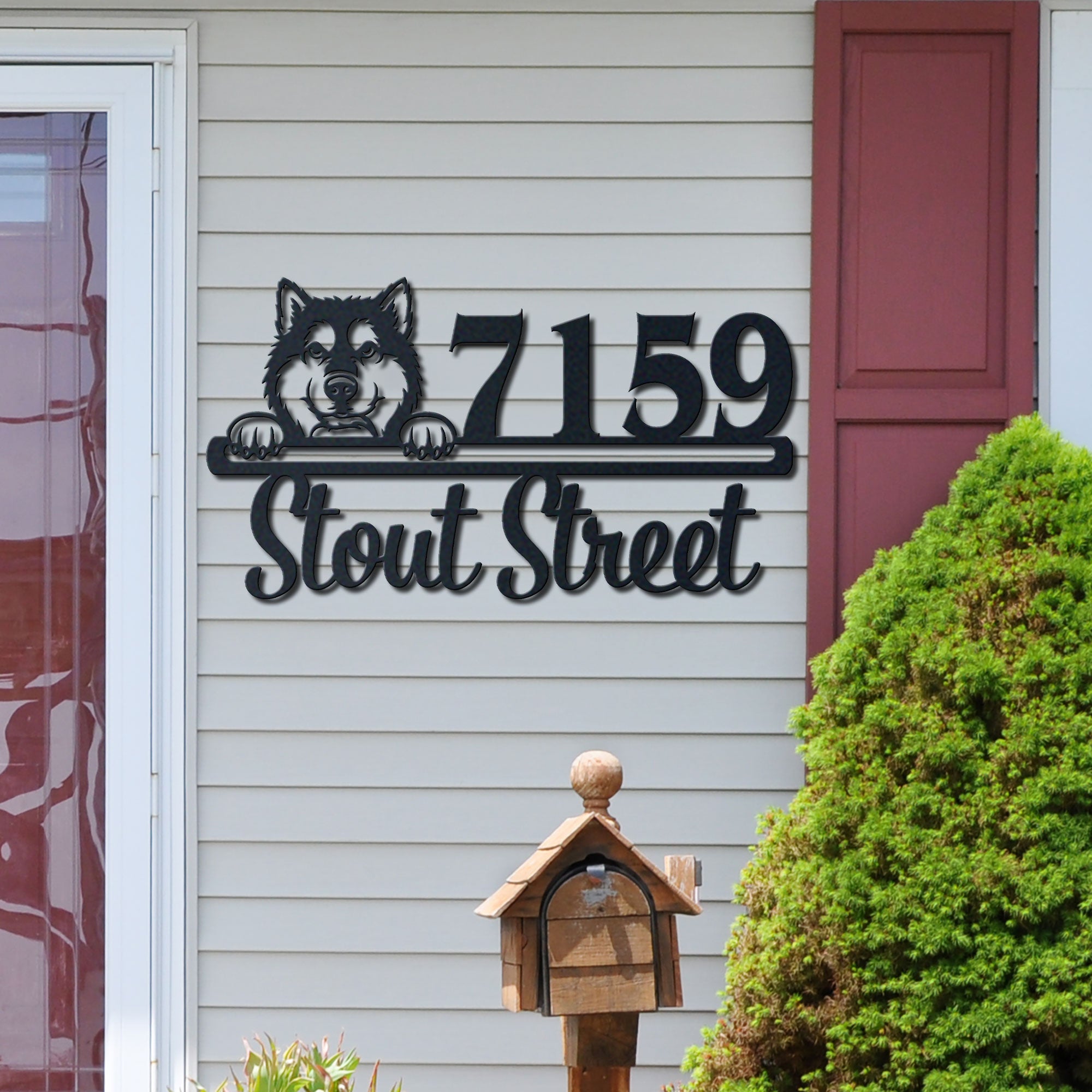 Our metal address sign is not just an address marker but a statement piece that showcases your love for furry friends. Whether you're looking to buy it for yourself or as a thoughtful gift for a dog-loving friend, its charming design will surely delight you. Easy to install, it comes with pre-drilled holes, making mounting it on your front door, gate, or mailbox an absolute breeze.