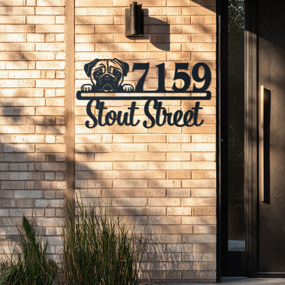 Our metal address sign is not just an address marker but a statement piece that showcases your love for furry friends. Whether you're looking to buy it for yourself or as a thoughtful gift for a dog-loving friend, its charming design will surely delight you. Easy to install, it comes with pre-drilled holes, making mounting it on your front door, gate, or mailbox an absolute breeze.