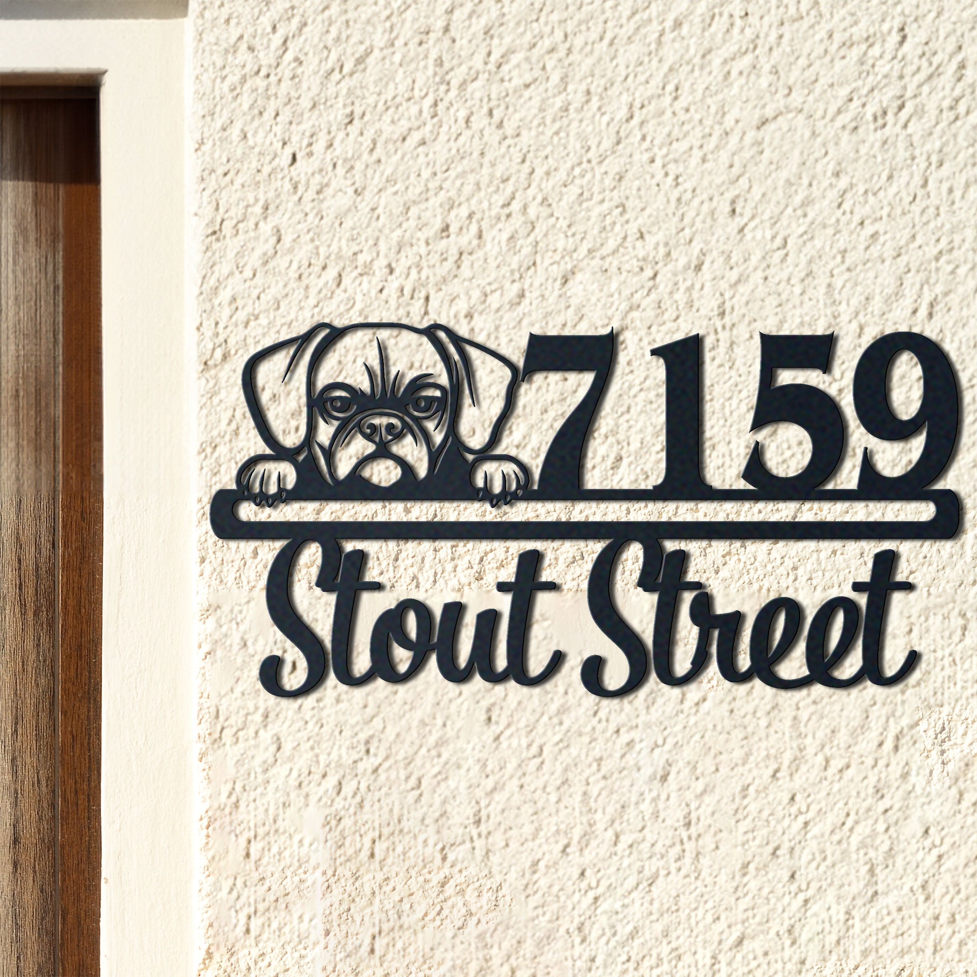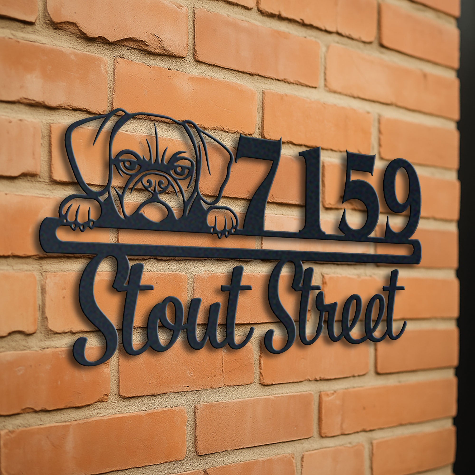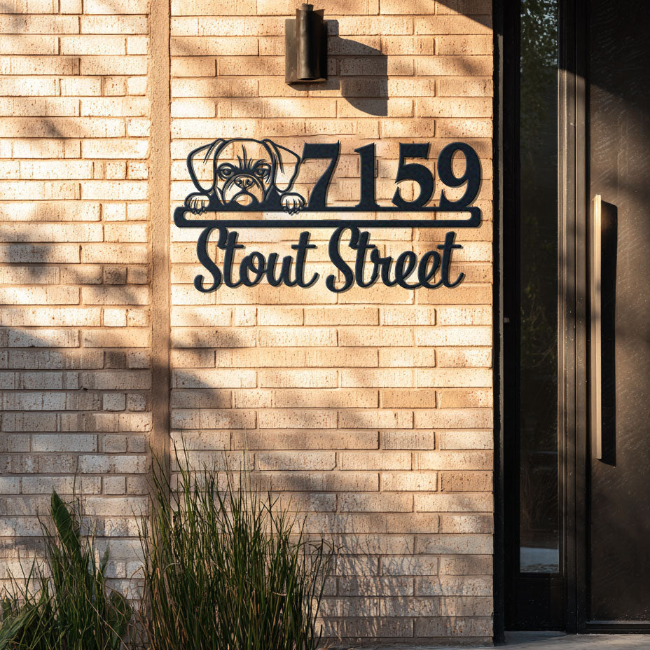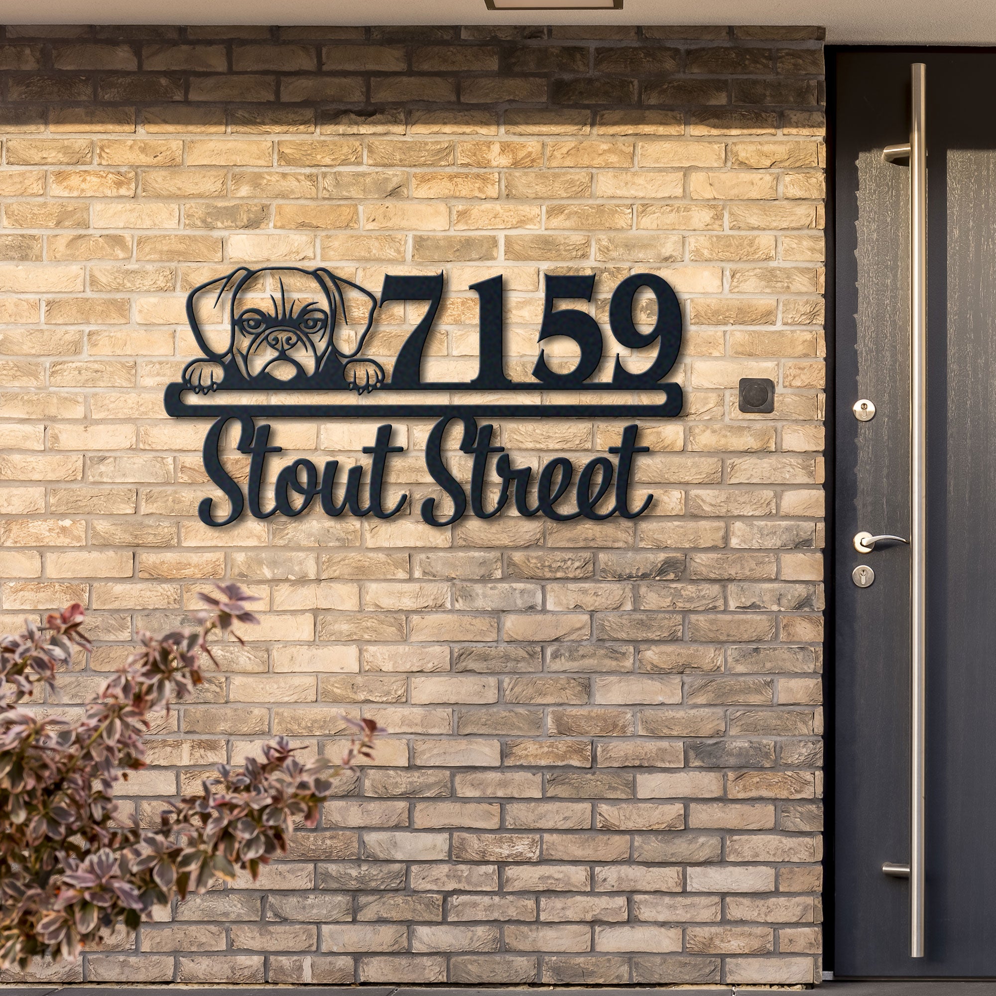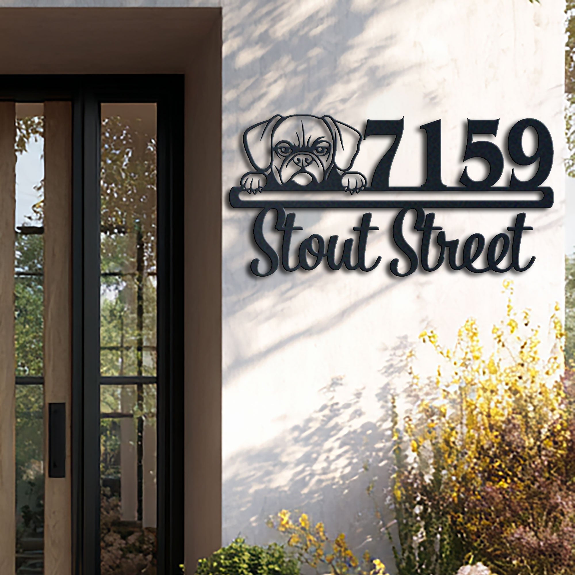 Puggle Address Sign | Personalized Metal House Number Plaque | Dog Lover Gift | Outdoor Decor