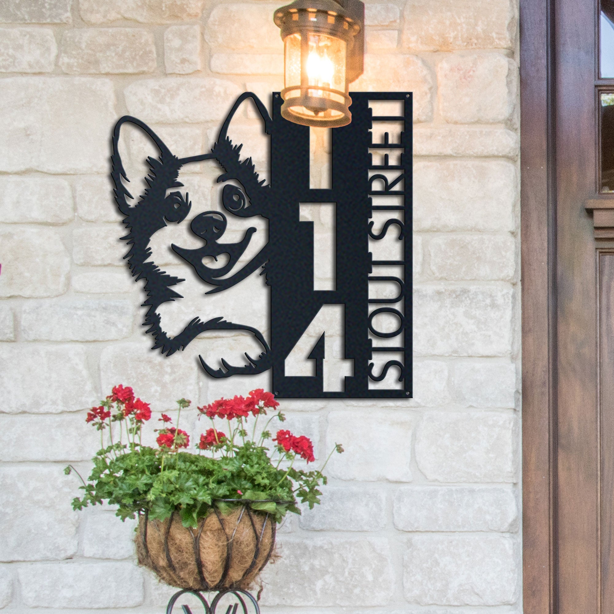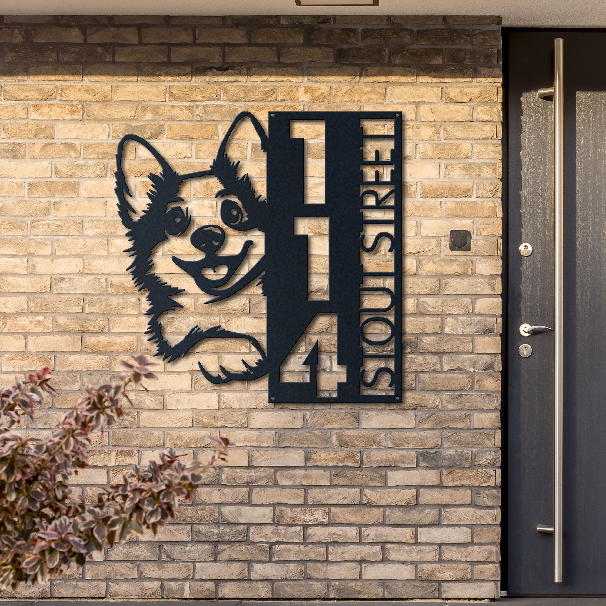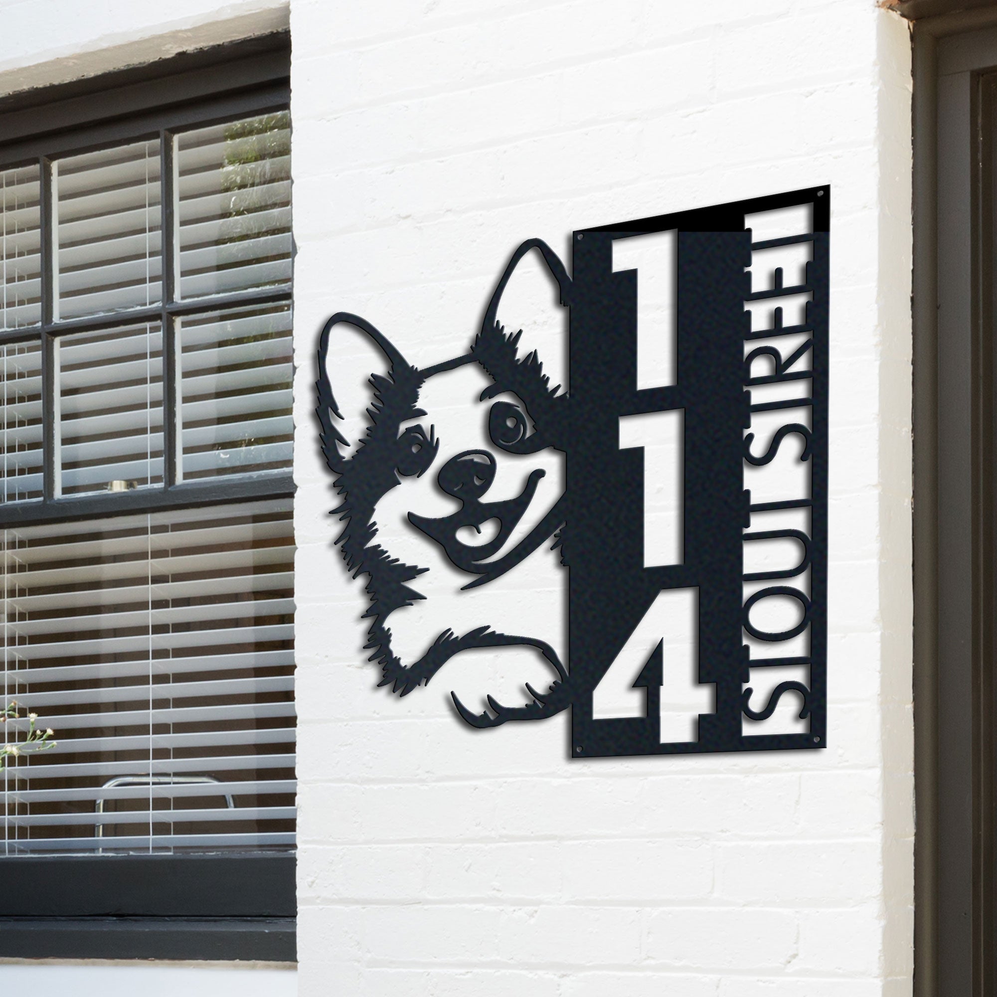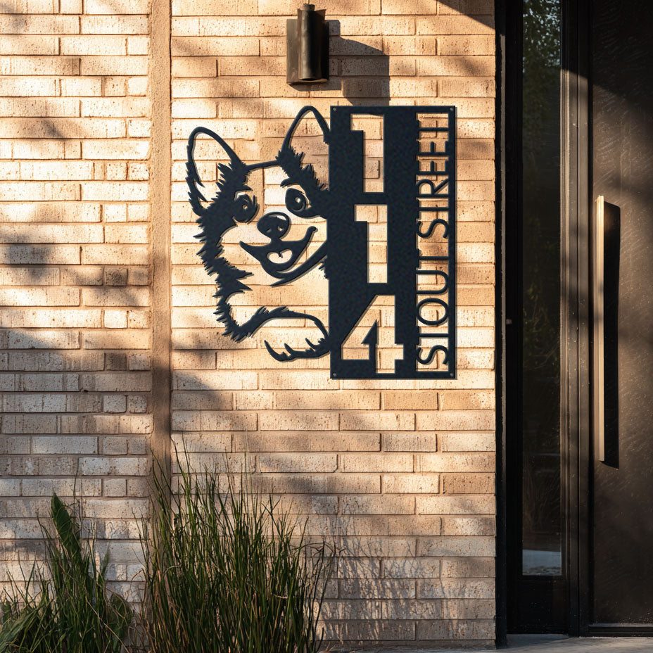 Corgi Address Sign | Custom Metal Vertical House Number Plaque | Pet Owner Gift