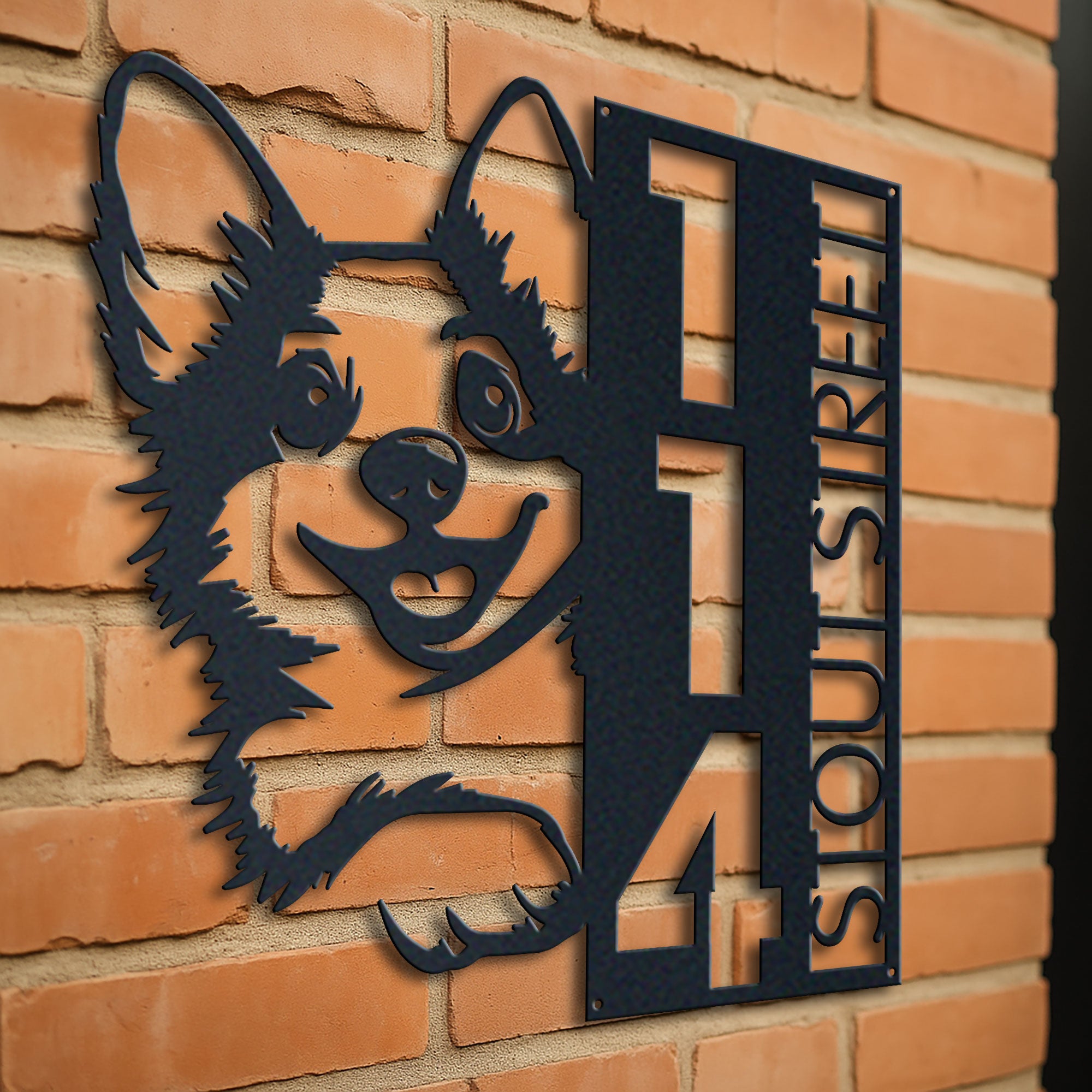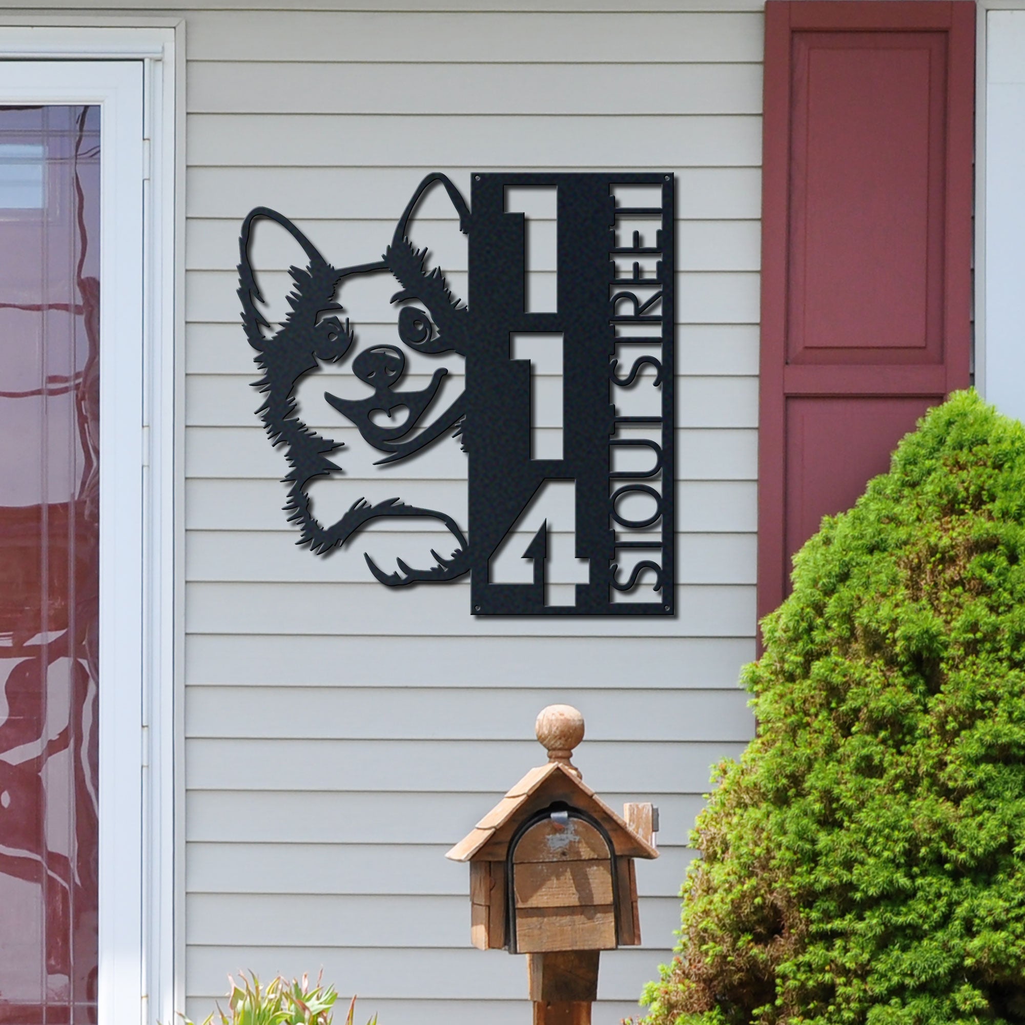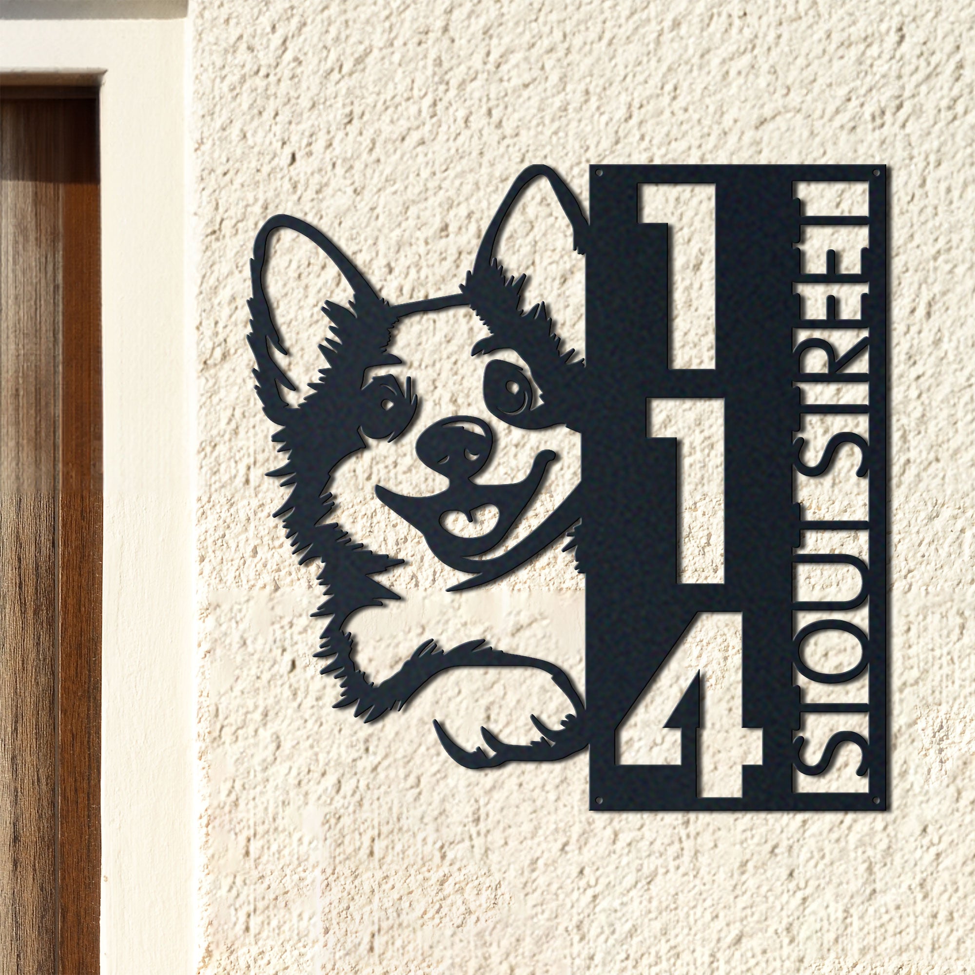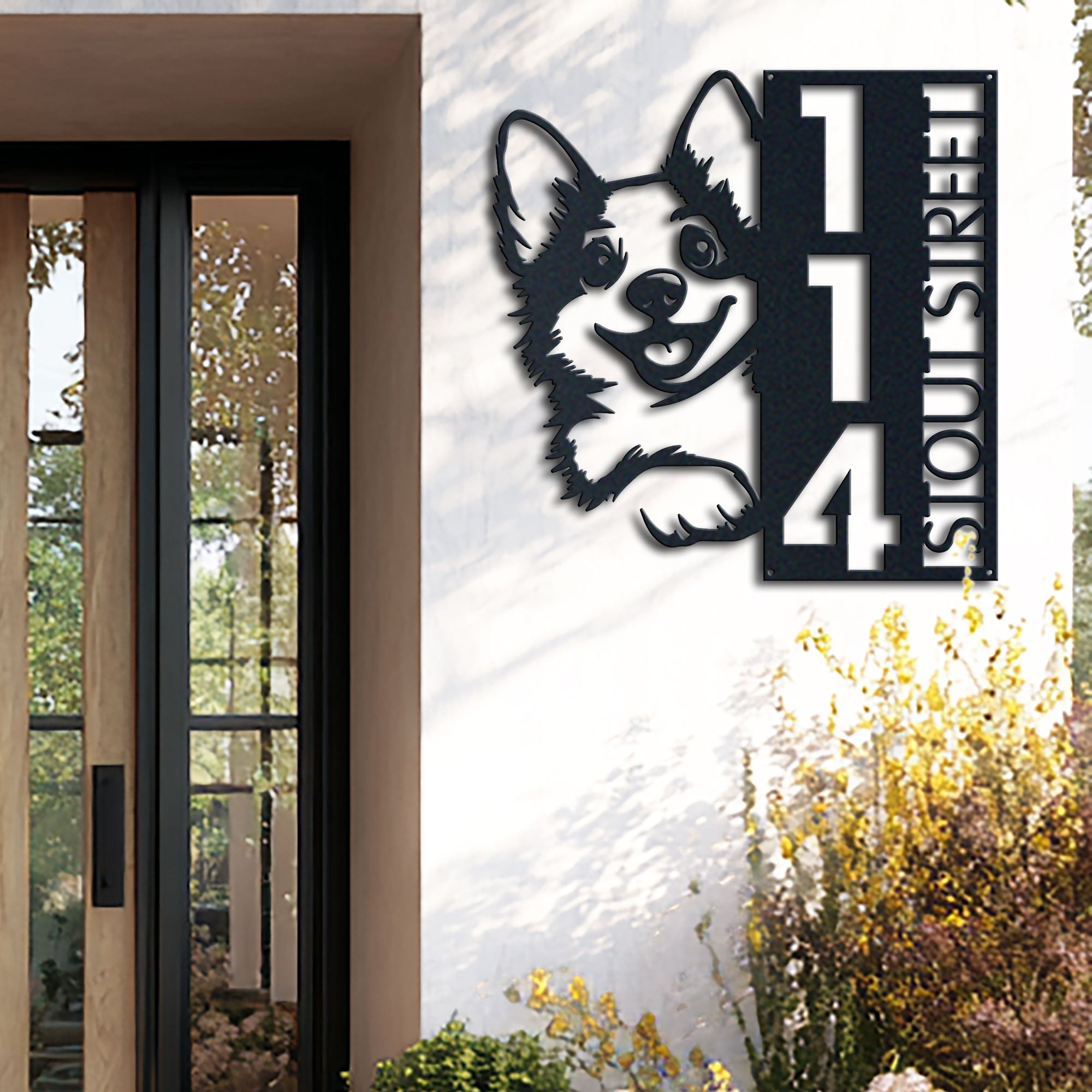 Corgi Address Sign | Custom Metal Vertical House Number Plaque | Pet Owner Gift