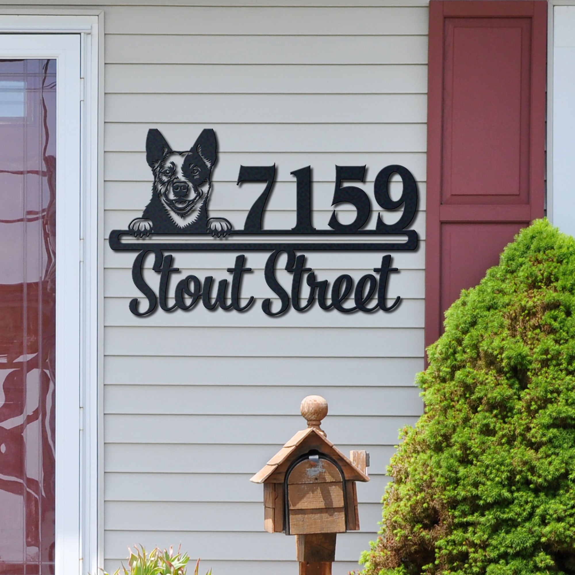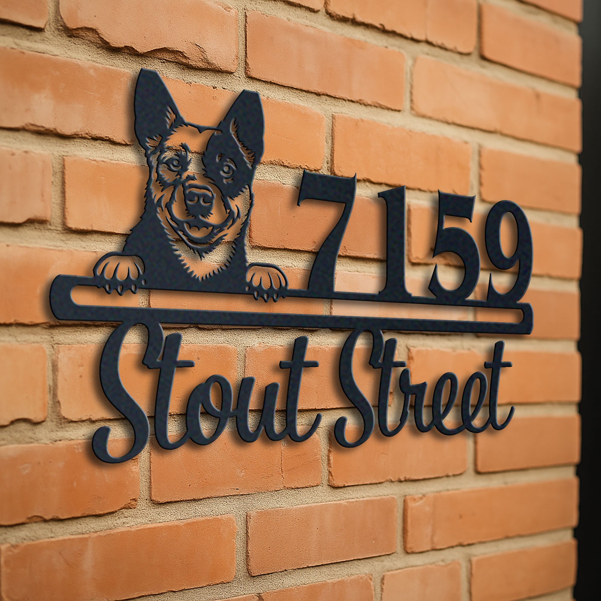 Australian Cattle Dog Address Sign | Personalized Metal House Number Plaque | Dog Lover Gift | Outdoor Decor