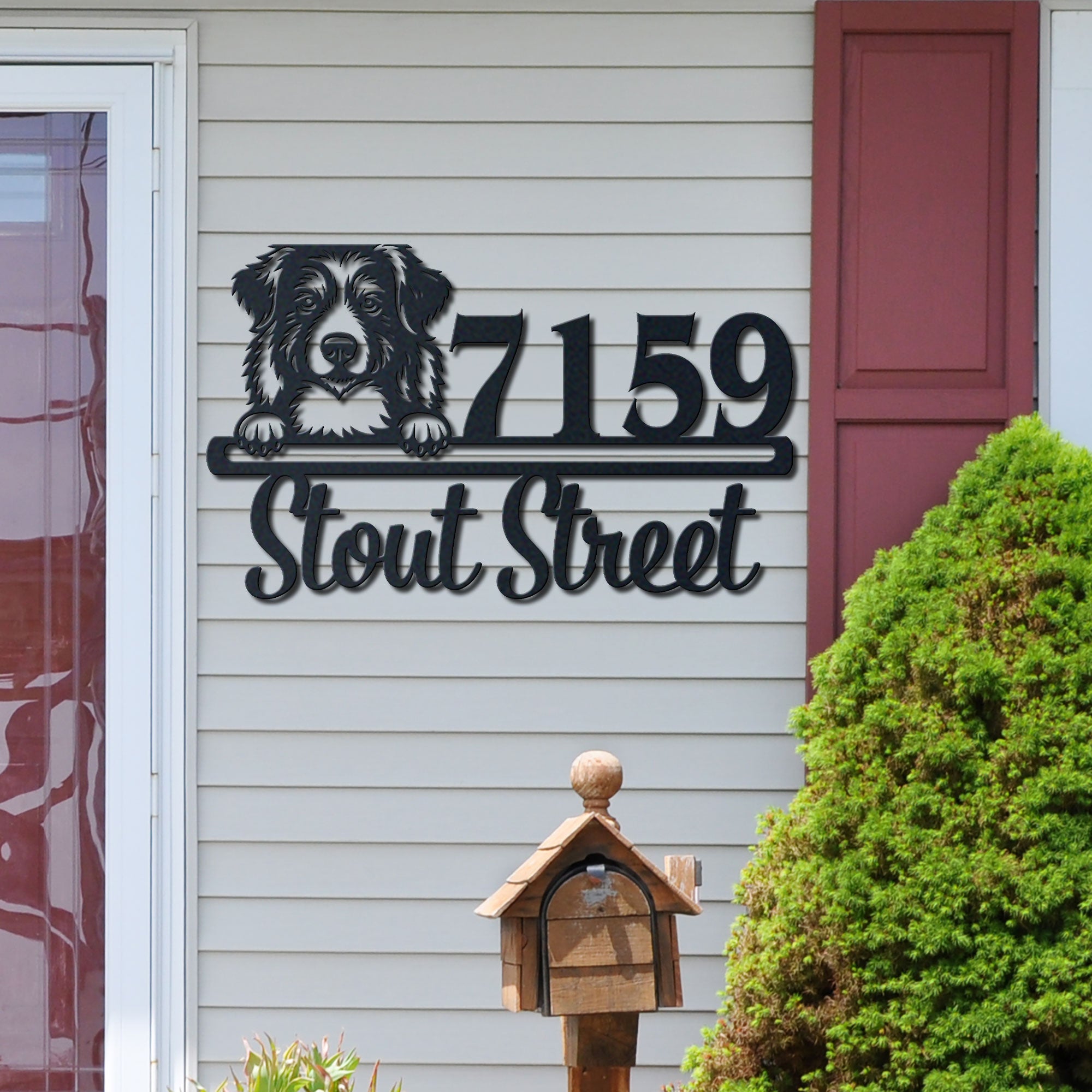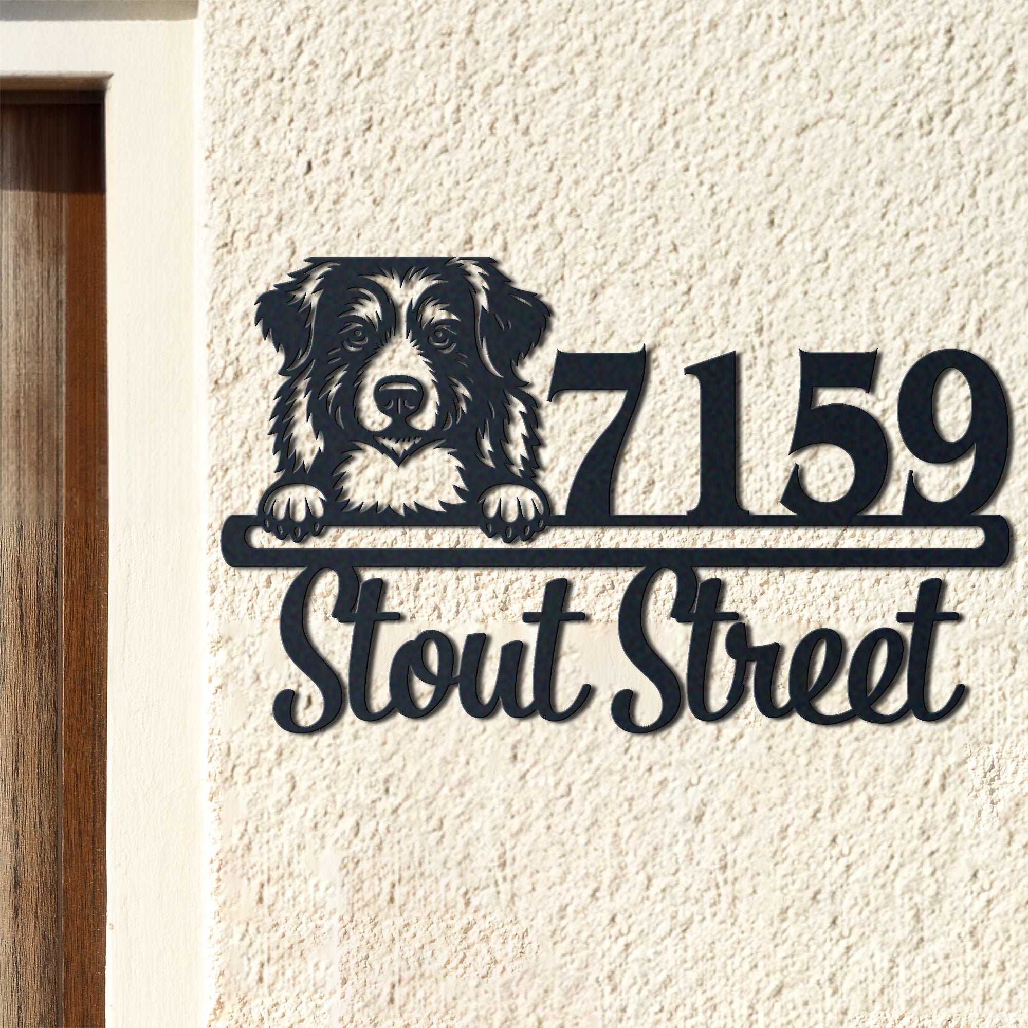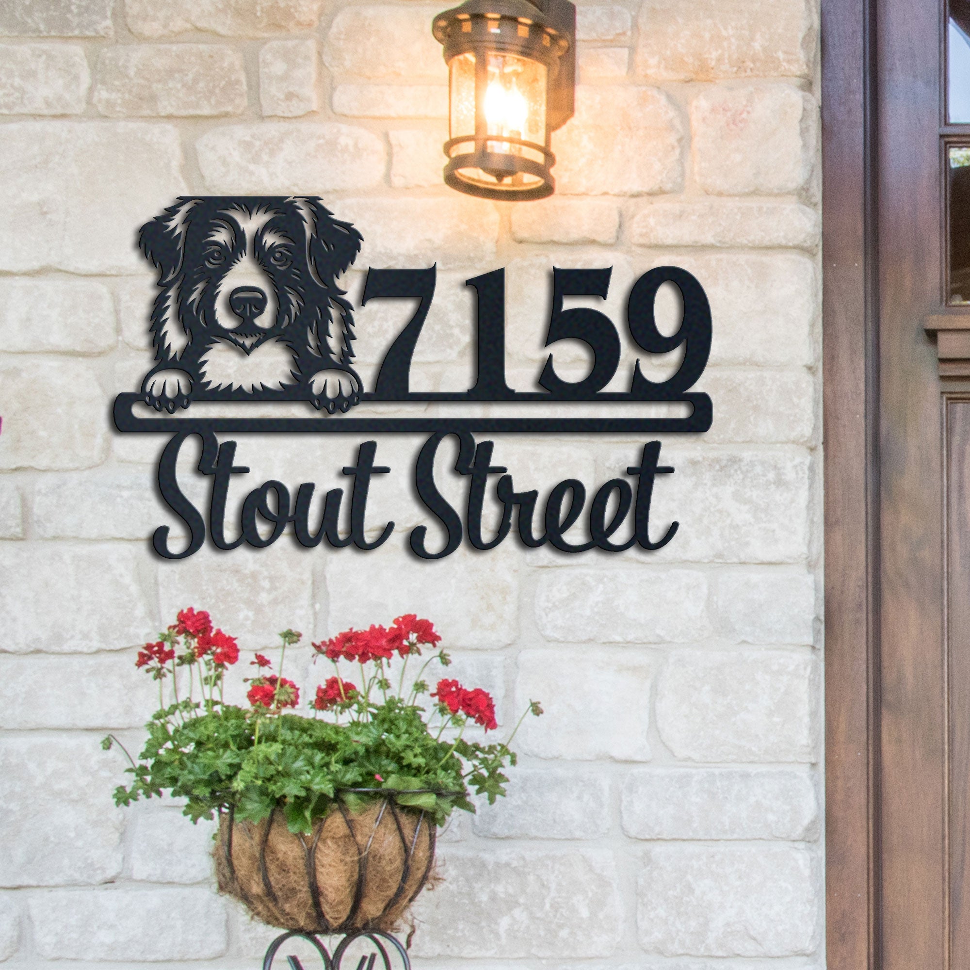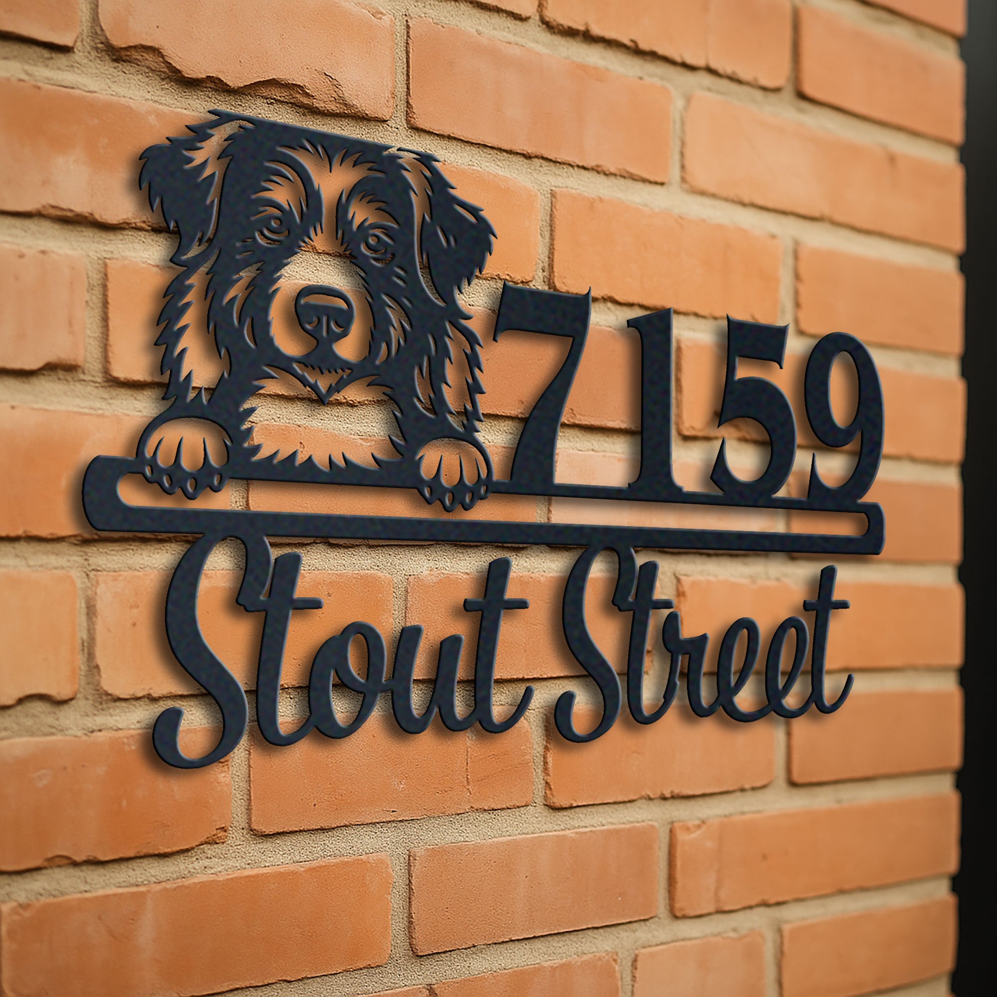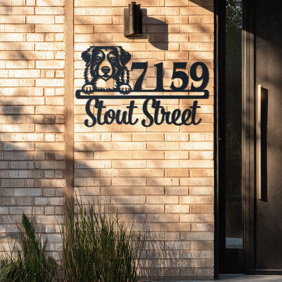 Australian Shepherd Address Sign | Personalized Metal House Number Plaque | Dog Lover Gift | Outdoor Decor