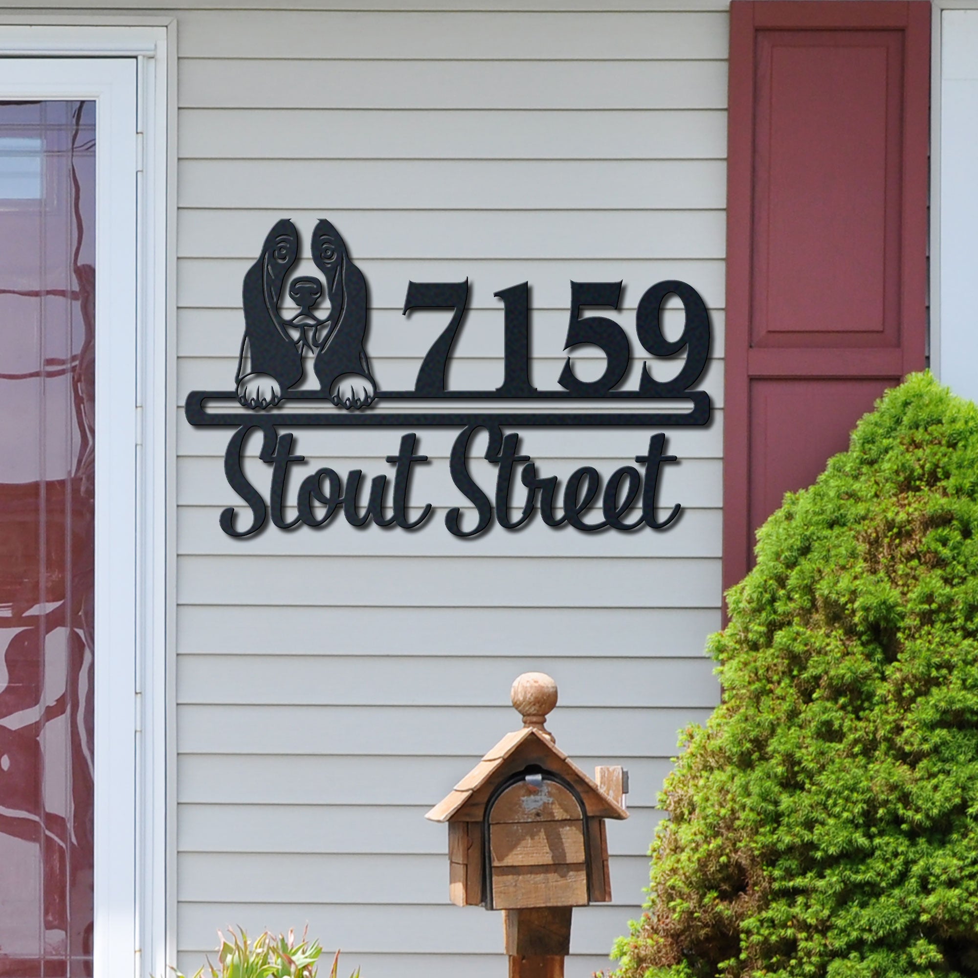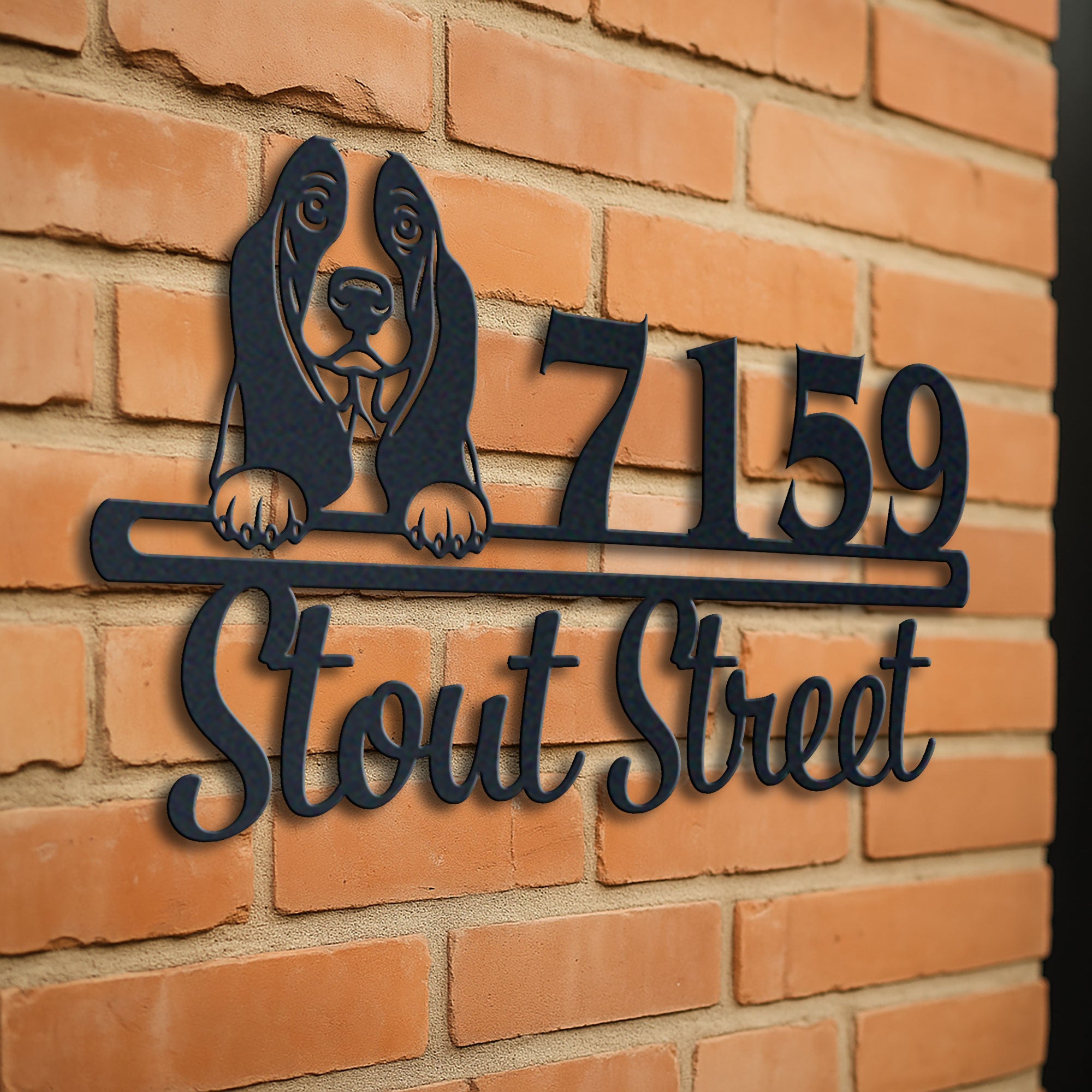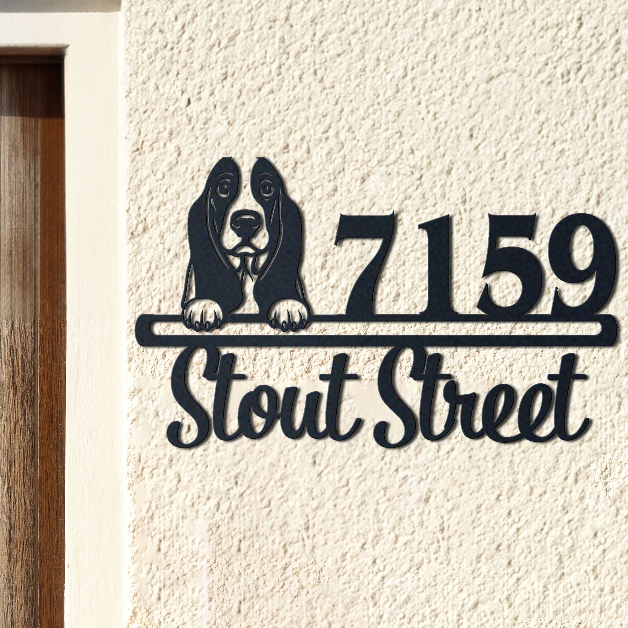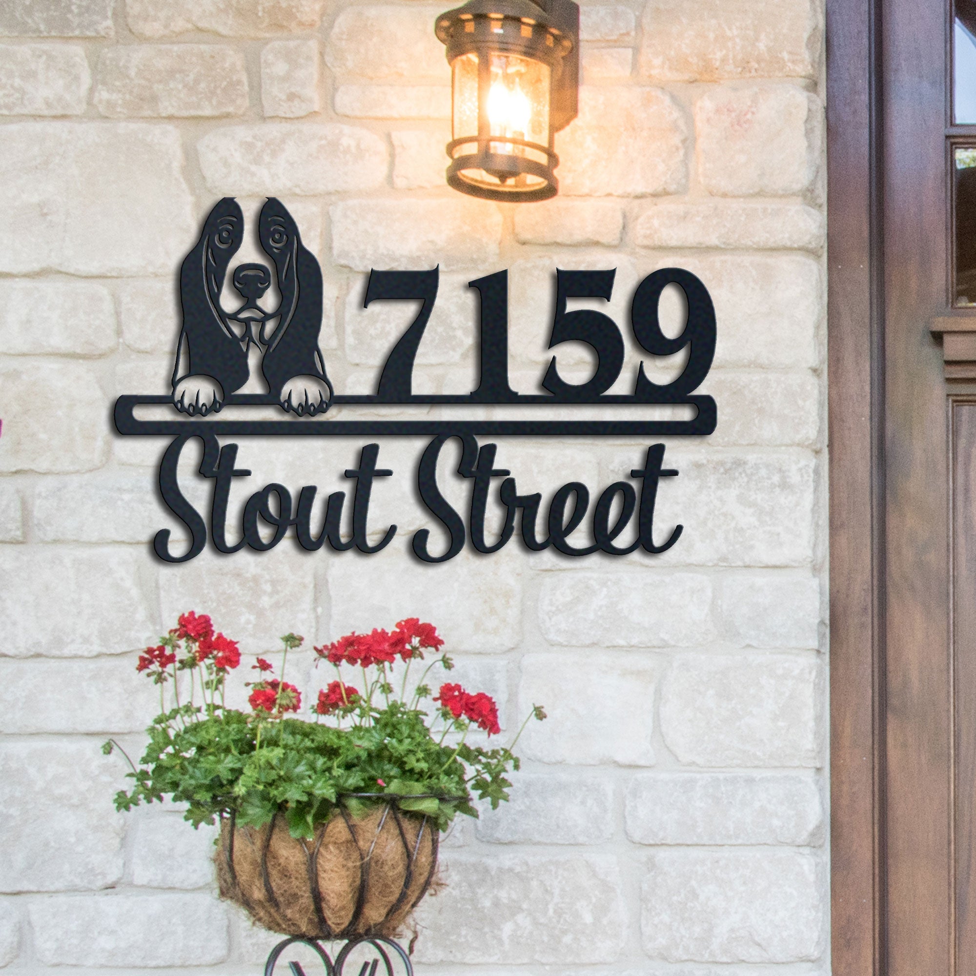 Basset Hound Address Sign | Personalized Metal House Number Plaque | Dog Lover Gift | Outdoor Decor