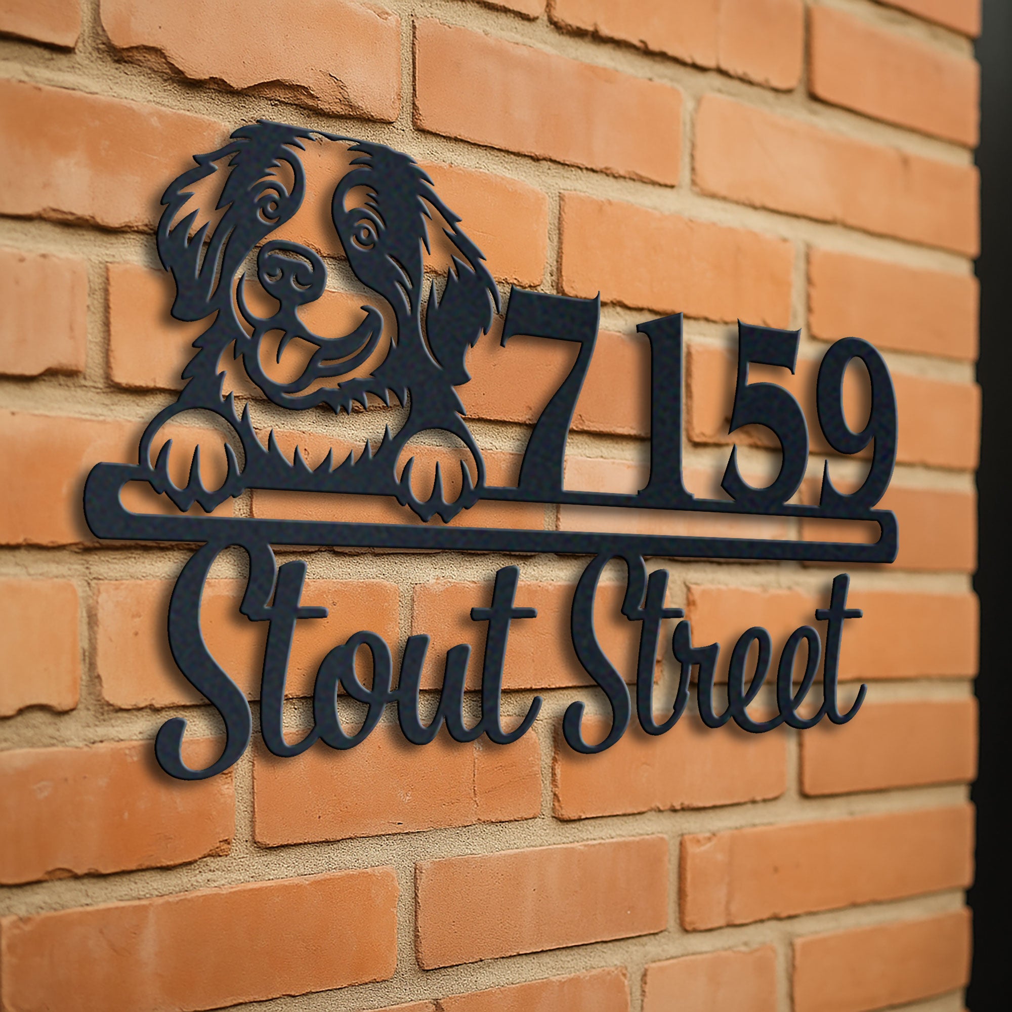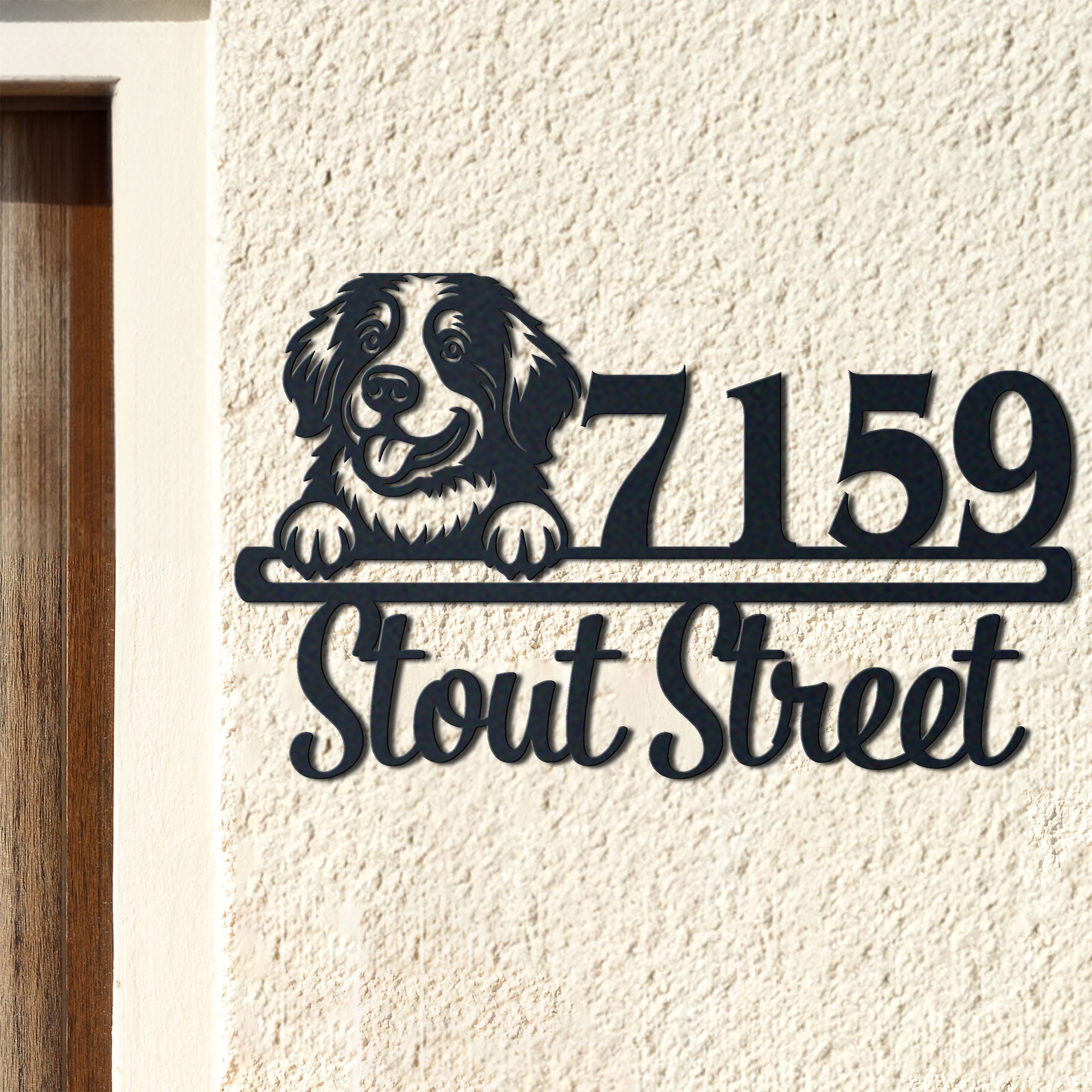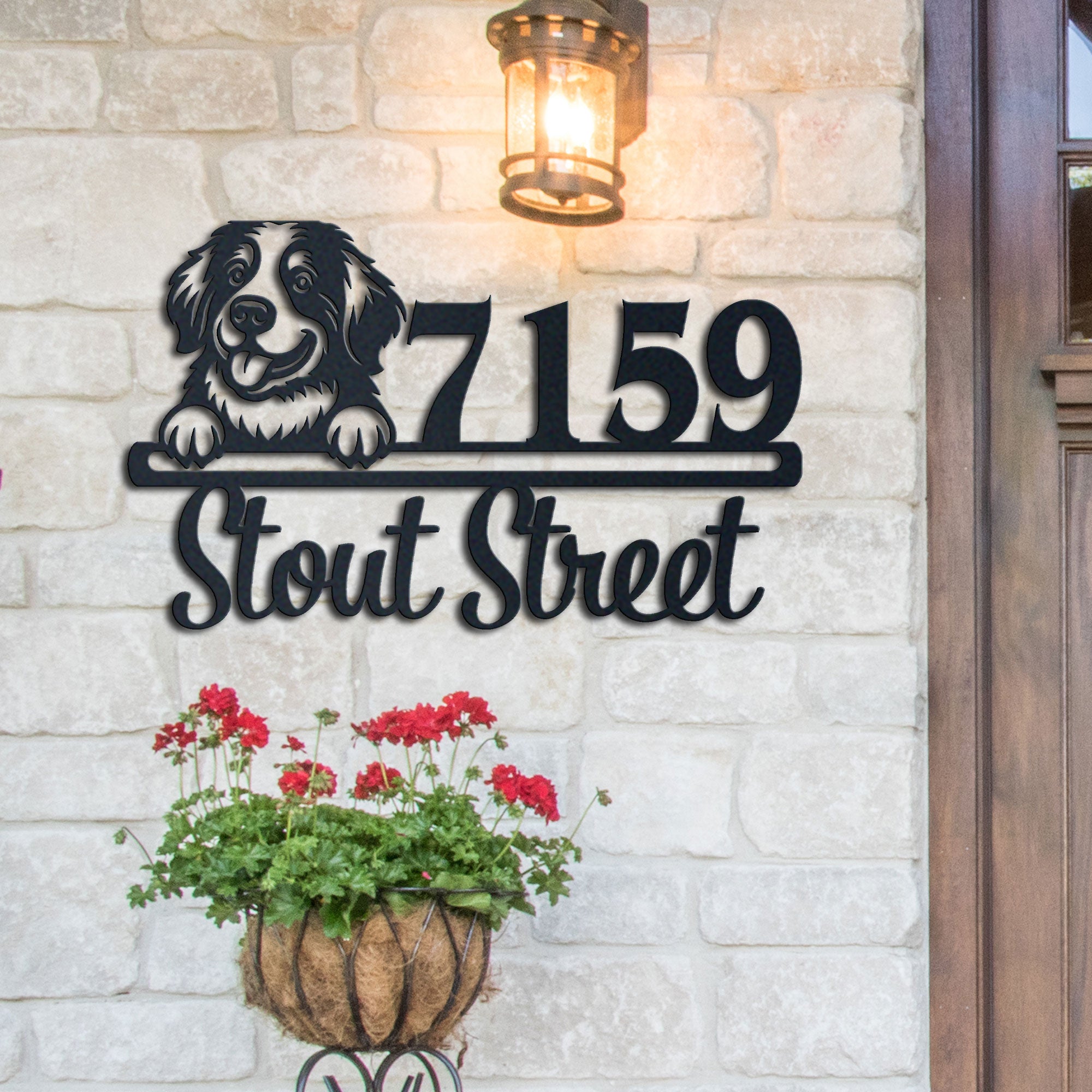 Bernese Mountain Dog Address Sign | Personalized Metal House Number Plaque | Dog Lover Gift | Outdoor Decor