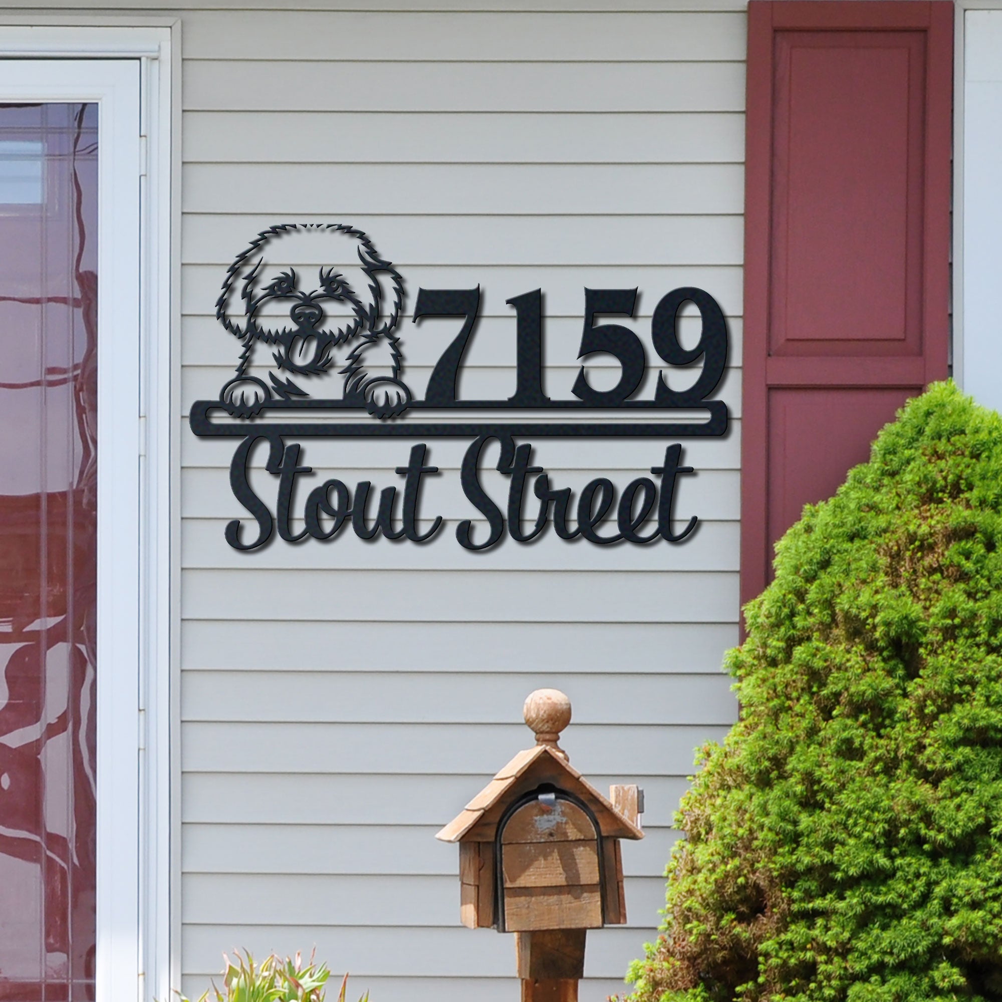 Bischon Frise Address Sign | Personalized Metal House Number Plaque | Dog Lover Gift | Outdoor Decor