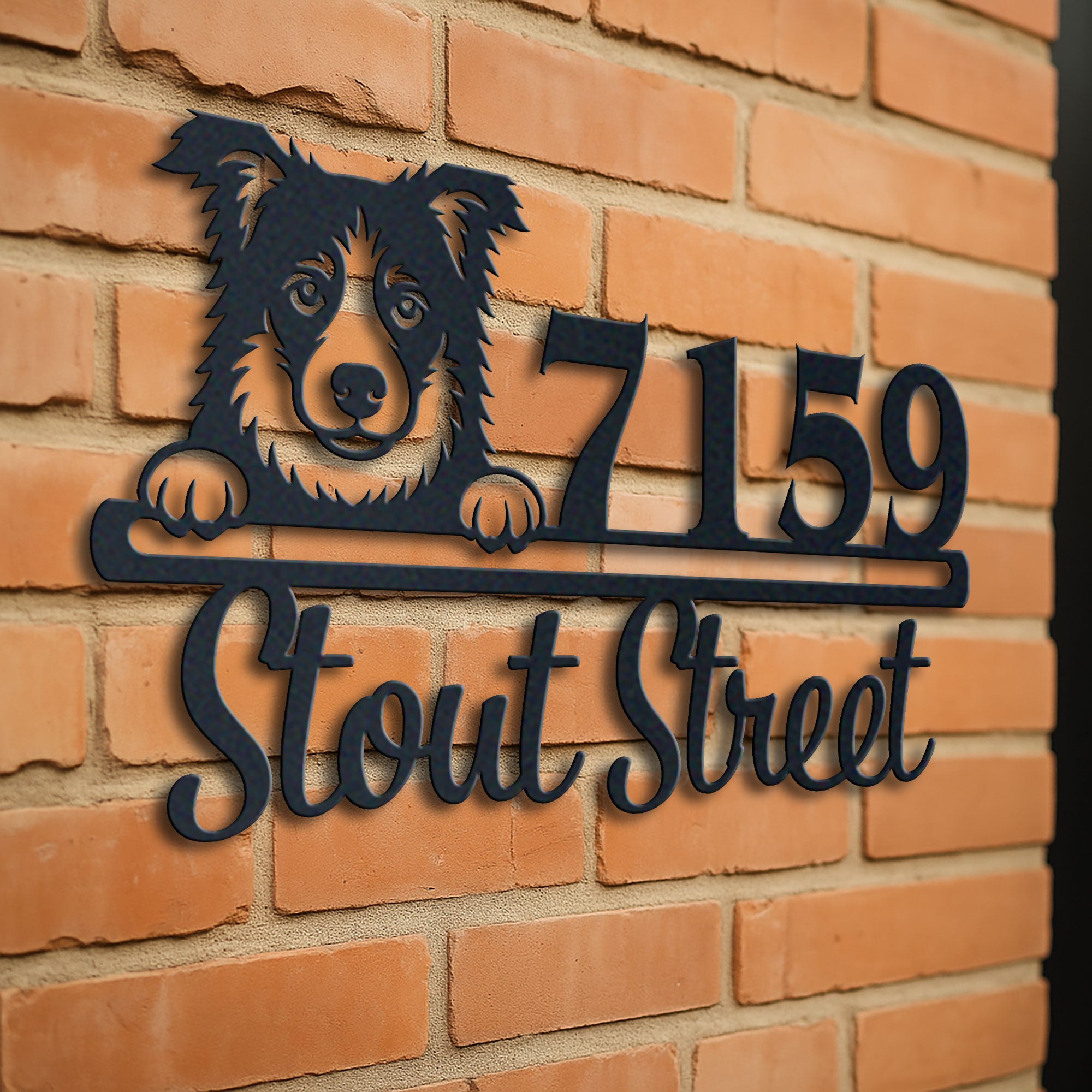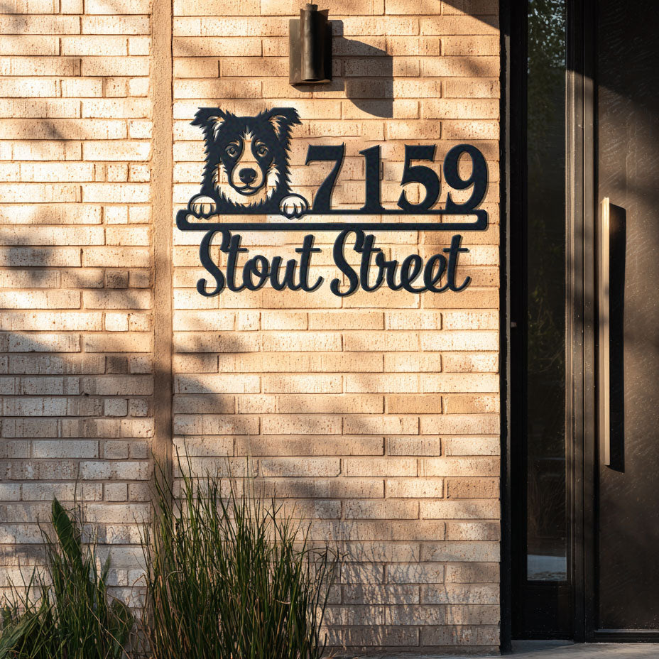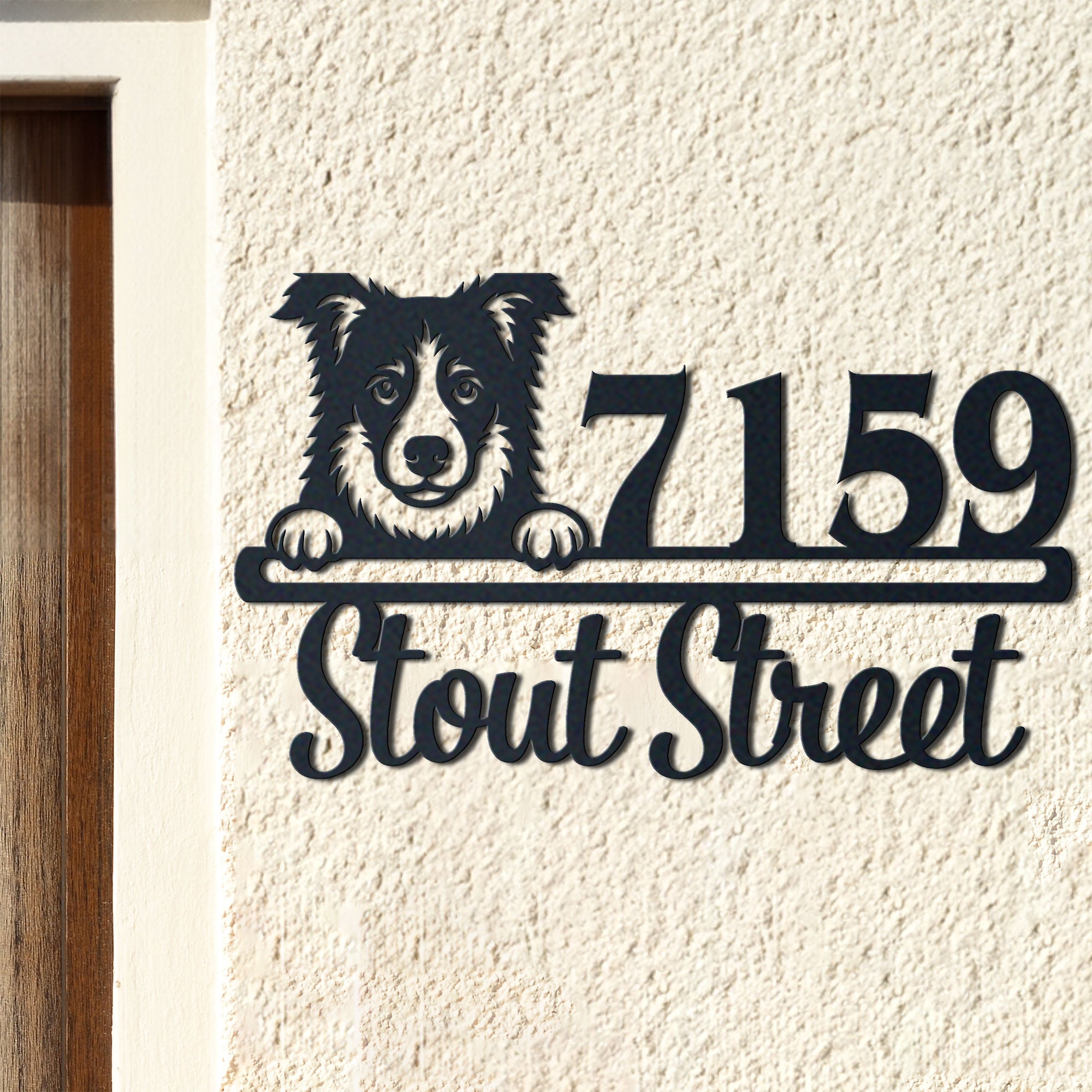 Border Colie Address Sign | Personalized Metal House Number Plaque | Dog Lover Gift | Outdoor Decor