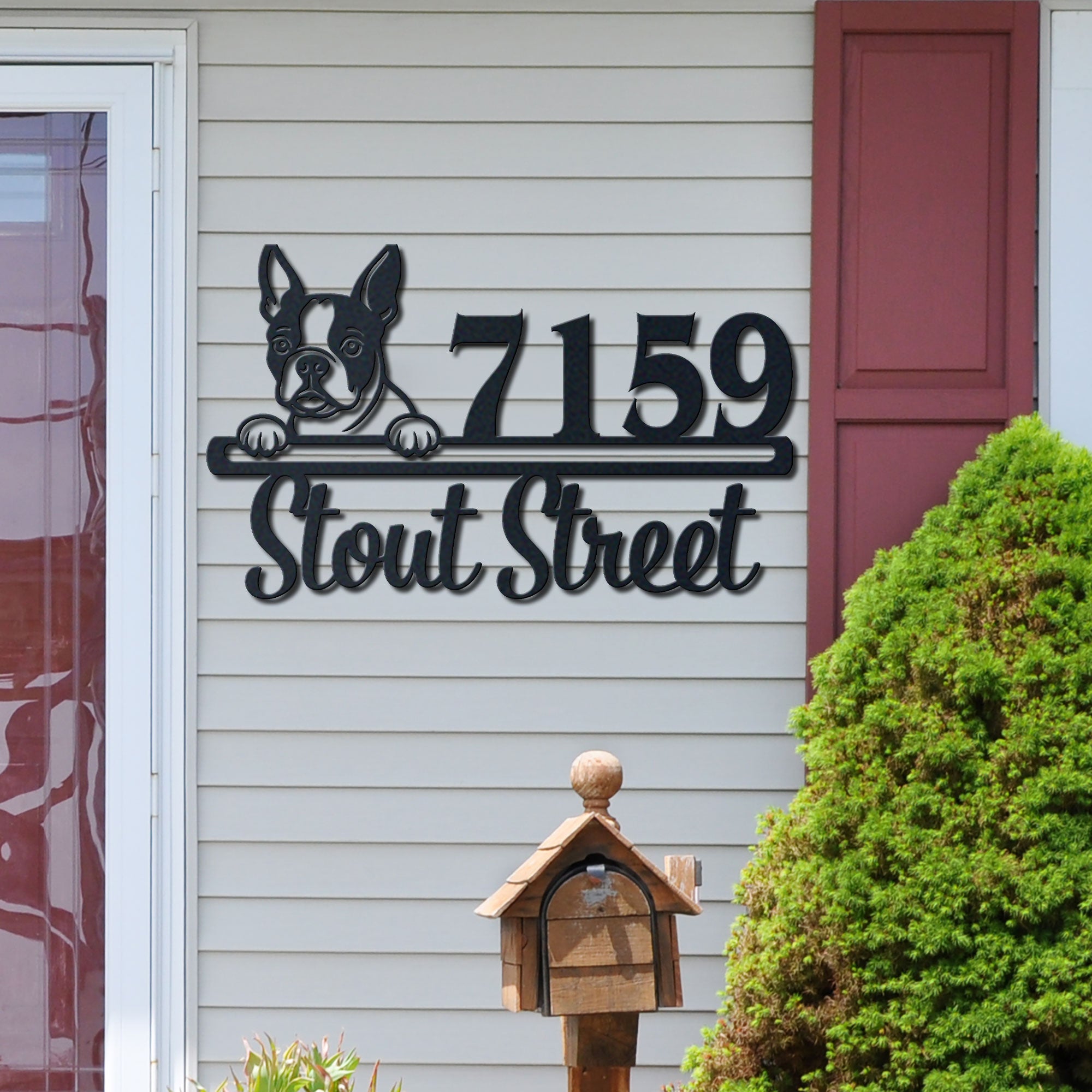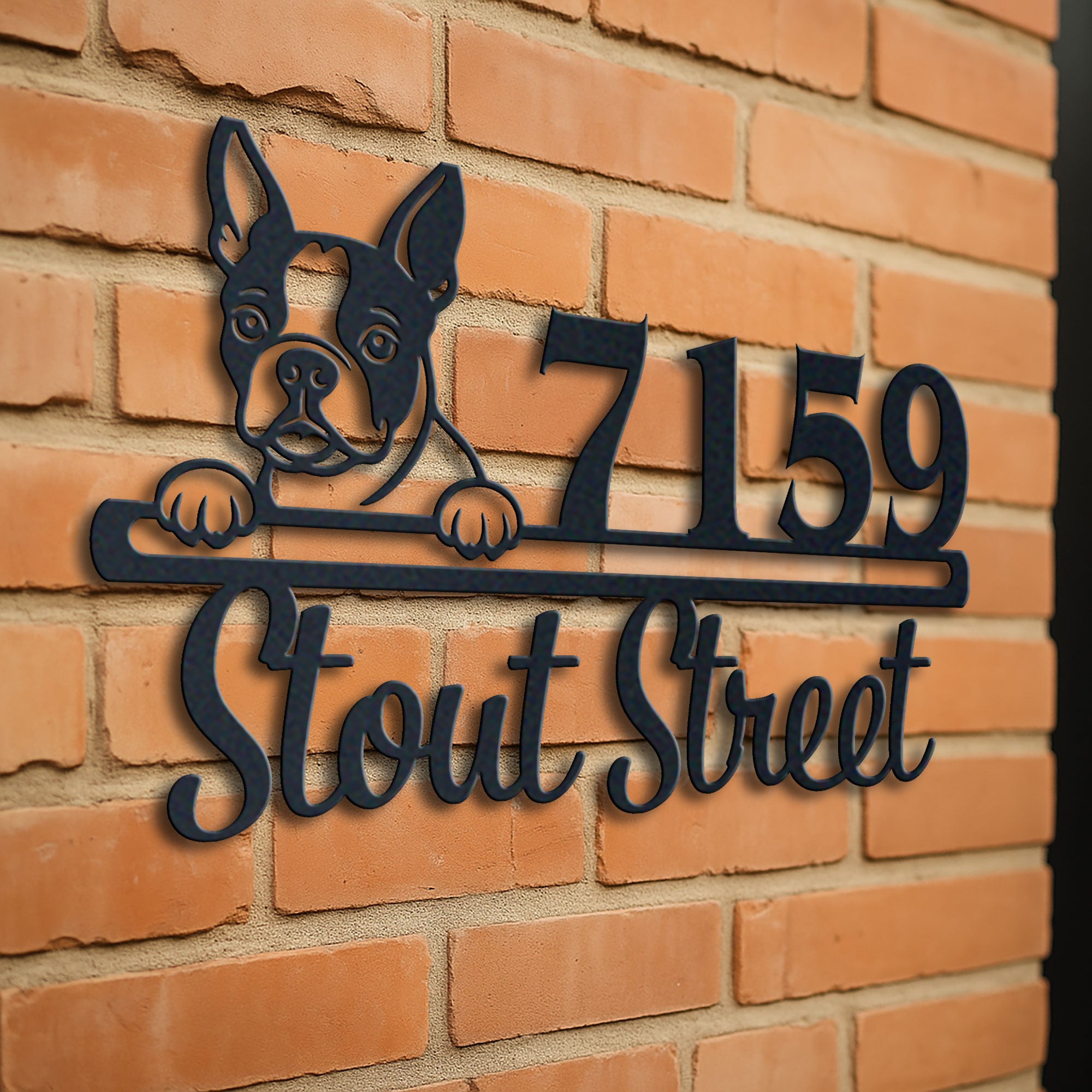 Boston Terrier Address Sign | Personalized Metal House Number Plaque | Dog Lover Gift | Outdoor Decor