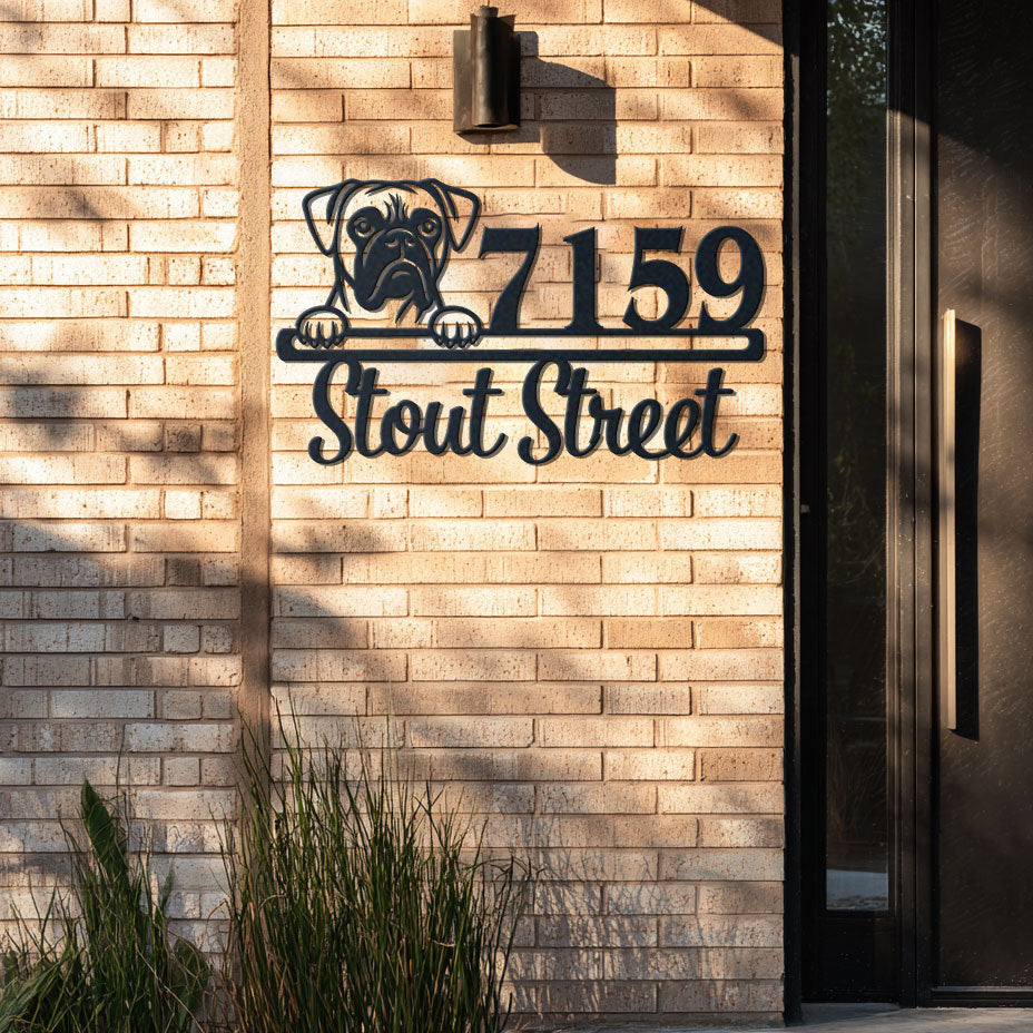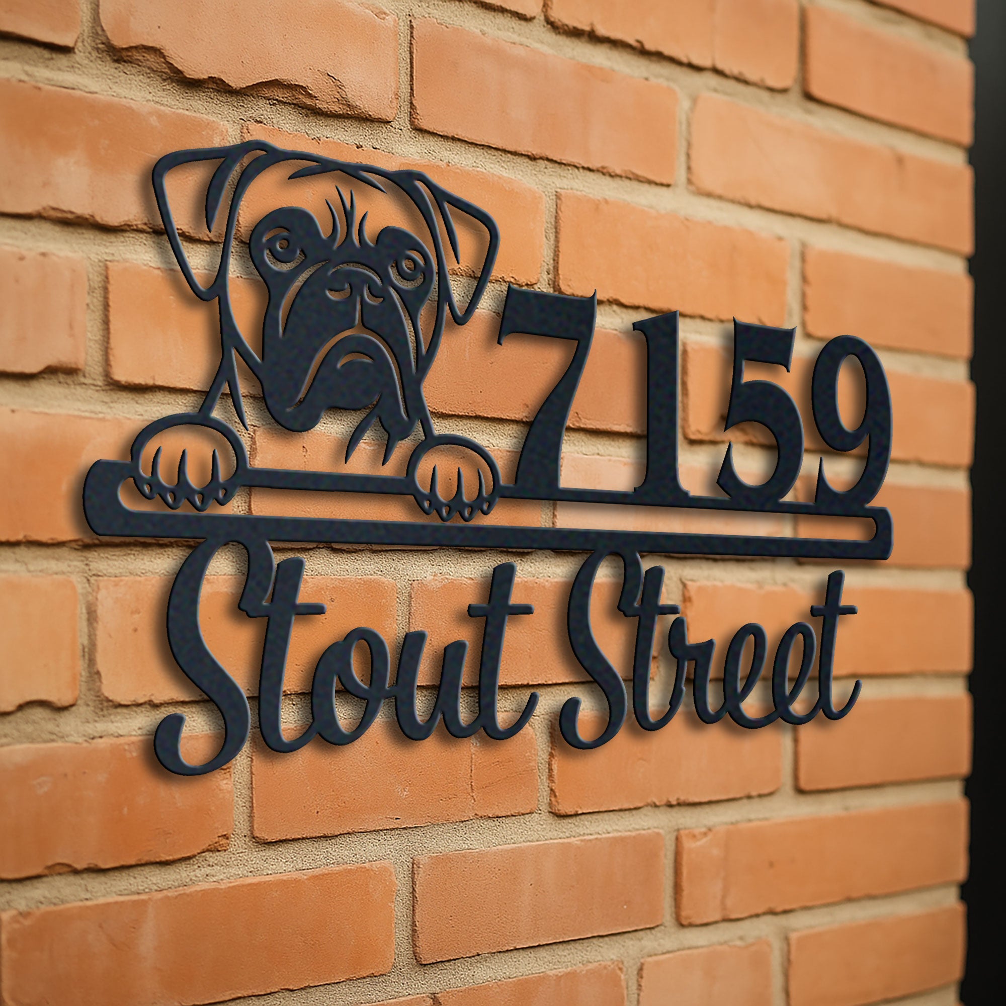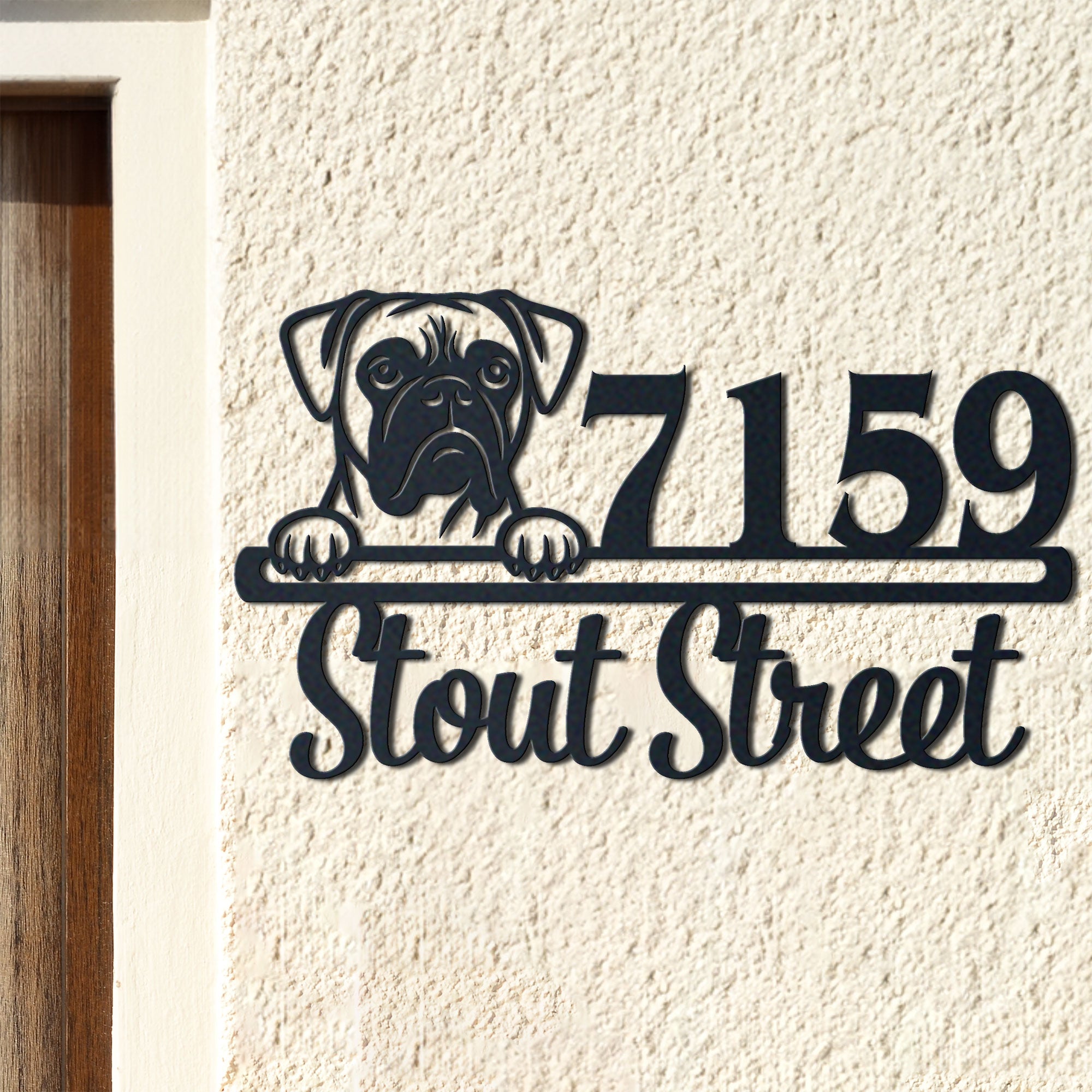 Boxer Address Sign | Personalized Metal House Number Plaque | Dog Lover Gift | Outdoor Decor