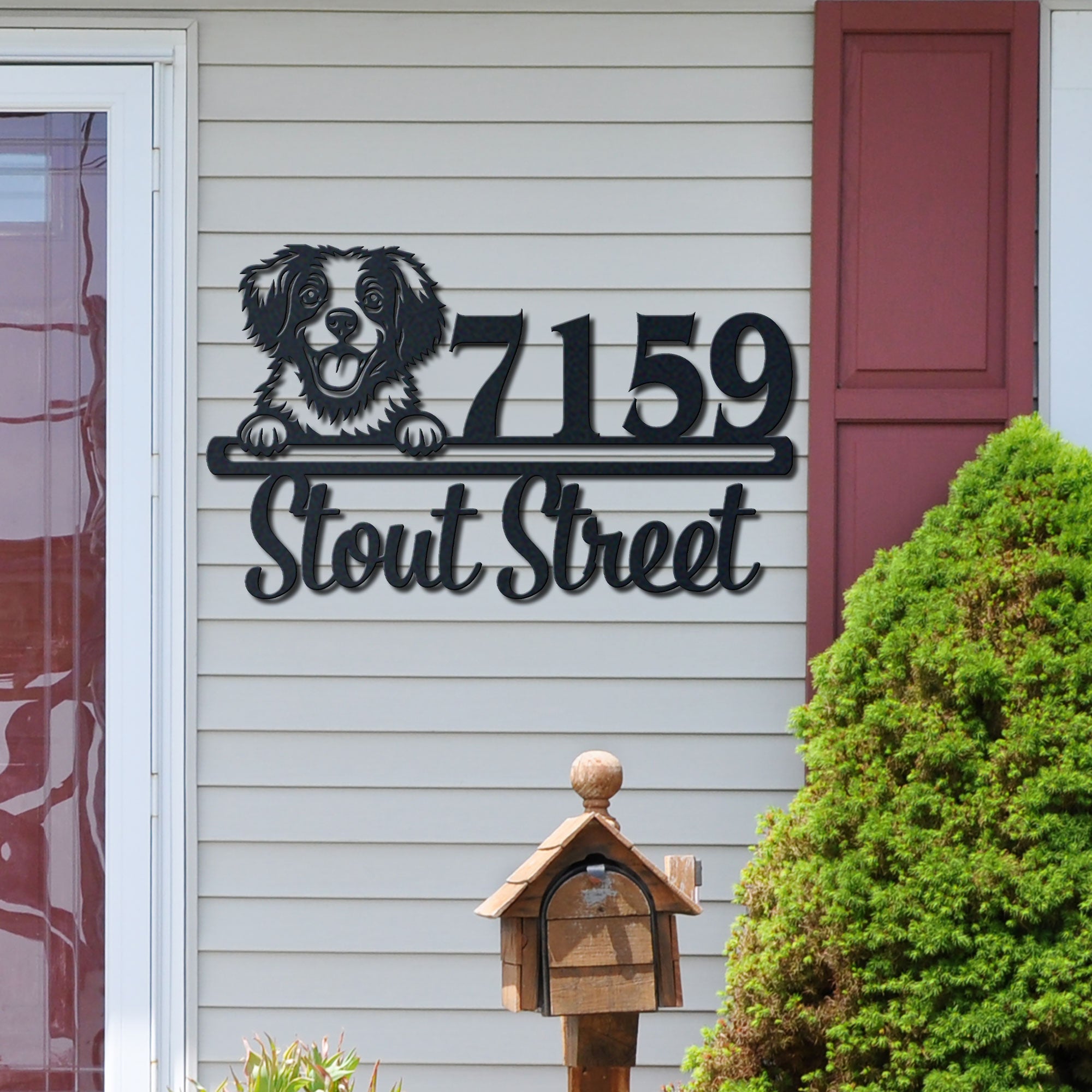 Brittany Address Sign | Personalized Metal House Number Plaque | Dog Lover Gift | Outdoor Decor