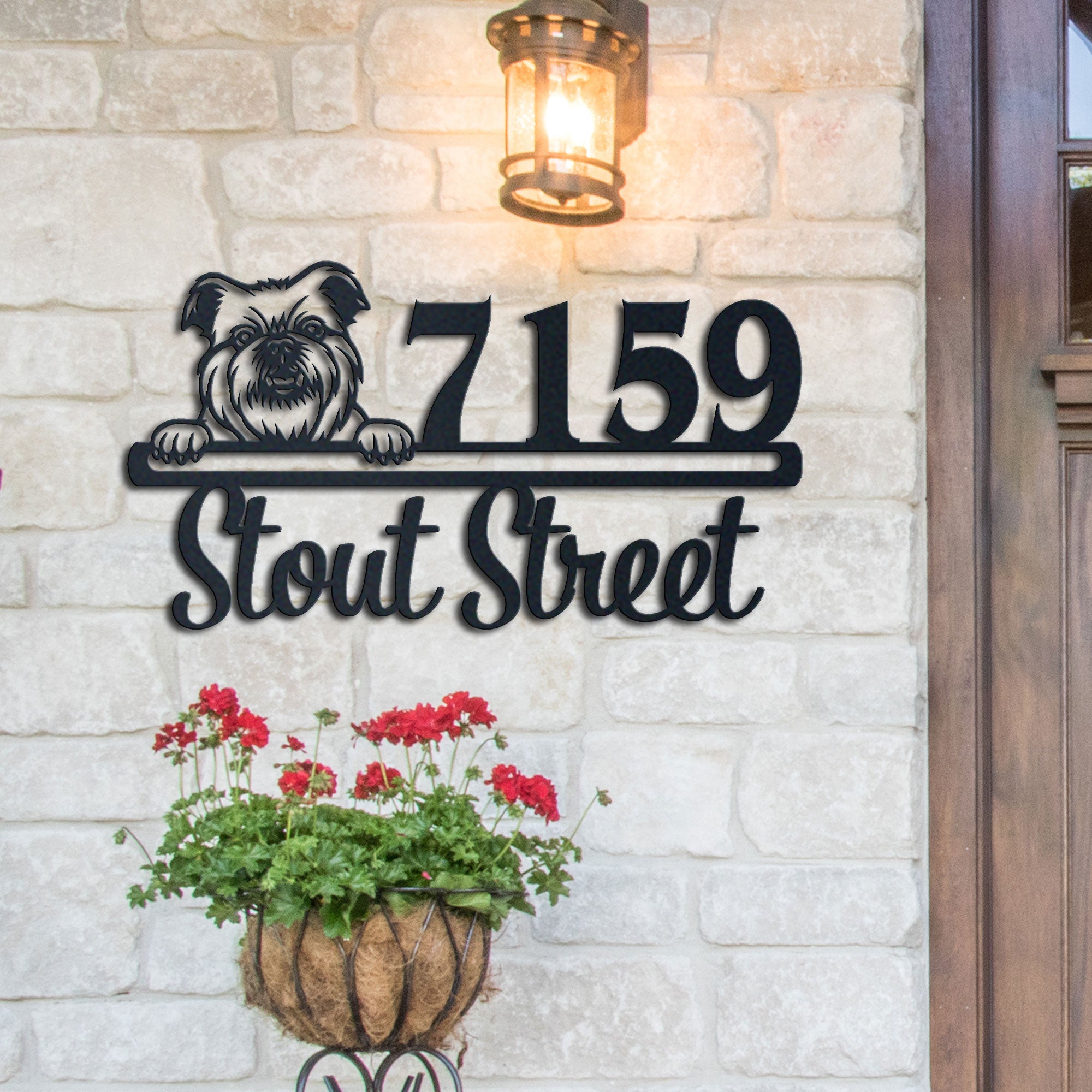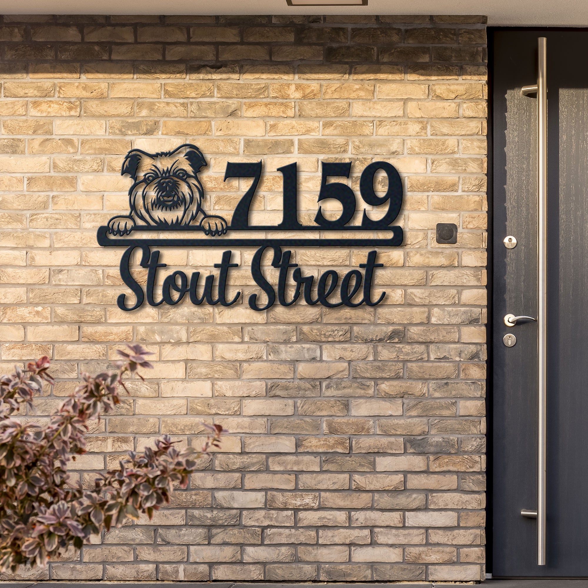 Brussels Griffon Address Sign | Personalized Metal House Number Plaque | Dog Lover Gift | Outdoor Decor