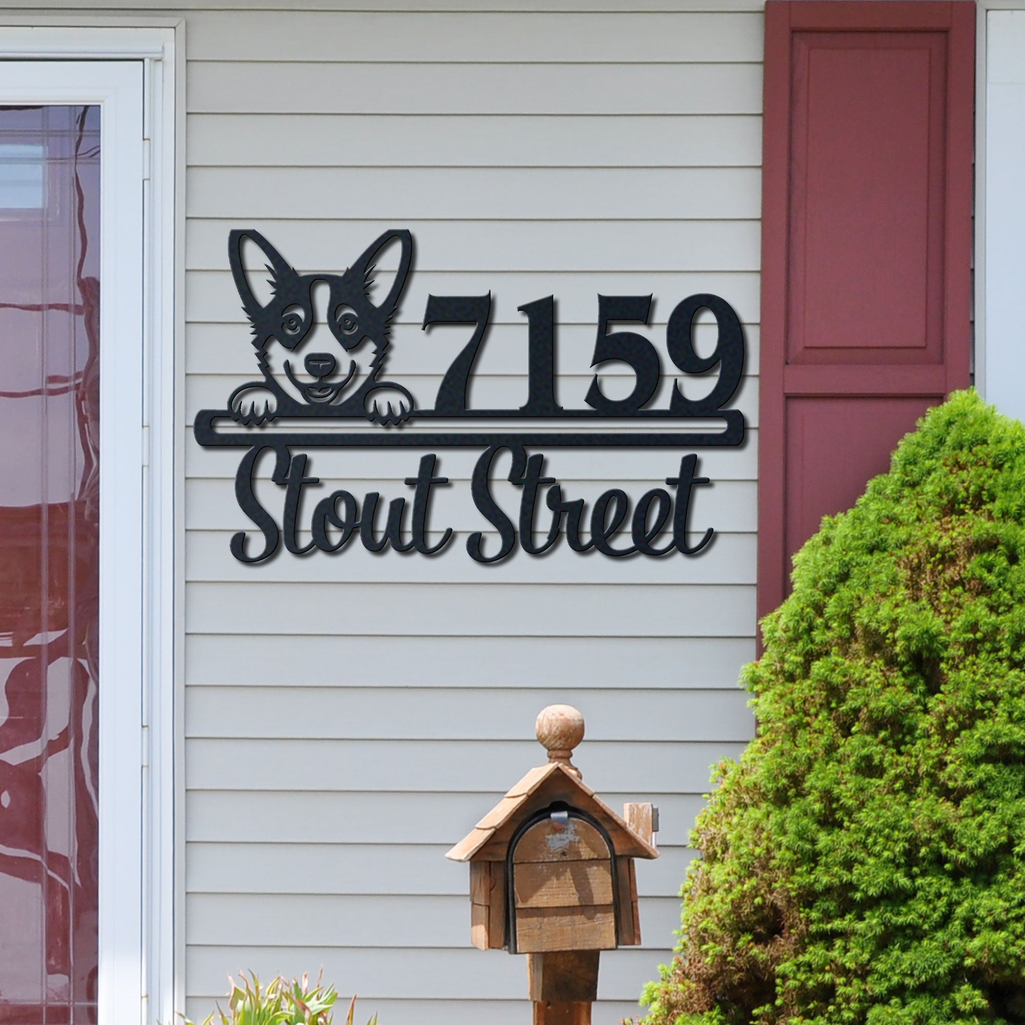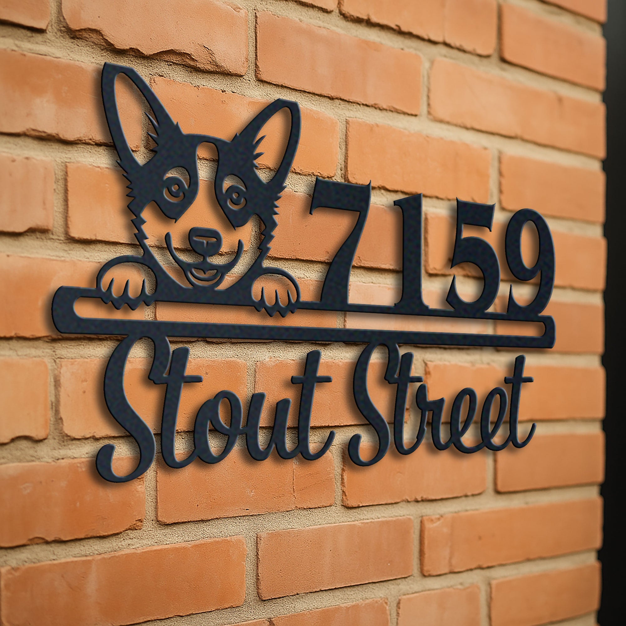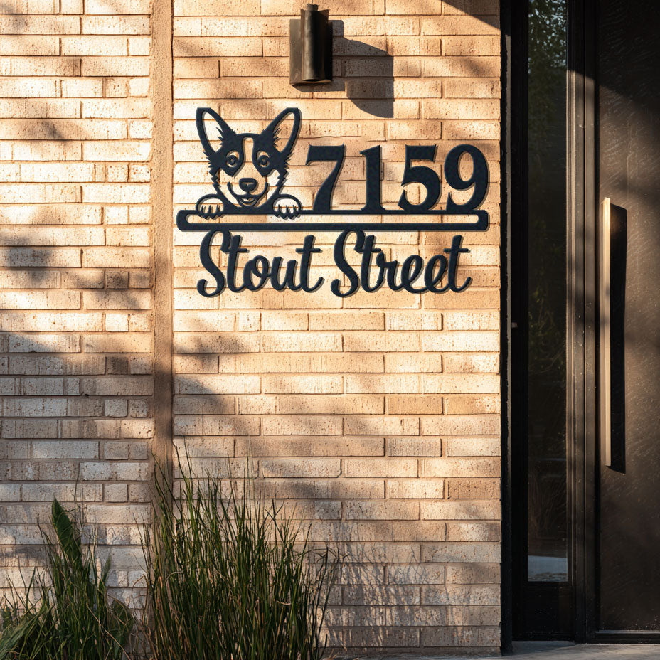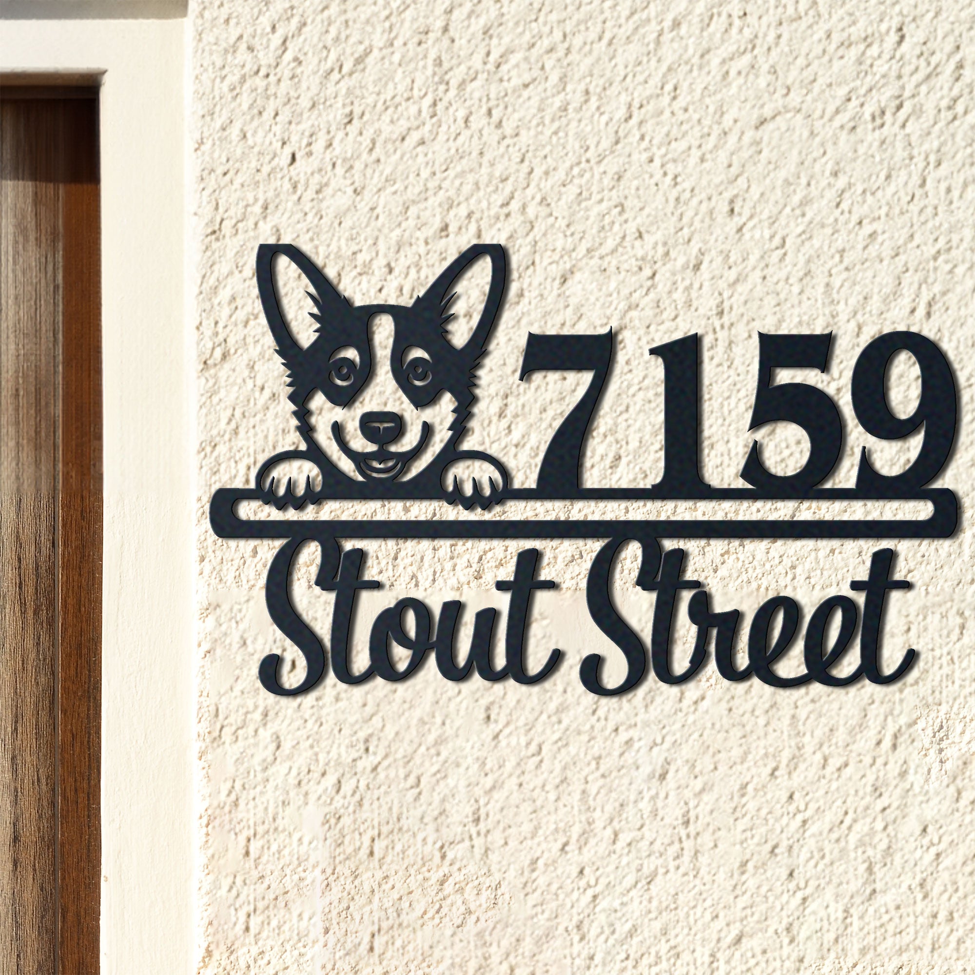 Cadigan Welsh Corgi Address Sign | Personalized Metal House Number Plaque | Dog Lover Gift | Outdoor Decor
