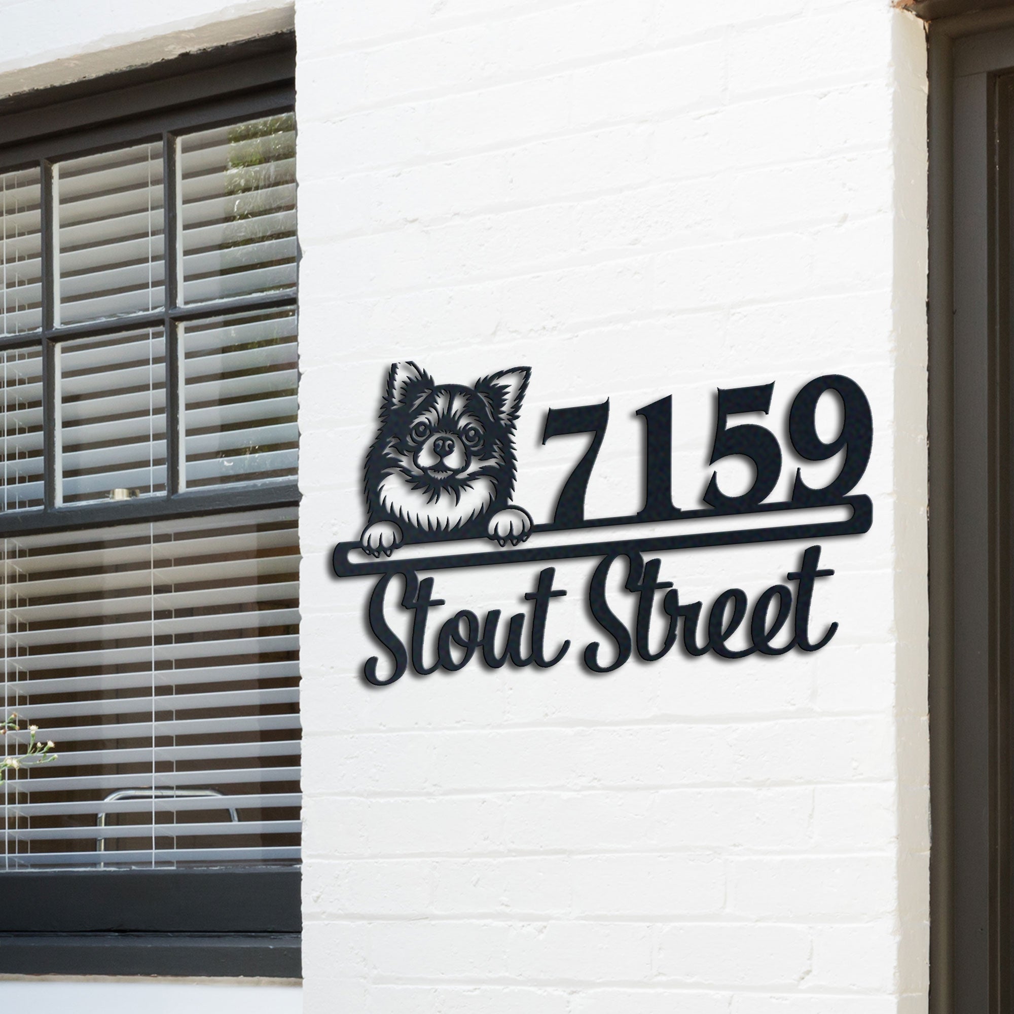 Chihuahua Longhair Address Sign | Personalized Metal House Number Plaque | Dog Lover Gift | Outdoor Decor